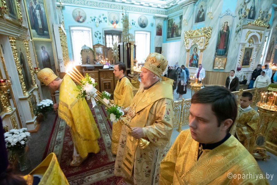 В первое воскресенье после дня Святой Троицы Церковь чтит память Всех святых, от века Богу угодивших. Божественную литургию в Неделю 1-ю по Пятидесятнице, Всех святых 14 июня 2020г. Высокопреосвященный Стефан, архиепископ Гомельский и Жлобинский, совершил в Петро-Павловском кафедральном соборе г.Гомеля. Высокопреосвященнейшему сослужили: секретарь Гомельской епархии протоиерей Георгий Алампиев и духовенство собора. По сугубой ектении владыка Стефан вознес молитву, чтомую во время распространения вредоносного поветрия. По окончании богослужения Владыка поздравил прихожан и духовенство с праздником, причастников с принятием Святых Христовых Таин и обратился к молящимся со словами архипастырского назидания. В этот день Церковь напоминает нам о том, что святость – это не удел отдельных личностей, а цель жизни каждого христианина. Сама способность к святости заложена Творцом при создании человека, сотворенного по образу и подобию Божию. Церковь почитает самых разных людей, которые благодаря своей праведной жизни получили дар Святого Духа, по словам апостола Павла: «Одному дается Духом слово мудрости, другому слово знания, тем же Духом; иному вера, тем же Духом; иному дары исцелений, тем же Духом; иному чудотворения, иному пророчество, иному различение духов, иному разные языки, иному истолкование языков» (I Кор. 12. 8-11). Сегодняшнее прославление всех святых совершается для того, чтобы вспомнить всех святых угодников, как известных нам, так и оставшихся неизвестными, имена которых сокрыты от нас до дня Второго пришествия Христова, когда мир узрит их добродетели, но своей праведной жизнью уже получивших благодать Божию. Сегодня каждый из нас поминает того святого, в честь которого был назван при Святом Крещении, у каждого из нас сегодня день Ангела. Вспоминая святых, у человека появляется надежда быть подобным им, ведь они были такими же людьми из той же крови и плоти но претерпев все испытания не отступили от Господа, за что получили достойную награду Отца Небесного. |