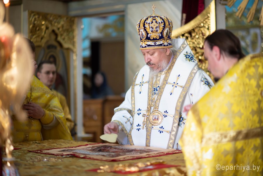Божественную литургию во вторник 2-й седмицы по Пятидесятнице, в праздник иконы Божией Матери "Югская" 16 июня 2020г. Высокопреосвященнейший Стефан, архиепископ Гомельский и Жлобинский, совершил в Петро-Павловском кафедральном соборе г.Гомеля. Высокопреосвященнейшему сослужили: секретарь Гомельской епархии протоиерей Георгий Алампиев и духовенство собора. По сугубой ектении владыка Стефан вознес молитву, чтомую во время распространения вредоносного поветрия. По окончании богослужения Владыка поздравил причастников с принятием Святых Христовых Таин и обратился к молящимся со словами архипастырского назидания. В 2020 году образ почитаемой иконы Божией Матери, именуемая Югская из аг. Холмеч в храме великомученика Георгия Победоносца в г. Гомеле будет принесен 7 августа (Согласно постановлениия Епархиального совета (Журнал №12 от 10.07.2019г.) Чудотворная икона Божией Матери, именуемая Югская, явилась в начале ХVII века старцу схимонаху Псково-Печерского монастыря преподобному Дорофею. Богородица, во время нашествия шведов, повелела ему взять Ее образ в указанном Ею месте, отнести образ в пределы Ярославской епархии и там основать обитель. Игумену монастыря, не соглашавшемуся отпустить явленную икону Божией Матери, Она в сонном видении явилась и повелела исполнить Ее волю и отпустить старца Дорофея с Ее иконой. Старец Дорофей, приближаясь к указанному ему в видении месту, остановился отдохнуть, а святую икону поставил на дереве. Когда он хотел продолжать путь, то никакими силами не смог снять с дерева икону Богоматери. Старец Дорофей понял, что Царица Небесная в этом месте хочет остаться. Тогда он построил небольшую хижину и сам остался жить у этой святыни. Весть о приходе старца стала быстро распространяться по окрестным селам. К нему стали стекаться богомольцы для поклонения святой иконе, от которой стали совершаться исцеления. Усердием местных жителей были собраны средства и положено начало постройки новой обители. Преподобный Дорофей скончался в 1622 году. Патриарху Филарету духовенство представило данные о совершавшихся чудесах. В ответ они получили благословение на основание на реке Юг обители с церковью в честь Успения Пресвятой Богородицы. Обитель стала именоваться Югской. В 1654 году заступлением Богоматери в тех местах прекратилась распространившаяся моровая язва. |