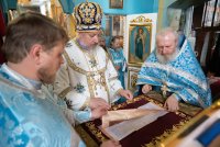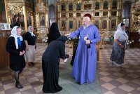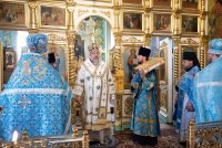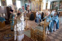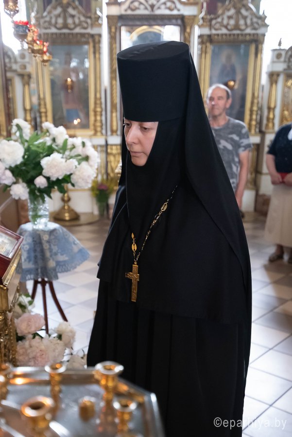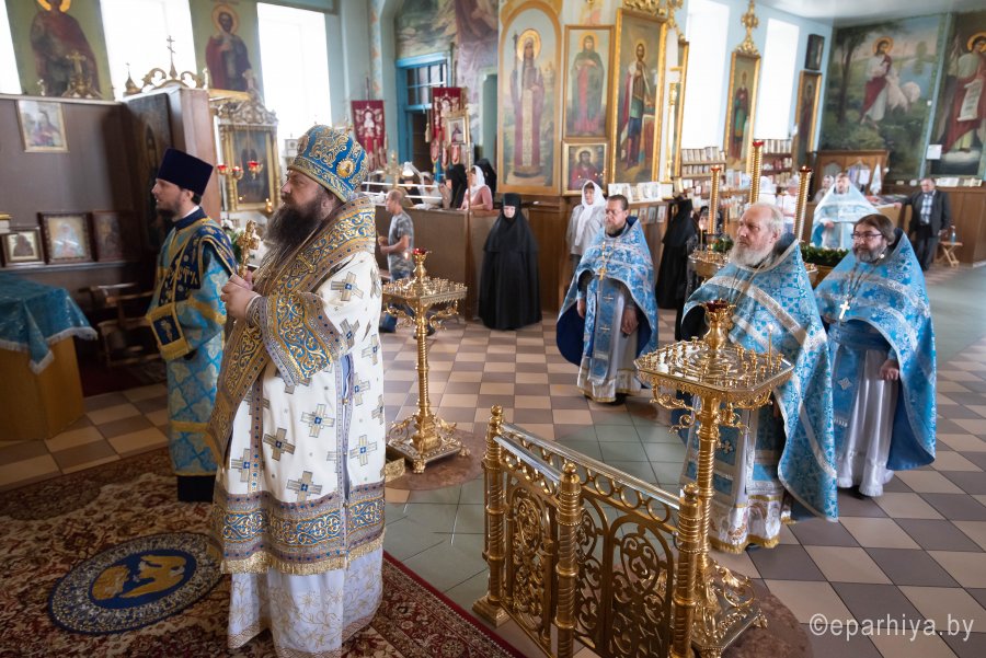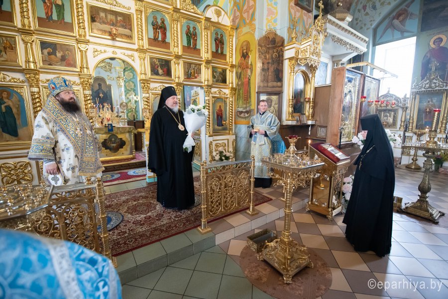 Божественную литургию в Покровском храме Иоанно-Кормянского женского монастыря в день памяти святых преподобномучениц Архелаи, Феклы и Сосанны и в день празднования икон Божией Матери Пименовской, Табынской и «Знамение» Курской-Коренной, 19 июня 2020г. возглавил Высокопреосвященнейший Стефан, архиепископ Гомельский и Жлобинский в сослужении епископа Светлогорского Амвросия, викария Гомельской епархии. Архипастырям сослужили: секретарь Гомельской епархии протоиерей Георгий Алампиев, старший священник монастыря архимандрит Варсонофий (Степанцов) и духовенство епархии. По сугубой ектении владыка Стефан вознес молитву, чтомую во время распространения вредоносного поветрия. По окончании богослужения Владыка поздравил с Днем Ангела старшую монахиню обители Архелаю (Новикову), причастников с принятием Святых Христовых Таин и обратился к молящимся со словами архипастырского назидания. Святые преподобномученицы Архелая, Фекла и Сосанна спасались в небольшом монастыре близ Рима. Во время гонения Диоклетиана (284–305) святые девы переоделись в мужское платье, остригли волосы и удалились в итальянскую провинцию Кампанию. Поселившись в глухом месте, они продолжали подвизаться в посте и молитвах. Получив от Бога дар исцеления, они врачевали местных жителей, обращая ко Христу многих язычников. Узнав о них, правитель области Леонтий приказал привести их в город Салерно. Он угрожал святой Архелае отдать ее на поругание и предать смерти, если она не принесет жертву идолам. С твердой надеждой на помощь Божию святая отказалась покориться приказу и обличила безумие кланяющихся бездушным истуканам. Тогда правитель приказал отдать святую на растерзание голодным львам, но звери покорно легли у ее ног. В ярости правитель приказал убить львов, а святых дев заключить в темницу. Наутро, подвесив святую Архелаю, мучители стали строгать ей бока железными орудиями и поливать раны горячей смолой. Святая только громко молилась: внезапно над ней показалось сияние и послышался глас: "Не бойся, Я с тобой". Сила Божия защищала святую: когда хотели раздавить ее огромным камнем, Ангел оттолкнул его в другую сторону, и он раздавил самих палачей. Судья приказал воинам обезглавить святых дев, но воины не смели поднять руку на святых. Тогда святые Архелая, Фекла и Сосанна сказали воинам: "Если не исполните приказания, то не будете иметь чести с нами". Святые мученицы были обезглавлены + 293). |