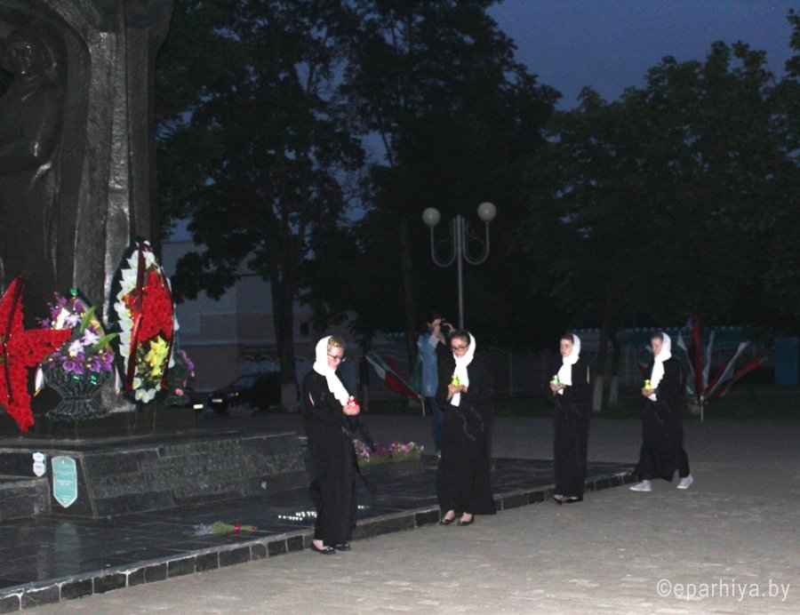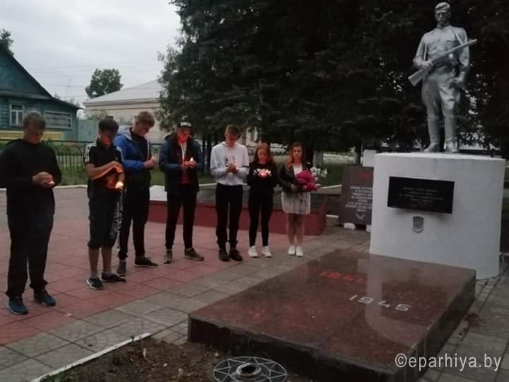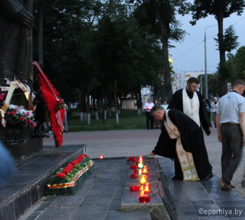 22 июня, в День памяти жертв Великой Отечественной войны, в 4 часа утра рогачёвцы зажгли свечи памяти у Мемориала воинской славы. В столь ранний час, когда город ещё погружён в спокойный сон, представители районного исполнительного комитета, общественных организаций и трудовых коллективов по традиции собрались в этом символичном месте отдать дань уважения и признательности тем, кто ценой своей жизни подарил нам возможность не знать ужасов войны. Трепетный живой огонёк лампадок в робком свете рождающегося дня отозвался в душе каждого светом благодарности защитникам Родины и труженикам тыла за мирное настоящее. 79 лет назад в это время началась Великая Отечественная война, унесшая тысячи жизней наших соотечественников. Их память собравшиеся почтили минутой молчания. И в предрассветной тишине над городом зазвучала молитва. Священнослужители храма святого благоверного князя Александра Невского в г.Рогачёве протоиерей Георгий Мартышевский и иерей Игорь Ковальчук отслужили заупокойную литию обо всех жертвах этой страшной войны: погибших воинах, замученных узниках концлагерей, умерших в тылу от голода и лишений. Вечная им память! Благодарные потомки возложили цветы к мемориалу. 22 июня 2020 года в 04:00 настоятель храма святителя Николая Чудотворца г.п. Корма иерей Георгий Орловский принял участие в акции «Свеча памяти», посвященной дню памяти и скорби – годовщине начала Великой Отечественной войны. Цель акции – сохранение в каждой белорусской семье памяти о кровопролитной войне, унесшей около 27 миллионов человеческих жизней. Акция прошла у братской могилы солдат, погибших за освобождение Кормянщины от немецко-фашистских захватчиков. В акции также приняли участие первый секретарь РК ОО «БРСМ» Алеся Гордиенко, председатель Совета ветеранов Екатерина Быковская, а также молодежь и старшее поколение Кормянщины. Иерей Георгий Орловский совершил заупокойную литию по погибшим на полях сражений и умершим от ран, после чего все присутствующие с зажженными свечами – символами скорби и вечной памяти – возложили цветы к памятнику. |