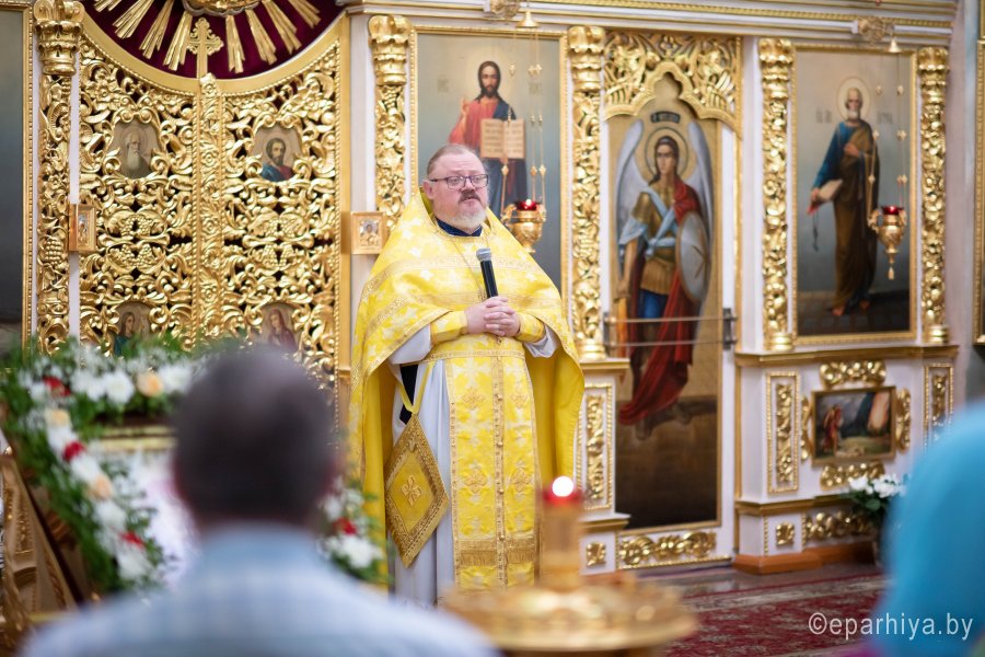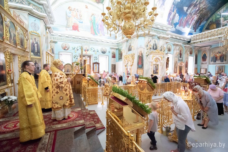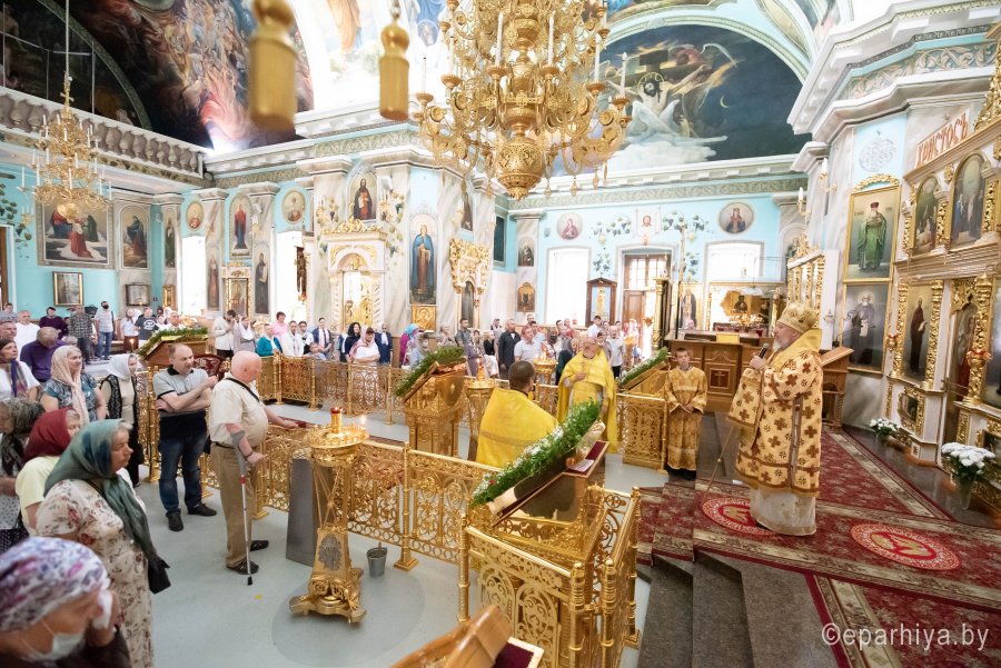 В третье воскресенье по Пятидесятнице Церковь чтит память Собора всех белорусских святых. Память тех, кто своей любовью ко Господу, своей праведной жизнью освятил нашу белорусскую землю. Божественную литургию в Неделю 3-ю по Пятидесятнице, день памяти Собора Белорусских святых 28 июня 2020г. Высокопреосвященнейший Стефан, архиепископ Гомельский и Жлобинский совершил в Петро-Павловском кафедральном соборе г. Гомеля. Высокопреосвященнейшему сослужили: секретарь Гомельской епархии протоиерей Георгий Алампиев и духовенство собора. По сугубой ектении владыка Стефан вознес молитву, чтомую во время распространения вредоносного поветрия. Проповедь по запричастном стихе произнес клирик Петро-Павловского кафедрального собора г. Гомеля иеромонах Аристарх (Дроздов). По окончании богослужения Владыка поздравил причастников с принятием Святых Христовых Таин и обратился к молящимся со словами архипастырского назидания. Всего в Собор Белорусских святых входит 73 угодника Божия. Еще четыре относятся к лику местночтимых, т.е. канонизированных в отдельной епархии. «Ищите же прежде Царства Божия и правды Его, и это все приложится вам» (Мф. 6,33) – говорится в сегодняшнем Евангельском чтении. Устремляя свой взор в Собор белорусских святых, мы видим, что все они так и делали. Они сполна послужили с святой Матери Церкви, оставив для своих потомков неподражаемый пример веры, бесценный духовный опыт и слова поучений. Жизнь наших небесных молитвенников, их христианский подвиг и любовь к Богу, их святость и жертвенность – это пример того, как должны жить мы. |