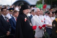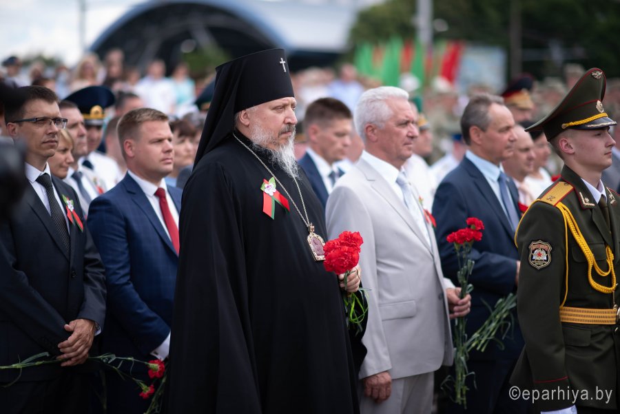 2 июля 2020 г. Высокопреосвященнейший Стефан, архиепископ Гомельский и Жлобинский принял участие в митинге посвященном Дню Независимости Республики Беларусь, который прошел на Аллеи Героев г.Гомеля. В торжественном митинге также приняли участие представители органов власти области и города, трудовых коллективов и общественных организации и воинских подразделений. |