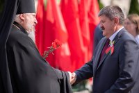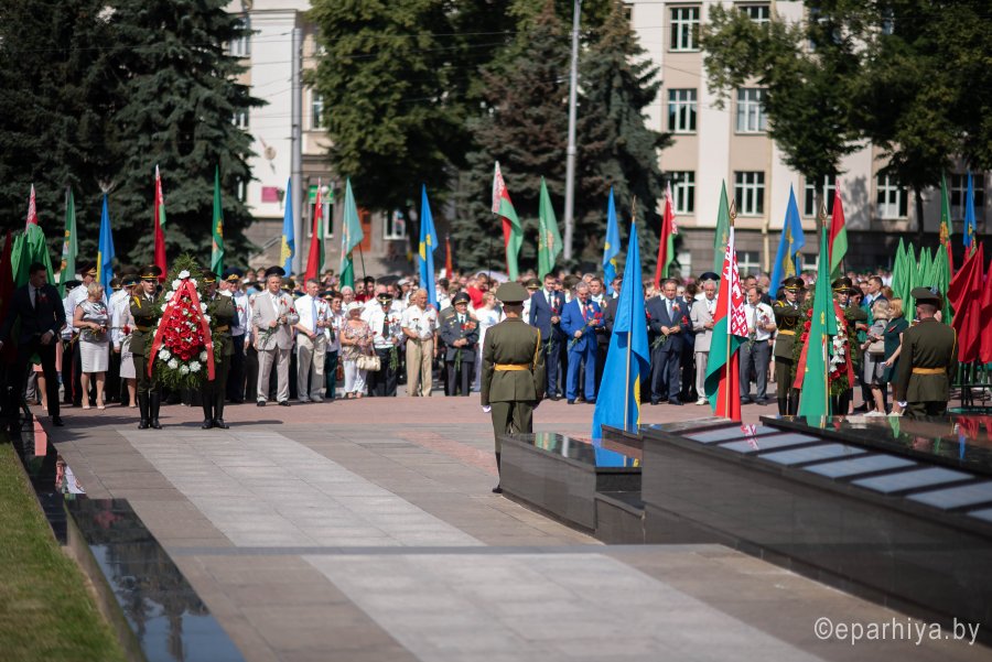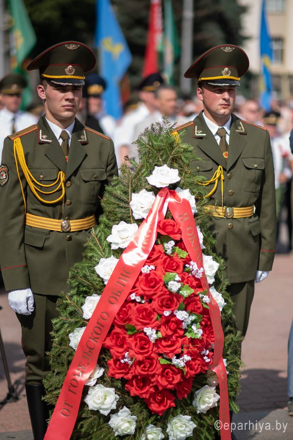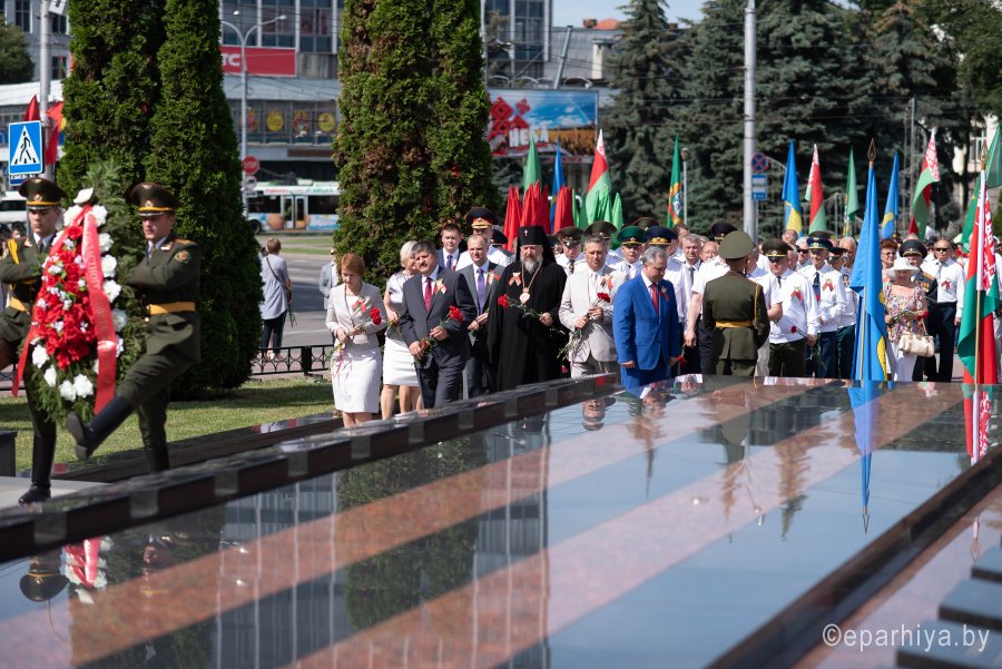 Высокопреосвященнейший Стефан, архиепископ Гомельский и Жлобинский, 3 июля 2020г. принял участие в торжественном митинге, посвященном Дню независимости Республики Беларусь и 76-й годовщине освобождения Республики Беларусь от немецко-фашистских захватчиков. В митинге приняли участие руководители области и города Гомеля, ветераны и труженики тыла, представители трудовых коллективов предприятий, организаций и общественных объединений, парламентарии и военнослужащие. Митинг, состоявшийся на площади Труда, завершился церемонией возложения цветов и венков к братской могиле советских воинов и подпольщиков. Участники митинга почтили память всех погибших минутой молчания. |
