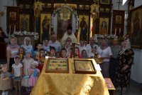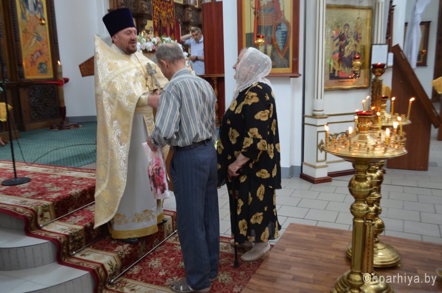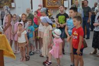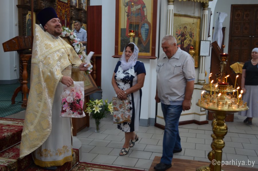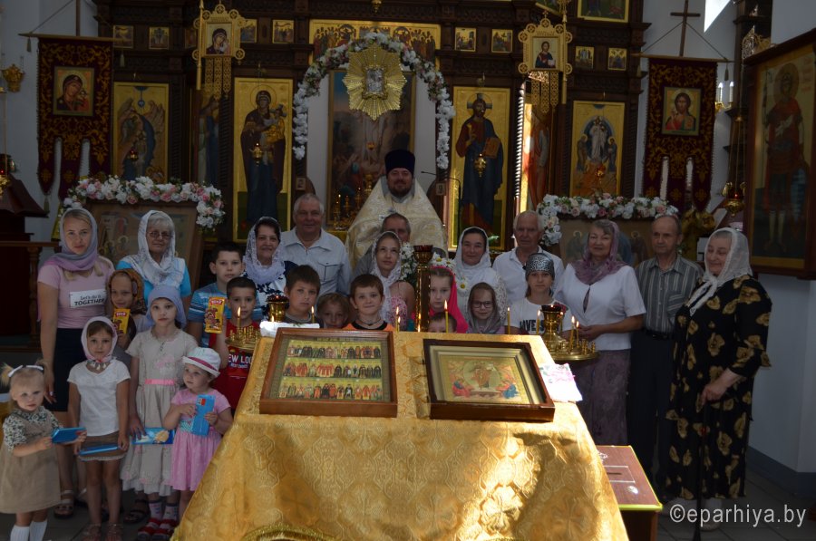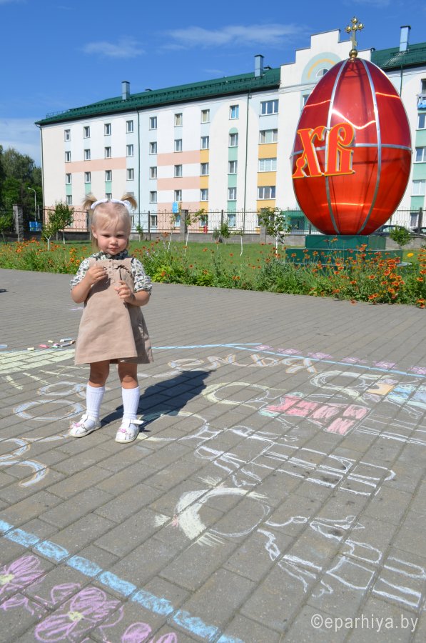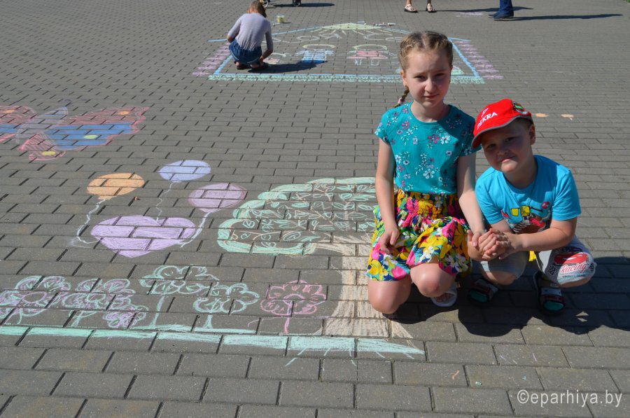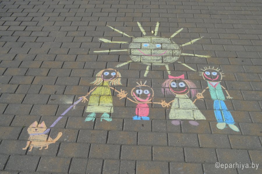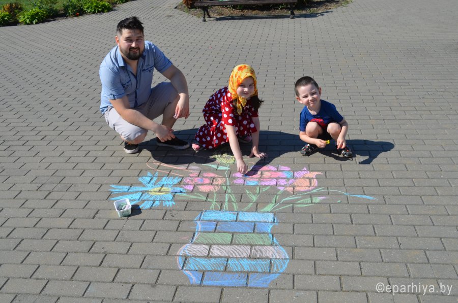 5 июля, в преддверии Дня памяти святых благоверных Петра и Февронии – покровителей семьи и брака, на территории храма Преображения Господня в г. Светлогорске воспитанники воскресной школы приняли участие в конкурсе рисунков на асфальте «Моя семья». По окончании Божественной литургии в храме состоялось поздравление семейных пар – прихожан храма, которые являются добрым примером православного супружества. Настоятель храма протоиерей Александр Кисель сердечно поздравил и благословил всех молящихся на многая и благая лета. Все семьи получили подарки, а юные художники шоколадки. |