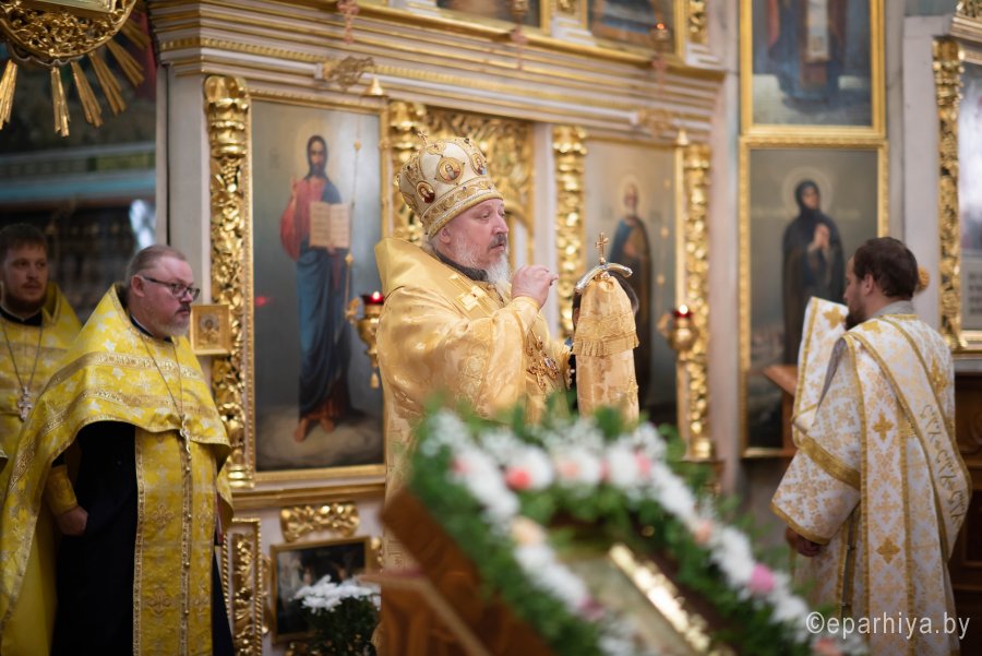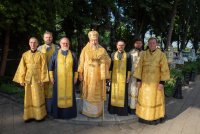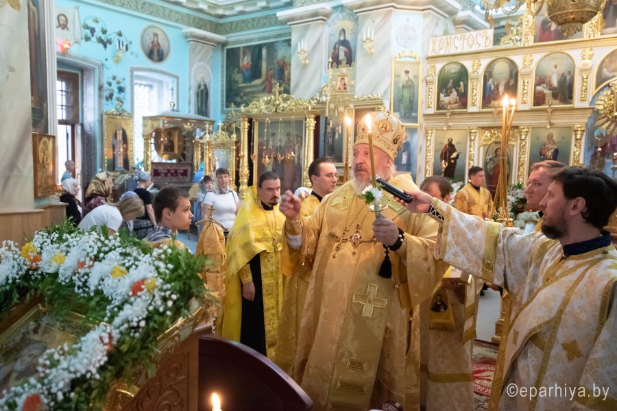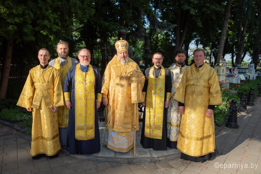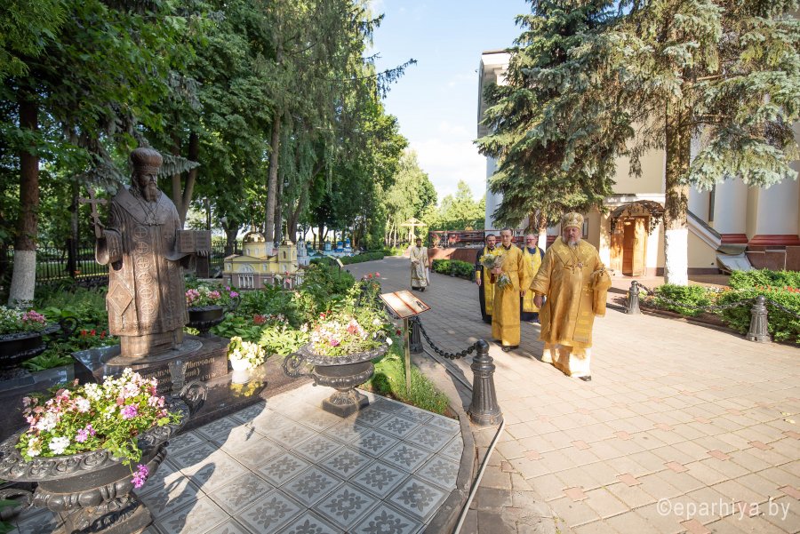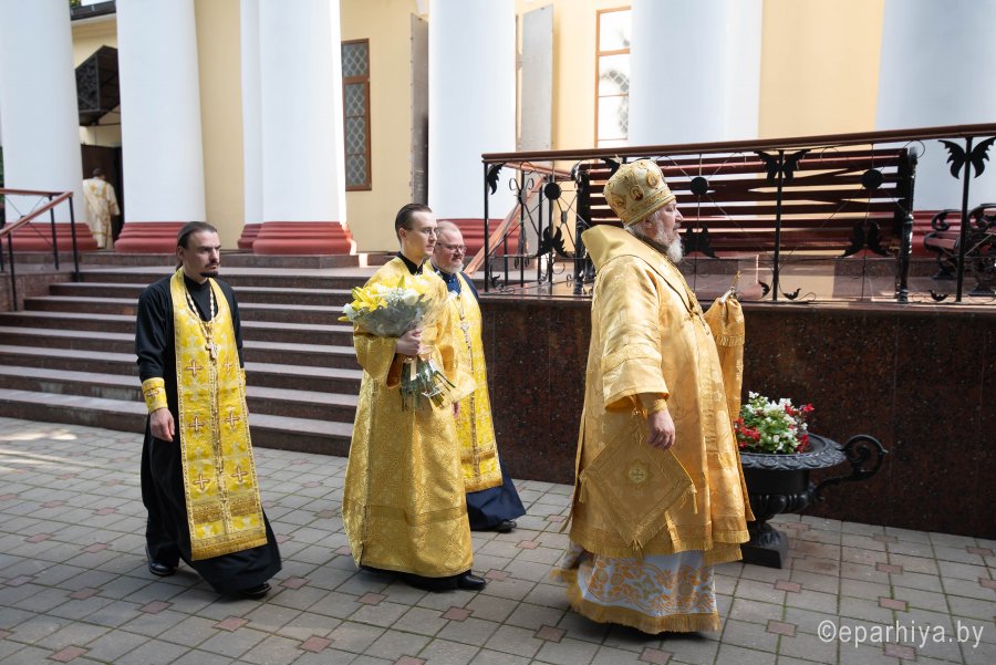 Уставные богослужения в канун дня памяти священномученика Митрофана архиепископа Астраханского 05.07.2020г. в Петро-Павловском кафедральном соборе возглавил Высокопреосвященнейший Стефан, архиепископ Гомельский и Жлобинский в сослужении духовенства собора. По окончании богослужения владыка Стефан обратился к молящимся со словами архипастырского назидания. По завершению богослужения Высокопреосвященнейший Стефан и священнослужители собора возложили цветы у памятника священномученика Митрофана архиепископа Астраханского, установленного во дворе Петро-Павловского собора. Была совершена молитва с пением величания священномученику, тем самым священнослужители почтили светлую память святого - первого Гомельского епископа. |