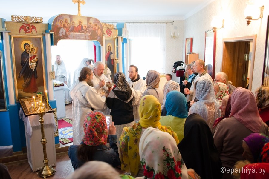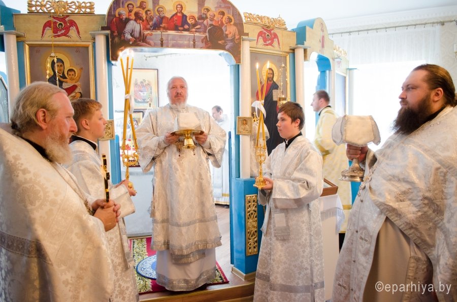 1 июля 2015г. Преосвященный Стефан совершил чин освящения Престола и возглавил Божественную Литургию в Крестильном храме Сретения Господня Свято-Иоанно-Кормянского женского монастыря. Преосвященному сослужили: секретарь Гомельской епархии протоиерей Георгий Алампиев, благочинный монастырей Гомельской епархии архимандрит Амвросий (Шевцов), архимандрит Варсонофий (Степанцов), эконом Гомельской епархии протоиерей Владимир Масалитин и духовенство епархии. Богослужебные песнопения исполнил молодежный хор "Экклесия" Свято Успенского Собора г.Днепропетровска, который совершает свое паломничество по святыням Беларуси. Регент Ангелина Ничипорук. За литургией молились игуменья Свято-Иоанно-Кормянского монастыря Платонида с сестрами обители. По окончании богослужения владыка пообщался с паломниками и преподал им свое архипастырское благословение. |