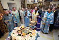 Всенощное бдение в канун дня празднования Тихвинской иконы Божией Матери 8 июля 2020г. Преосвященнейший Амвросий, епископ Светлогорский, викарий Гомельской епархии совершил в Тихвинском женском монастыре г.Гомеля в сослужении духовенства епархии. По окончании богослужения владыка Амвросий обратился к молящимся со словами архипастырского назидания. |