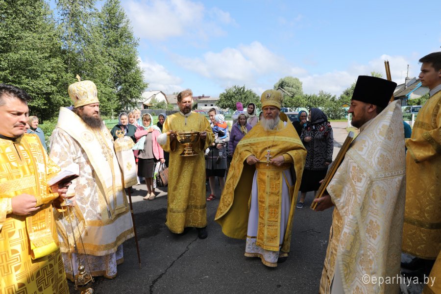 13 июля 2020 г., в день праздника Собора славных и всехвальных 12-ти апостолов, епископ Светлогорский Амвросий, викарий Гомельской епархии, возглавил Божественную литургию в храме Святых двенадцати апостолов аг. Чирковичи. Его Преосвященству сослужили: благочинный Светлогорского округа протоиерей Александр Кисель, настоятель храма архимандрит Алексий (Желенок) и духовенство благочиния. По сугубой ектении владыка Амвросий вознес молитву, чтомую во время распространения вредоносного поветрия. По завершении Божественной литургии духовенство и молящиеся совершили крестный ход. По окончании богослужения Преосвященнейший Амвросий поздравил прихожан с престольным праздником, причастников с принятием Святых Христовых Таин и обратился к молящимся со словами архипастырского назидания. |