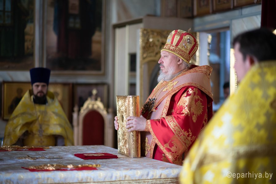 Божественную литургию в день памяти святых Царственных страстотерпцев 17 июля 2020 года в Петро-Павловском кафедральном соборе г.Гомеля совершил Высокопреосвященный Стефан, архиепископ Гомельский и Жлобинский в сослужении духовенства собора. По сугубой ектении владыка Стефан вознес молитву, чтомую во время распространения вредоносного поветрия. По окончании богослужения Высокопреосвященнейший Стефан поздравил причастников с принятием Святых Христовых Таин и обратился к молящимся со словами архипастырского назидания. «Страстотерпец» — это один из чинов святости. Это святой, принявший мученическую смерть за исполнение Божиих Заповедей, и чаще всего — от рук единоверцев. Важная часть подвига страстотерпца — то, что мученик не держит зла на мучителей и не сопротивляется. Верность страстотерпцев Христу выражается в их верности своему призванию и предназначению. Царственные страстотерпцы — это последний российский император Николай II и его семья: императрица Александра Федоровна, царевич Алексей, великие княжны Ольга, Татьяна, Мария и Анастасия. Они приняли мученическую смерть — в ночь с 16 на 17 июля 1918 года они были расстреляны в Екатеринбурге в подвале Ипатьевского дома по приказу большевиков. В 2000 году Русская Православная Церковь причислила их к лику святых. День памяти святых Царственных страстотерпцев позволяет увидеть, как возможно человеку идти за Христом и быть верным Ему, несмотря ни на какие жизненные скорби и испытания. Царственные страстотерпцы мужественно принимали свою участь, стойко перенося физические, нравственные и моральные страдания. Только смиренное сердце, сердце, без остатка преданное Богу, способно было понести столь тяжкий крест. |