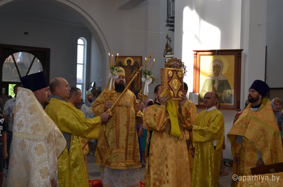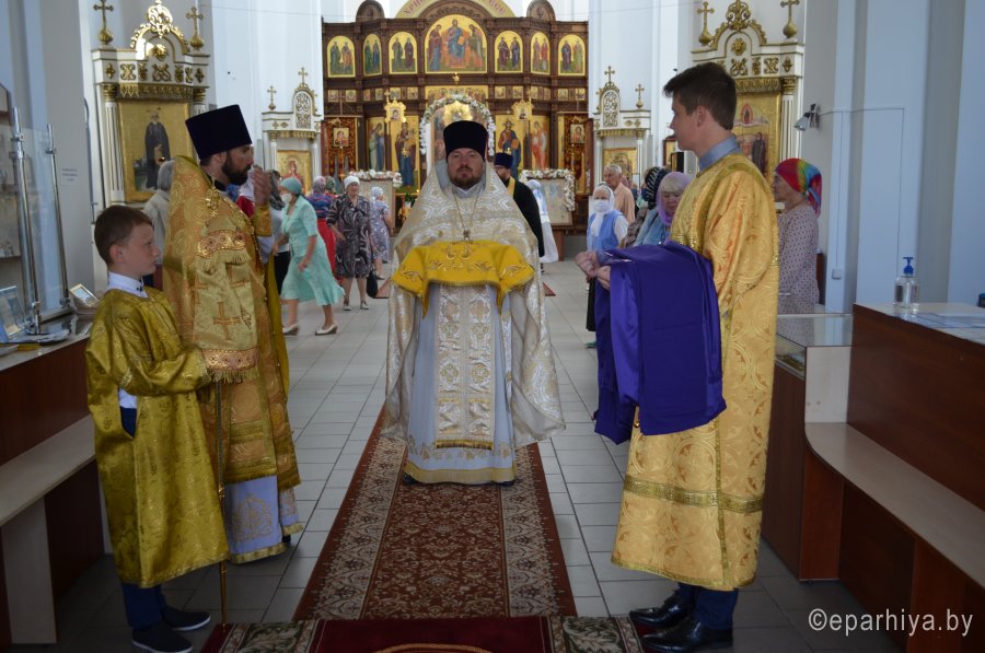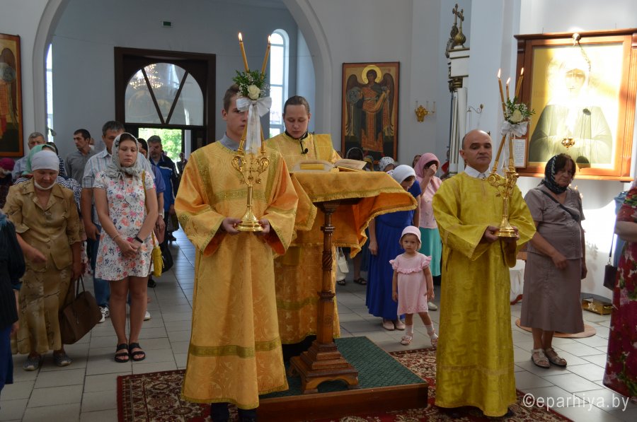 26 июля 2020 г., в день празднования Собора Архангела Гавриила, епископ Светлогорский Амвросий, викарий Гомельской епархии, возглавил Божественную литургию в храме Преображения Господня в г. Светлогорске. Его Преосвященству сослужили: благочинный Светлогорского округа протоиерей Александр Кисель и духовенство храма. По сугубой ектении владыка Амвросий вознес молитву, чтомую во время распространения вредоносного поветрия. По окончании богослужения Преосвященнейший Амвросий поздравил прихожан с праздником, причастников с принятием Святых Христовых Таин и обратился к молящимся со словами архипастырского назидания. |
