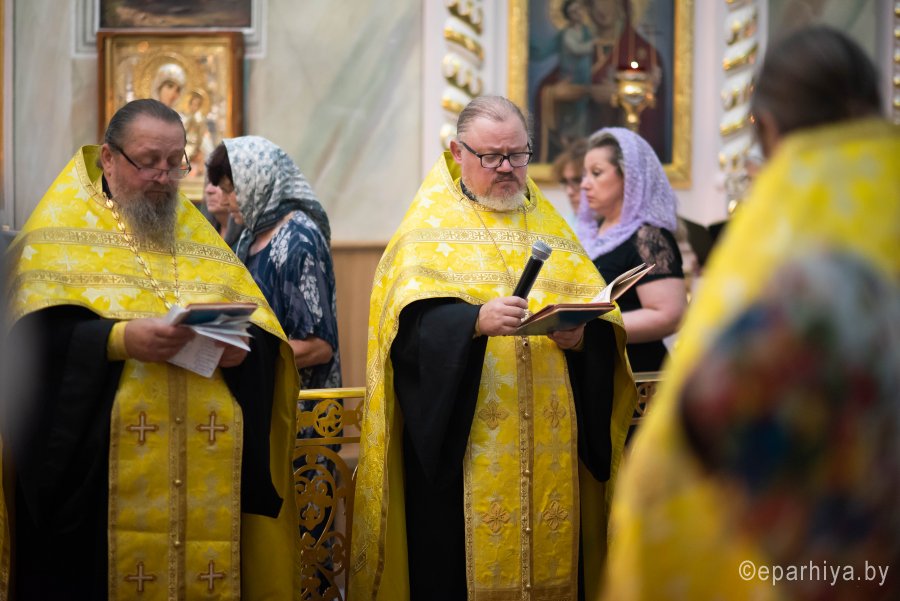 Вечернее богослужение с чтением акафиста на распев в Петро-Павловском кафедральном соборе г.Гомеля 27 июля 2020г. совершил Высокопреосвященнейший Стефан, архиепископ Гомельский и Жлобинский, в сослужении духовенства собора. По окончании богослужения владыка Стефан обратился к молящимся со словами архипастырского назидания. |