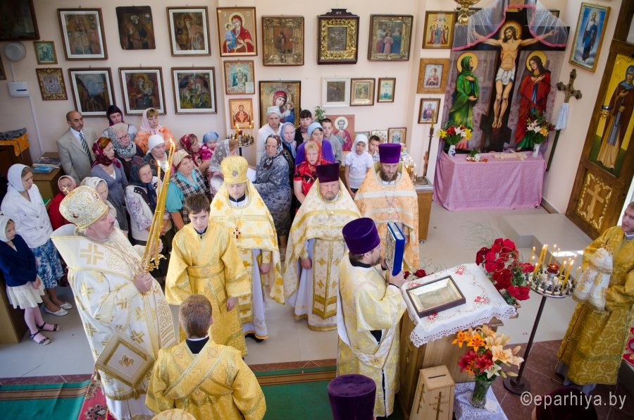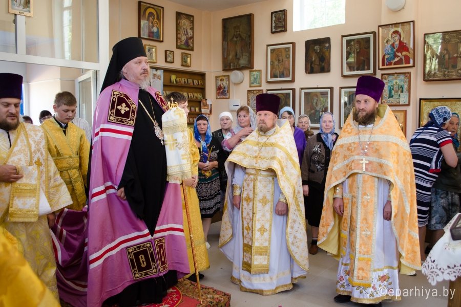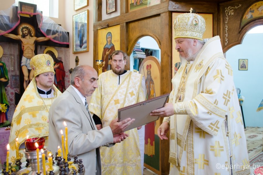 2 июля 2015г., в день памяти апостола Иуды, брата Господня, Преосвященнейший Стефан возглавил Божественную литургию в храме Покрова Пресвятой Богородицы г/п Коммунар Буда-Кошелевского благочинного округа. Преосвященному сослужили: секретарь Гомельской епархии протоиерей Георгий Алампиев, благочинный Буда-Кошелевского благочинного округа протоиерей Сергий Пешко и духовенство храма. По окончании богослужения, за активную помощь в строительстве и благоустройстве храма, Владыка преподнес Архиерейскую грамоту меценату Машкову Александру Сергеевичу. |