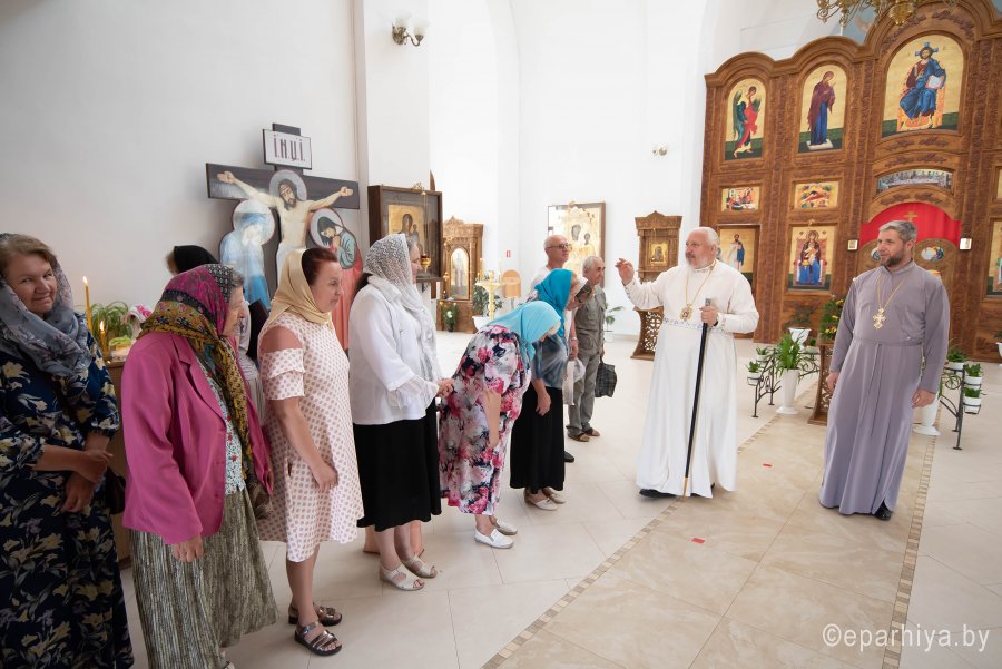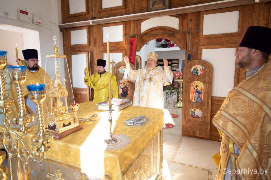 Божественную литургию в день памяти святого равноапостольного князя Владимира, Дня Крещения Руси 28 июля 2020г. Высокопреосвященнейший Стефан, архиепископ Гомельский и Жлобинский совершил в приходе храма Грузинской иконы Божией Матери в г.Гомеле. Высокопреосвященнейшему сослужили: благочинный Гомельского городского округа протоиерей Игорь Ольшанов, настоятель прихода протоиерей Владимир Масалитин и духовенство епархии. По сугубой ектении владыка Стефан вознес молитву, чтомую во время распространения вредоносного поветрия. По окончании богослужения Владыка совершил славление празднику, поздравил настоятеля храма протоиерея Владимира Масалитина с Днем Ангела, а причастников с принятием Святых Христовых Таин и обратился к молящимся со словами Архипастырского назидания. |