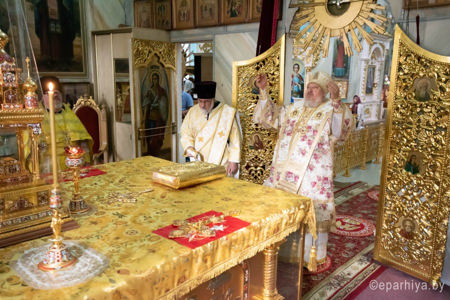 Божественную литургию в четверг 8-й седмицы по Пятидесятнице, 30 июля 2020г. Высокопреосвященнейший Стефан, архиепископ Гомельский и Жлобинский совершил в Петро-Павловском кафедральном соборе г.Гомеля в сослужении духовенства собора. По сугубой ектении владыка Стефан вознес молитву, чтомую во время распространения вредоносного поветрия. По окончании богослужения Владыка поздравил причастников с принятием Святых Христовых Таин и обратился к молящимся со словами архипастырского назидания. |