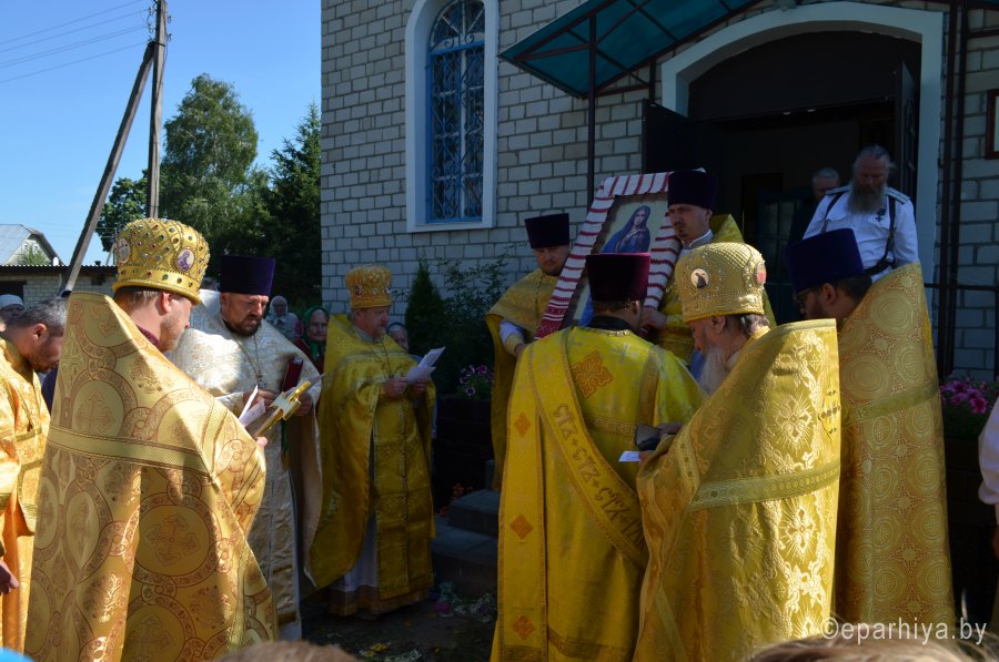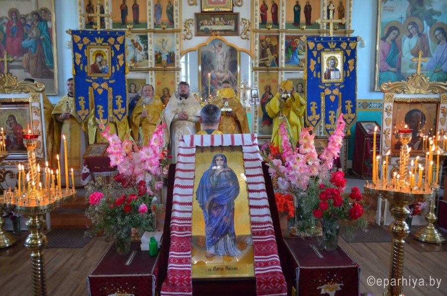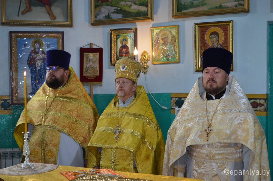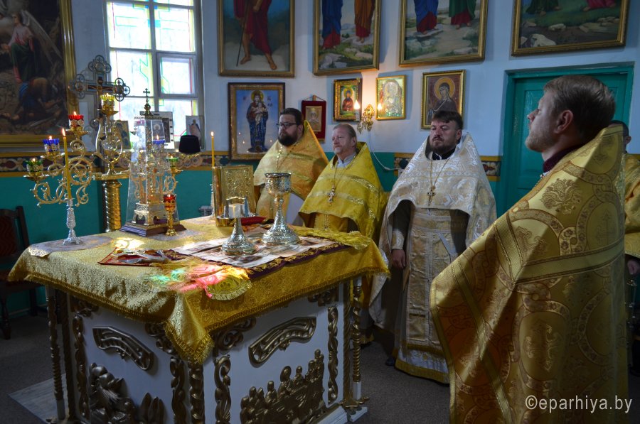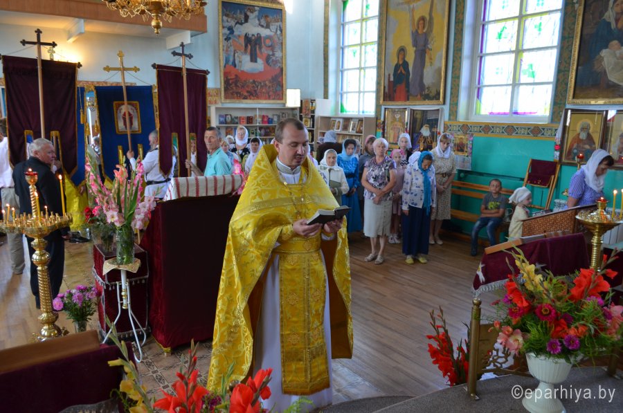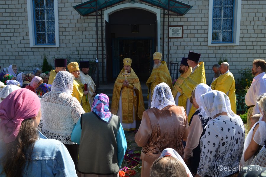 4 августа 2020 г., в день памяти святой равноапостольной Марии Магдалины, по благословению Высокопреосвященнейшего Стефана, архиепископа Гомельского и Жлобинского, секретарь Гомельской епархии протоиерей Георгий Алампиев, возглавил Божественную литургию в одноименном храме г.п. Паричи в сослужении благочинного Светлогорского округа протоиерея Александра Киселя, настоятеля храма иерея Николая Бондарева и духовенства благочиния. По сугубой ектении протоиерей Георгий Алампиев вознес молитву, чтомую во время распространения вредоносного поветрия. По завершении Божественной литургии духовенство и молящиеся совершили крестный ход. По окончании богослужения протоиерей Георгий Алампиев поздравил прихожан с престольным праздником, причастников с принятием Святых Христовых Таин и передал молящимся архипастырское благословение архиепископа Гомельского и Жлобинского Высокопреосвященнейшего Стефана и епископа Светлогорского, викария Гомельской епархии Преосвященнейшего Амвросия. |