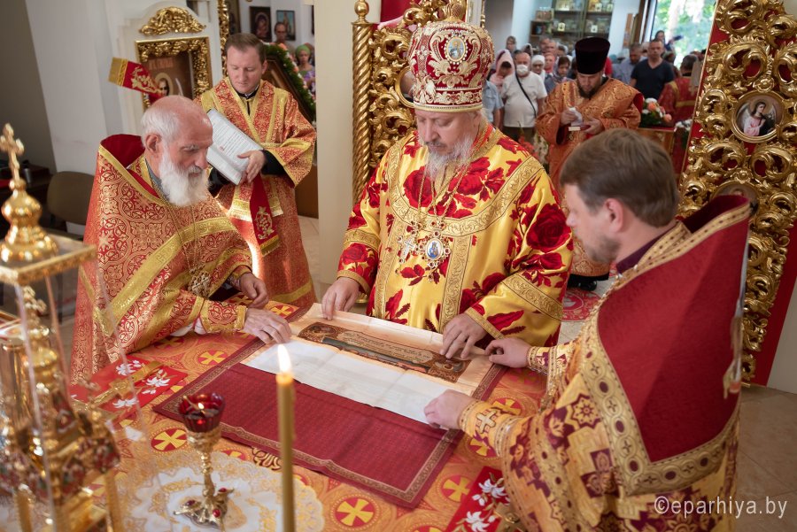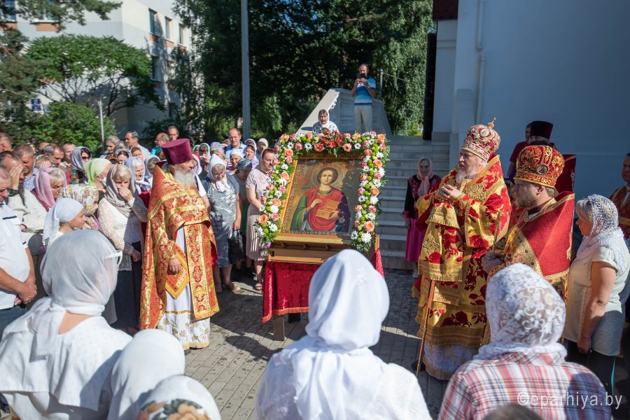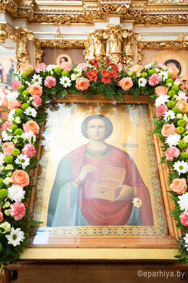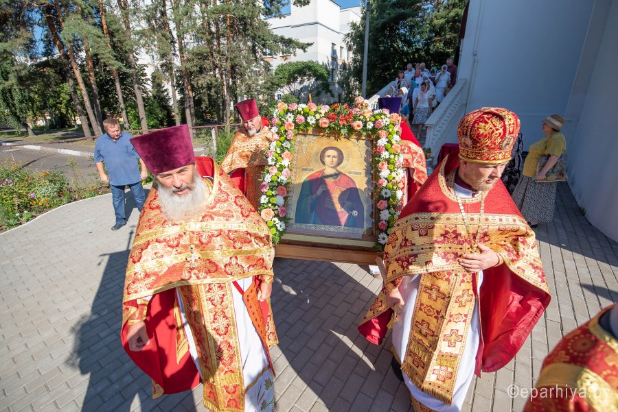 Православная Церковь 9 августа чтит память святого великомученика и целителя Пантелеимона. Еще при жизни к Святому Пантелеимону приходили больные и страждущие, нищие и убогие, признавая его за великого целителя, который безвозмездно врачевал их недуги. С именем Христовым он помогал всем пришедшим к нему, отказался от всех земных благ, и с именем Христовым он принял мученическую смерть, зная, что человек живет не для этой жизни, а для вечной. Божественную литургию в день памяти великомученика и целителя Пантелеимона в одноименном храме г.Гомеля 9 августа 2020г. возглавил Высокопреосвященнейший Стефан, архиепископ Гомельский и Жлобинский. Высокопреосвященнейшему сослужили: секретарь Гомельской епархии протоиерей Георгий Алампиев, духовник Гомельской епархии протоиерей Стефан Гладыщук, благочинный Гомельского городского округа протоиерей Игорь Ольшанов, настоятель прихода протоиерей Владимир Сулимов и духовенство епархии. По сугубой ектении владыка Стефан вознес молитву, чтомую во время распространения вредоносного поветрия. По окончании богослужения Высокопреосвященнейший Стефан возглавил крестный ход, поздравил духовенство и прихожан с престольным праздником, причастников с принятием Святых Христовых Таин и обратился к молящимся со словами архипастырского назидания и в память об общей молитве всем присутствующим были розданы иконки. Более 1700 лет к святому великомученику и целителю Пантелеимону верующие обращают свои молитвы в скорбях, в горестях и болезнях, прося его молитвенной помощи и заступления перед Богом и надеясь на те чудесные исцеления, о которых мы знаем из жития святого, ожидая, чтобы они сбылись и на наших грешных душах, исцеляя духовные и телесные наши болезни. Родился будущий Святой в городе Никомидии, в семье знатного язычника Евсторгия. Мальчика назвали Пантолеон, что в переводе с греческого означает "во всем лев". Его мать – Еввула, была христианкой и воспитывала мальчика в своей вере. Однако, после смерти супруги Евсторгий отдал Пантолеона в языческую школу, окончив которую юноша начал учиться врачебному искусству у знаменитого врача Евфросина. В разгар гонений императора Максимиана (284-305) на христиан Пантолеон становится придворным врачом у императора. Образованный юноша мог стать влиятельнейшей фигурой при дворе императора Максимиана, но Господь уготовил ему совершенно другой путь. Однажды юноша увидел на улице мертвого ребенка, укушенного ехидной, которая еще была рядом. Пантолеон начал молиться Господу Иисусу Христу о воскрешении умершего и умерщвлении ядовитого гада. Он твердо решил, что в случае исполнения его молитвы станет последователем Христа и примет крещение. Ребенок ожил, а ехидна разлетелась на куски на глазах у Пантолеона. Уверовав, он принял крещение, получил имя Пантелеймон, что значит "всемилостивый" и стал безвозмездно лечить всех больных, которые к нему обращались, исцеляя их именем Иисуса Христа. Людская молва о нем быстро разошлась по городу, больные стали отказываться от других врачей, стремясь попасть к нему на прием. Из зависти и досады врачи донесли императору, что Святой Пантелеймон лечит христианских узников. Максимиан очень уважал Пантелеймона, но не мог допустить в своей языческой стране прославление Христа, поэтому призвал доктора и потребовал опровергн