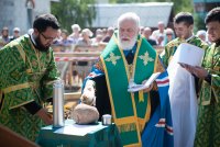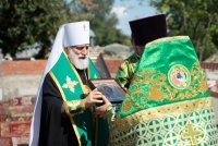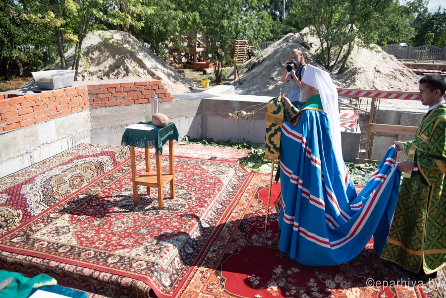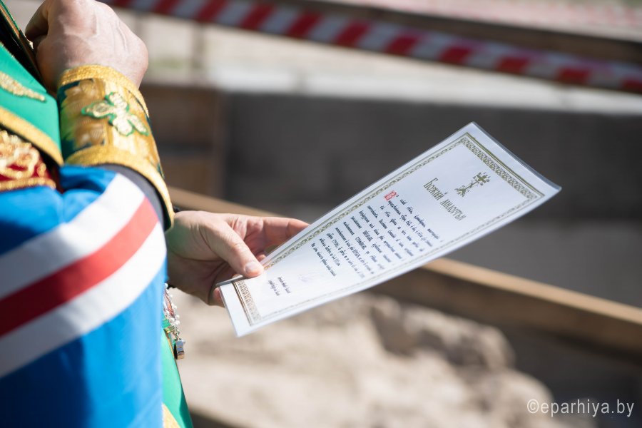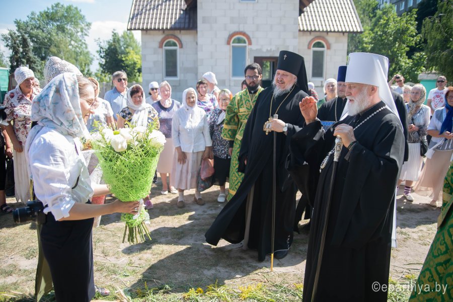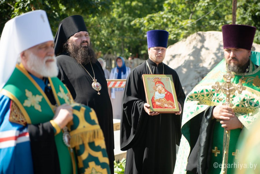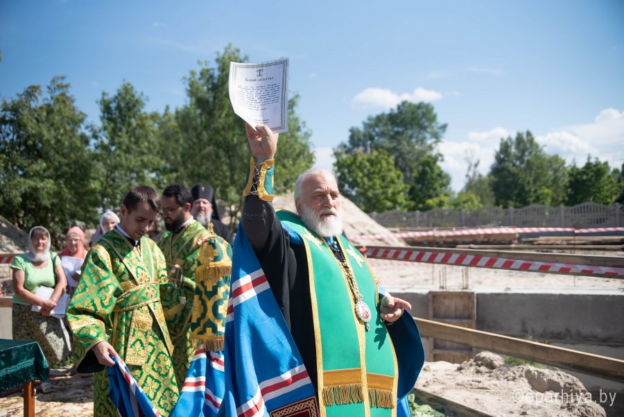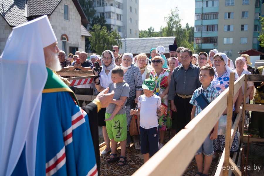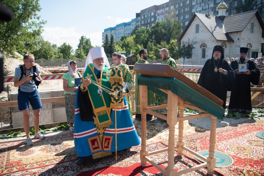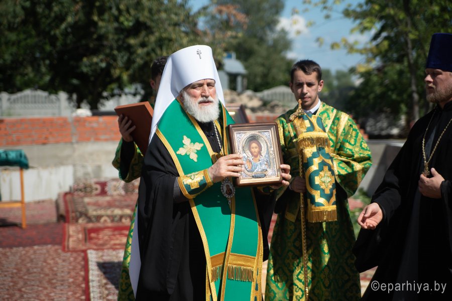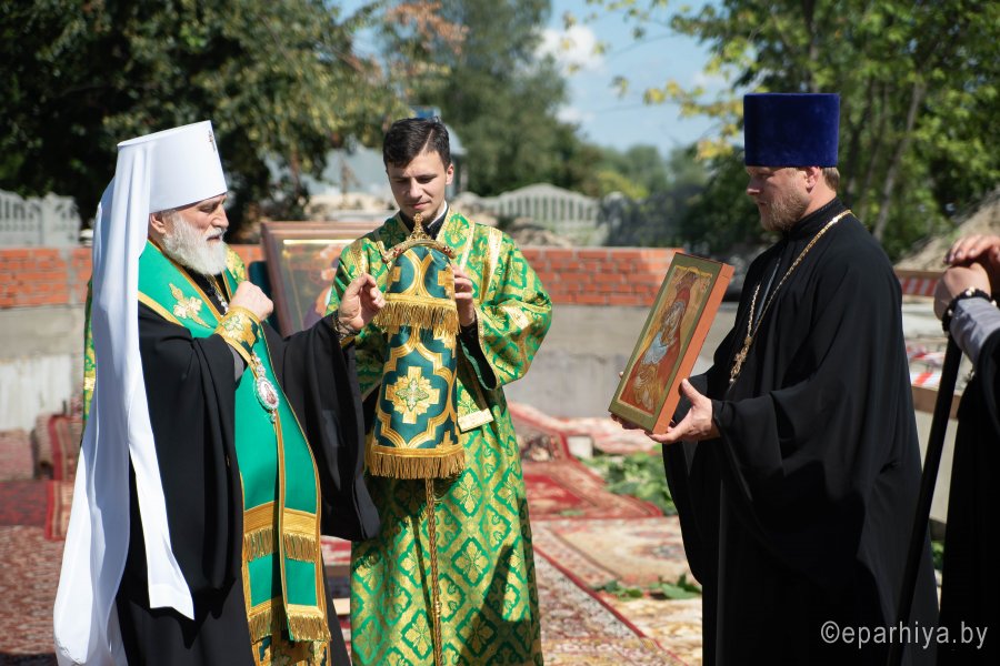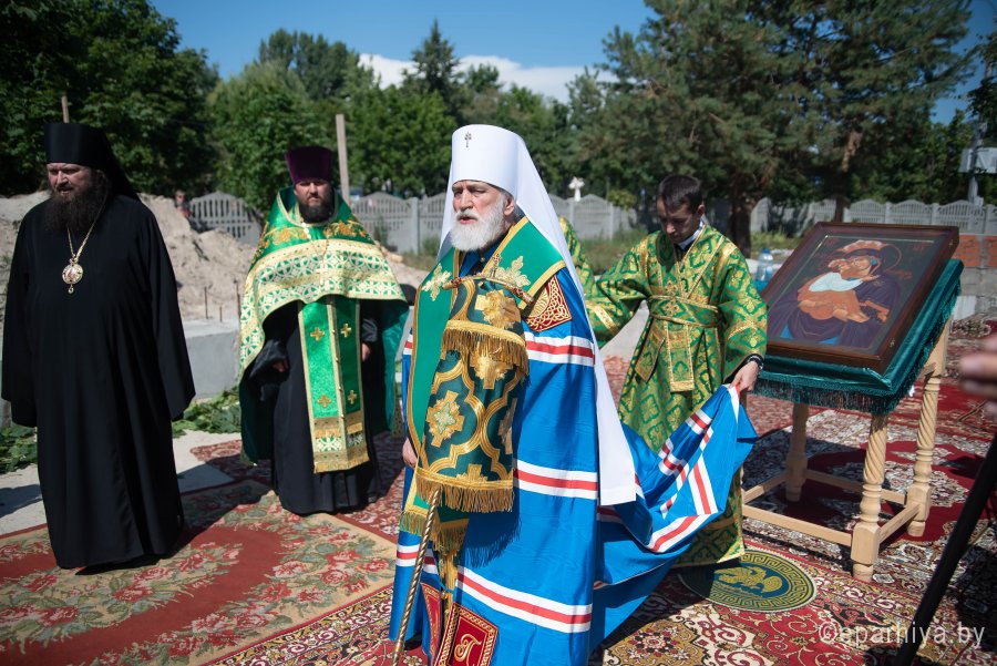 Патриарший Экзарх всея Беларуси совершил чин на основание строящегося храма в честь иконы Божией Матери «Скитковской-Гомельской»