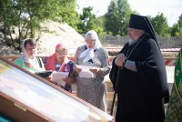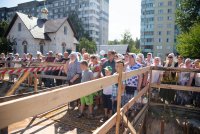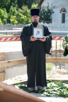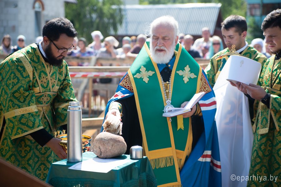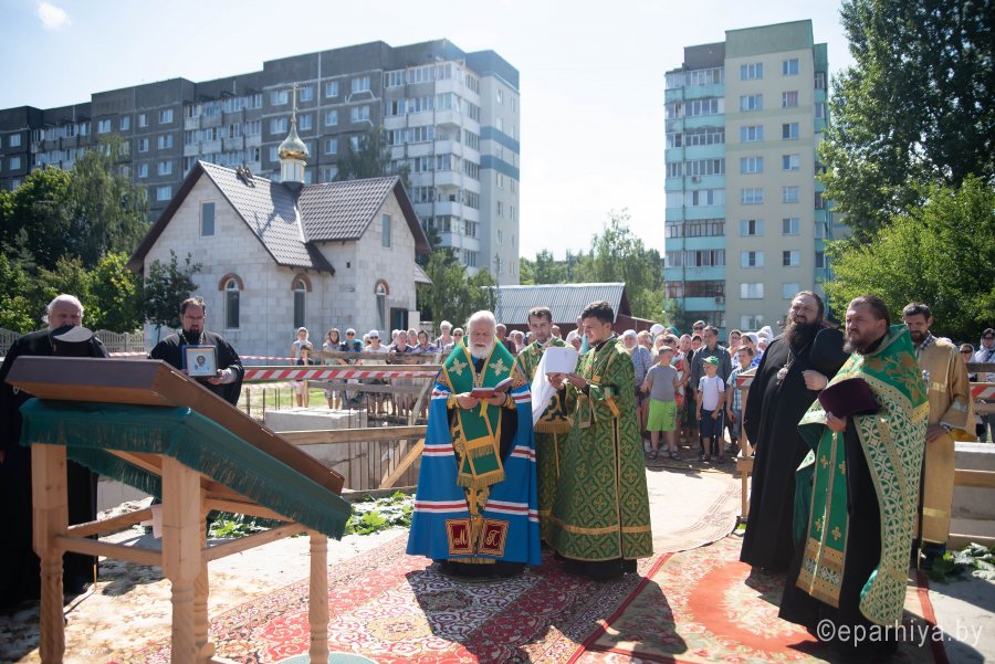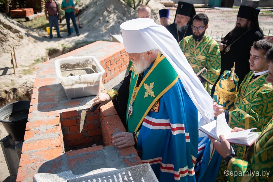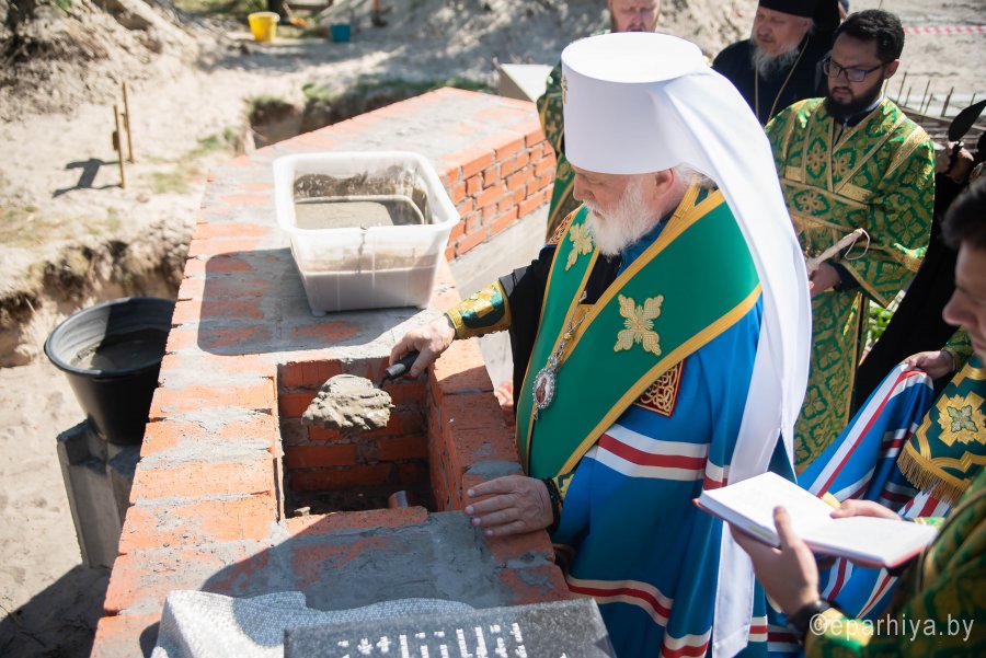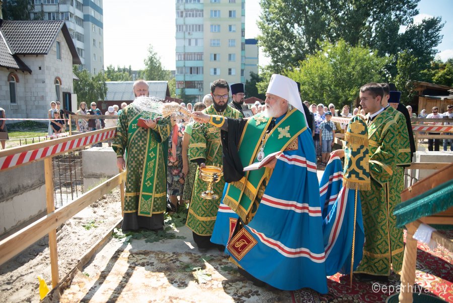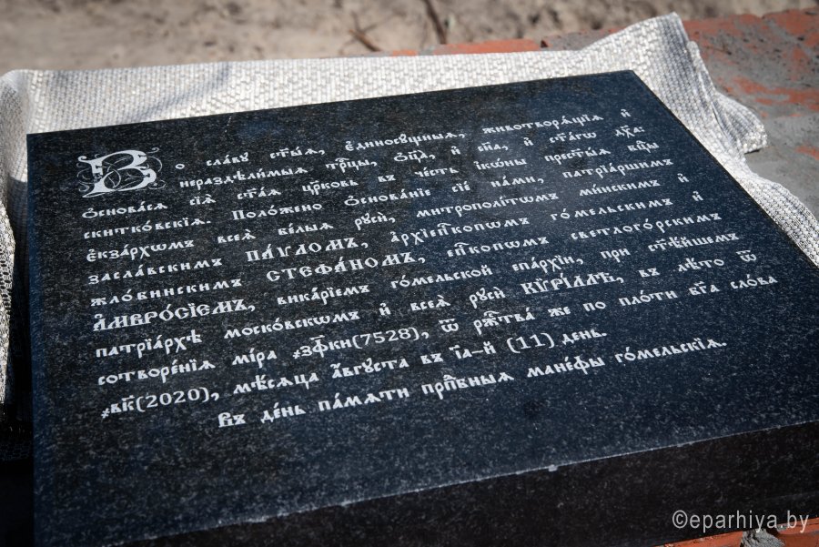 11 августа 2020 года митрополит Минский и Заславский Павел, Патриарший экзарх всея Беларуси, совместно со архиепископом Гомельским и Жлобинским Стефаном и епископом Светлогорским Амвросием, викарием Гомельской епархии, совершили чин на основание строящегося храма в честь иконы Божией Матери «Скитковской-Гомельской», во время которого совершили закладку камня и памятной грамоты в основание храма. По завершении чина Владыка Павел обратился ко всем молящимся со словом назидания, преподал верующим Архипастырское благословение, а также отметил, что храм – это не просто здание, храм должен быть в сердце каждого человека. |