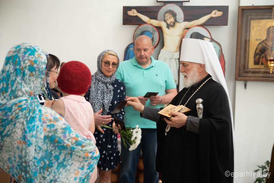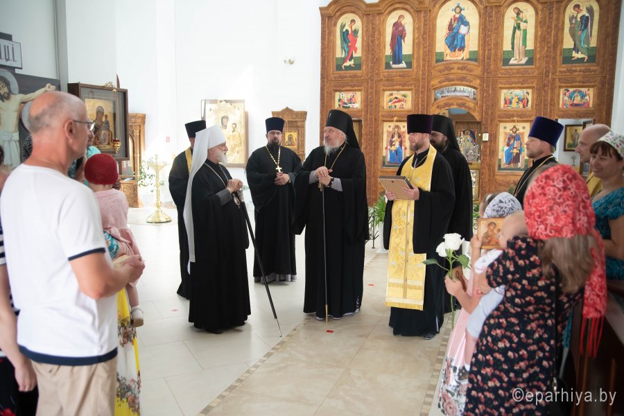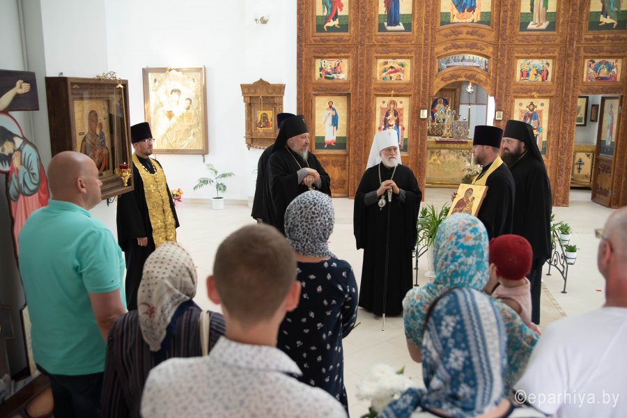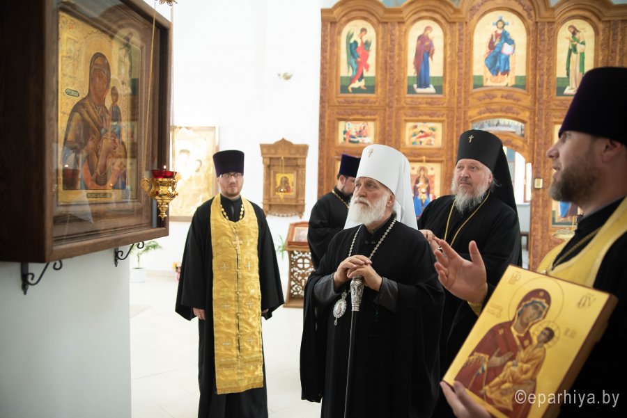 11 августа 2020г., в ходе своего визита в Гомельскую епархию, Высокопреосвященнейший Павел, митрополит Минский и Заславский, Патриарший экзарх всея Беларуси совместно с Высокопреосвященнейшим Стефаном, архиепископом Гомельским и Жлобинским, и Преосвященнейшим Амвросием, епископом Светлогорским, викарием Гомельской епархии, совершил ряд рабочих визитов в храмы города Гомеля. Предстоятеля Белорусской Православной Церкви радушно встретили прихожане храма Грузинской иконы Божией Матери г.Гомеля. Настоятель храма протоиерей Владимир Масалитин ознакомил архипастырей с деятельностью прихода. В продолжении своего визита Высокопреосвященнейший Павел посетил приход храма святого благоверного князя Александра Невского в г.Гомеле. Митрополит Павел обратился к прихожанам со словами архипастырского назидания и поблагодарил всех за теплый прием. |