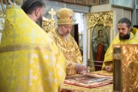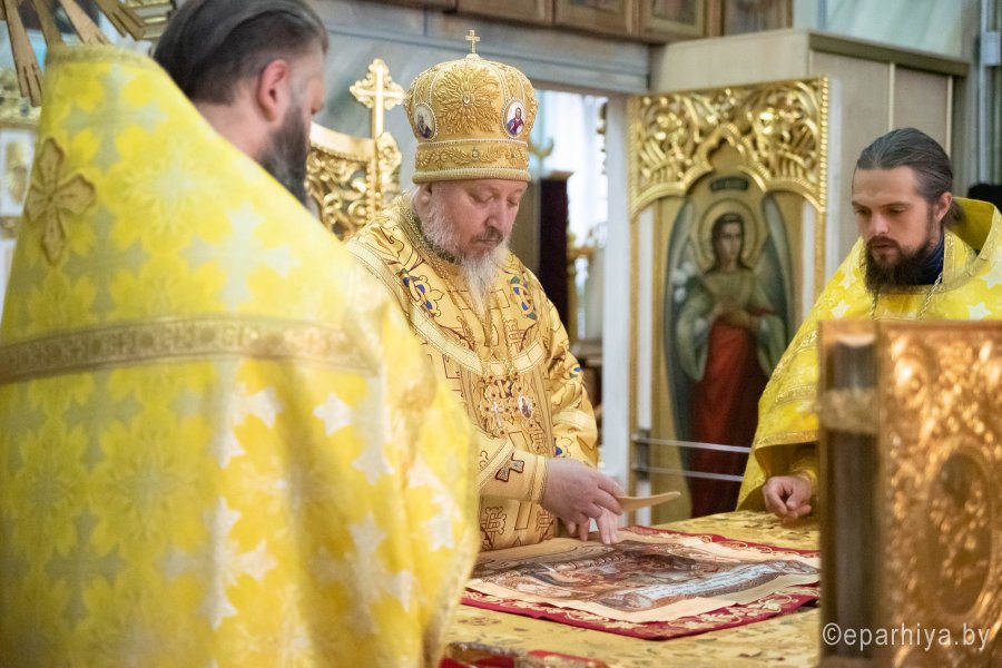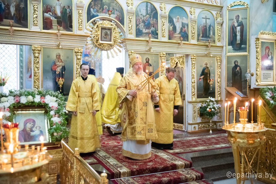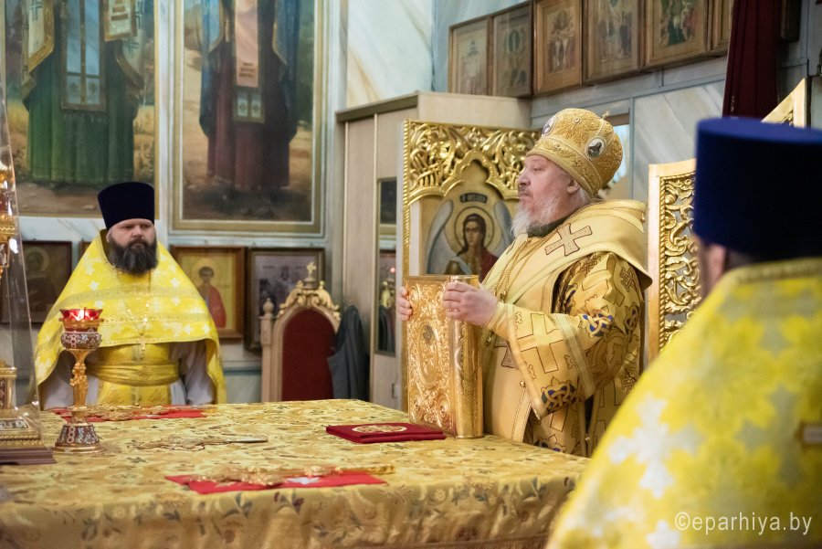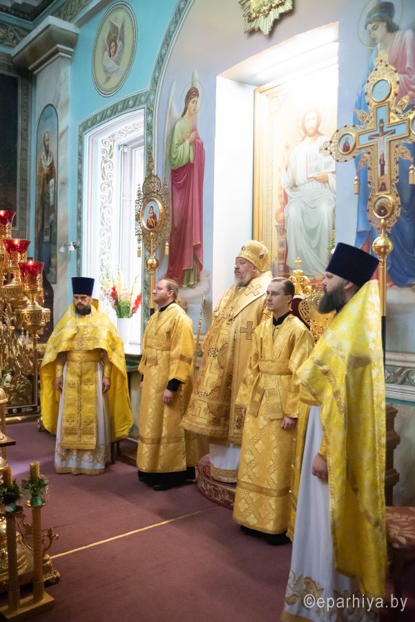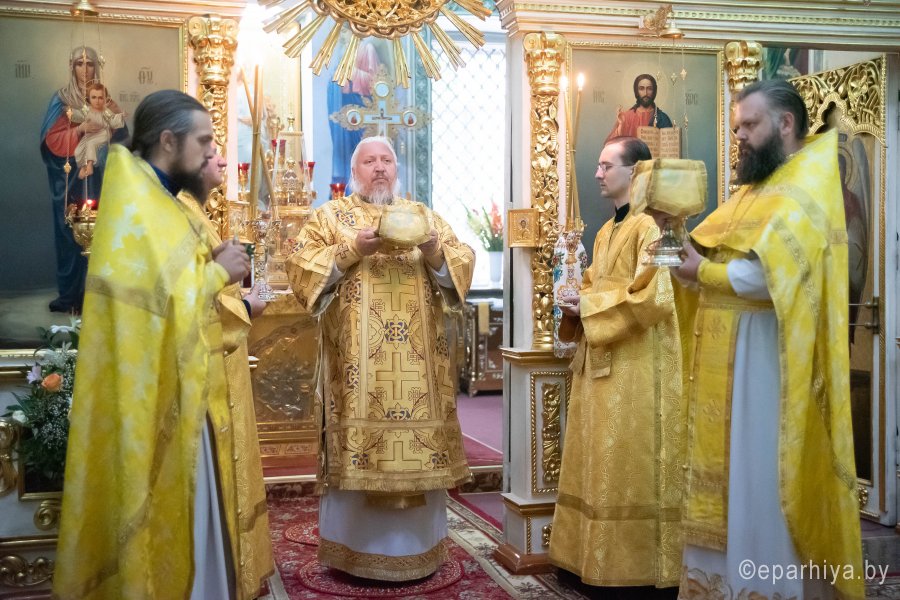 13 августа 2020г., в предпразднство происхождения честных древ Животворящего Креста Господня, Преосвященнейший Стефан возглавил Божественную литургию в Свято-Петро-Павловском кафедральном соборе г.Гомеля в сослужении духовенства собора. По сугубой ектении владыка Стефан вознес молитву, чтомую во время распространения вредоносного поветрия. По окончании богослужения Владыка поздравил Причастников с принятием Святых Христовых Таин и обратился к молящимся со словами архипастырского назидания. |