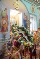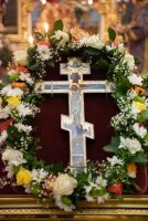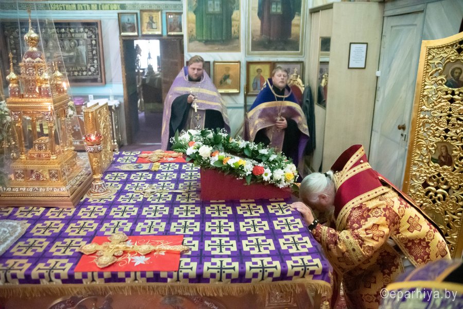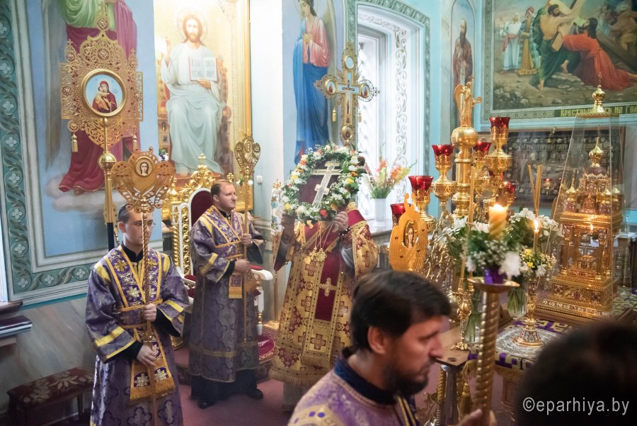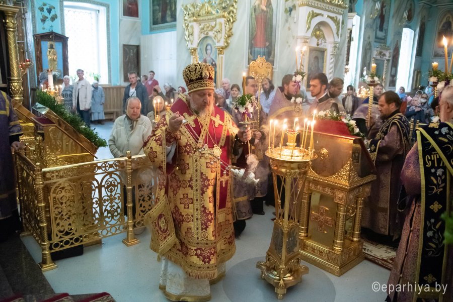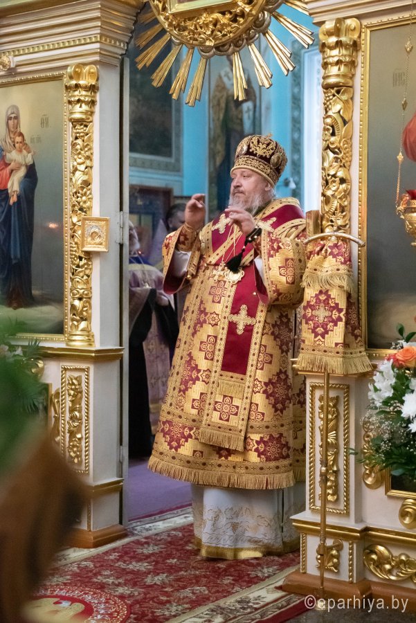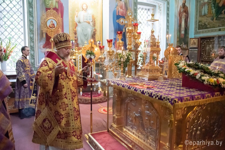 Вечером 13 августа 2020г., в канун праздника Происхождение (изнесение) честных древ Животворящего Креста Господня и день памяти семи мучеников Маккавеев, Высокопреосвященный Стефан совершил вечернее богослужение с чином выноса Креста в Петро-Павловском кафедральном соборе г.Гомеля. Высокопреосвященнейшему сослужили: секретарь Гомельской епархии протоиерей Георгий Алампиев и духовенство собора. По окончании богослужения Владыка обратился к духовенству и прихожанам собора со словами Архипастырского назидания. |