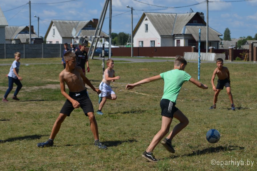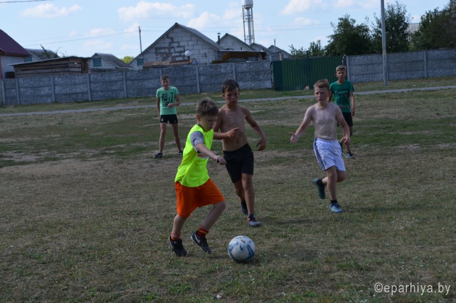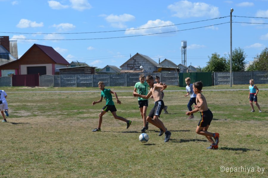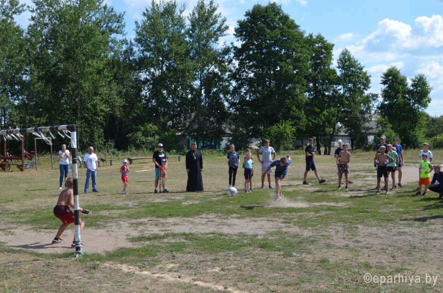 В поселке Медков состоялось спортивное мероприятие по футболу «Летящий мяч», в котором приняли участие ребята аг. Чирковичи и пос. Медков Светлогорского района. Состязания 16 августа были организованы приходом храма Преображения Господня в г. Светлогорске с целью духовно-нравственного и спортивного воспитания подрастающего поколения, популяризации среди молодых людей идей здорового образа жизни, развитие дружбы, взаимного уважения и командного духа. По доброй традиции, уже второй год подряд соревнование началось с благословения благочинного Светлогорского округа протоиерея Александра Киселя. Священник пожелал всем участникам игры силы духа, воли к победе и доброго соперничества. Товарищеский матч получился интересным, богатым на запоминающиеся игровые моменты и проходил в острой b напряженной борьбе, никто из юных спортсменов не хотел уступать. По итогам соревнований главный приз — кубок прихода храма Преображения Господня в г. Светлогорске достался команде ребят из агрогородка Чирковичи. По окончании спортивных состязаний протоиерей Александр Кисель поздравил ребят с замечательной игрой, пожелал Божией помощи во всех благих начинаниях, крепкого здоровья и вручил сладкие угощения: торты и арбузы. |