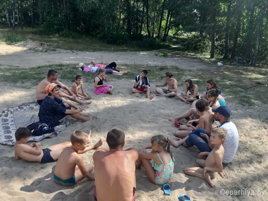 Совместный активный, яркий и полезный отдых объединил с 9 по 16 августа воспитанников воскресных школ Гомельской епархии и их родителей в рамках семейного слета на подворье Никольского мужского монастыря в д.Терюха. Открылся слет совместным участием в Божественной Литургии на праздник Смоленской иконы Божией Матери, именуемой "Одигитрия" в одноимённом храме на территории подворья. Программа слёта имела два основных направления: с одной стороны – это духовная составляющая: совместные утренние и вечерние молитвы, участие в Божественной Литургии, ежедневные евангельские чтения, с другой — спортивные состязания, туристические походы, беседы у костра, подвижные и настольные игры, конкурсы, песни под гитару, купание в речке, пионербол. Учились ребята и самостоятельности, выполняя с родителями посильные трудовые поручения. Каждый день был неповторим, наполнен своими радостями и переживаниями. Побывали участники слёта и на экскурсии в храме Вознесения Господня, расположенного в посёлке Новая Гута Гомельского района, где все желающие смогли окунуться в святом источнике, освящённом в честь святителя Николая Чудотворца. Новый формат проведения детского туристического лагеря совместно с родителями, когда несколько семей объединили свои усилия и выехали на природу со своими детьми, понравился как взрослым, так и детям, принёс море положительных эмоций, доставил огромную радость от общения друг с другом, которая надолго останется в памяти у участников слёта. |