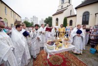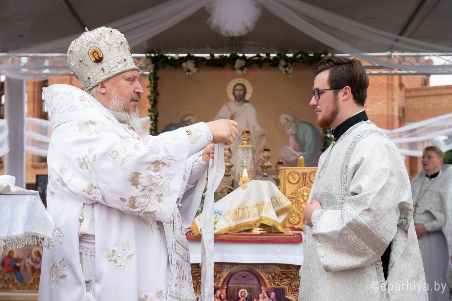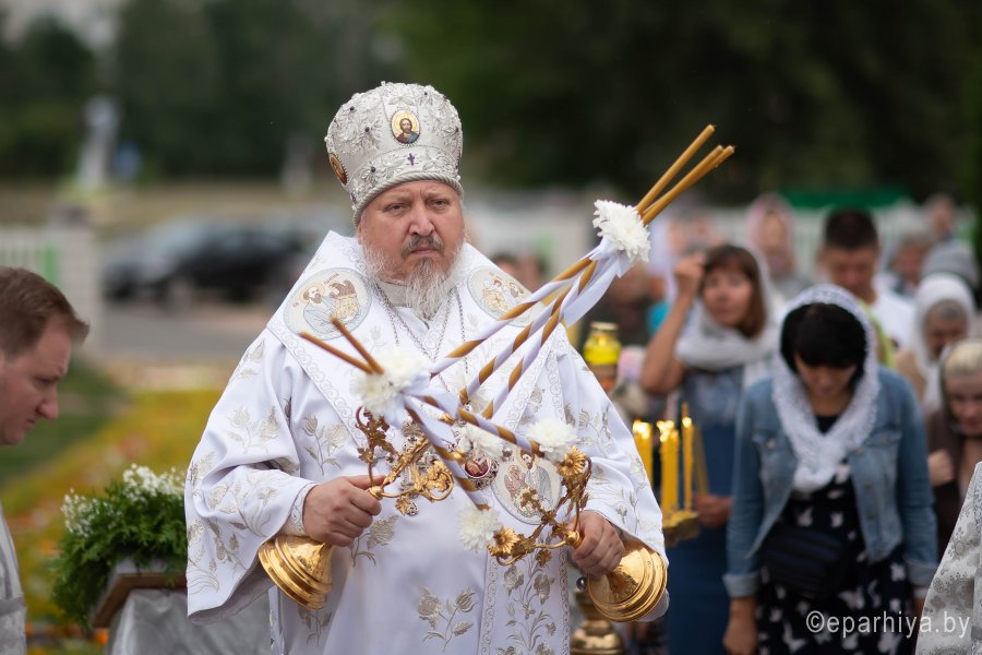 «… И преобразился пред ними: и просияло лице Его, как солнце, одежды же Его сделались белыми, как свет» (Мф.17:2). Православная церковь 19 августа празднует один из двунадесятых праздников – Преображение Господне. Божественную литургию в праздник Преображения Господня Высокопреосвященнейший Стефан, архиепископ Гомельский и Жлобинский совершил в Преображенском храме г.Гомеля. Высокопреосвященнейшему сослужили: секретарь Гомельской епархии протоиерей Георгий Алампиев, настоятель храма протоиерей Олег Кострома и духовенство прихода и епархии. На богослужении присутствовал и.о. ректора Минской духовной семинарии, проректор по научной работе доцент Александр Валерьевич Слесарев. За богослужением Владыка совершил хиротонию выпускника Витебской духовной семинарии диакона Андрея Швеца во иерея. Высокопреосвященнейший Стефан вознес сугубую молитву о даровании мира и благополучия белорусскому народу. По окончании литургии Высокопреосвященнейший Стефан поздравил с Днем рождения секретаря Гомельской епархии протоиерея Георгия Алампиева. Затем Владыка освятил плоды и обратился к молящимся со словами Архипастырского назидания. «Преобразился еси на горе, Христе Боже…», звучали сегодня слова тропаря. О событии Преображения Господня повествуется в трех Евангелиях: от Матфея (17:1-6), Марка (9:1-8) и Луки (9:28-36). Незадолго до Своих Крестных страданий Христос взял троих апостолов – Петра, Иакова и Иоанна – на гору в Галилее, где, молясь, преобразился: одежда и лицо Его просияли белым светом. Возле Христа стояли пророки Моисей и Илия и беседовали с Ним. В великой радости апостол Петр обратился ко Господу: “Наставник! хорошо нам здесь быть; сделаем три кущи, одну Тебе, одну Моисею и одну Илии”. В этот момент апостолов осеняет светлое облако, из которого раздается глас Божий: “Сей есть Сын Мой Возлюбленный, в Котором Мое благоволение; Его слушайте”. После этого чудесного события Христос и ученики сошли с горы. Спаситель запретил апостолам открывать кому бы то ни было тайну Преображения, «доколе Сын Человеческий не воскреснет из мертвых» (Мк 9:9). |
