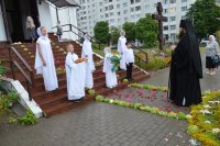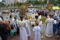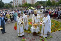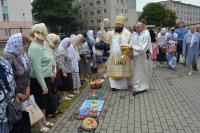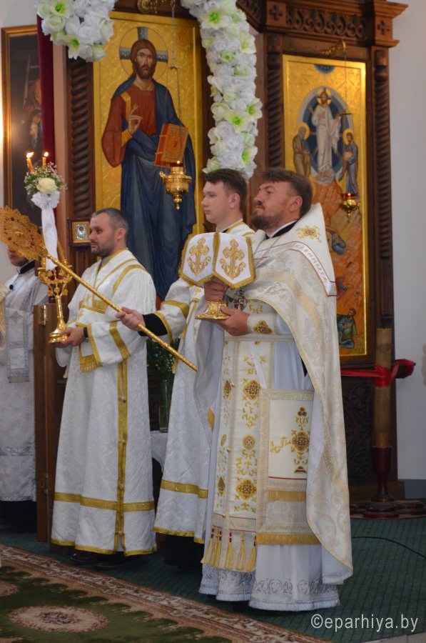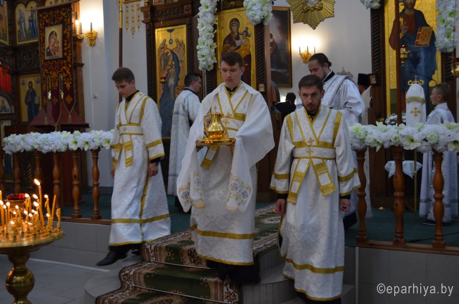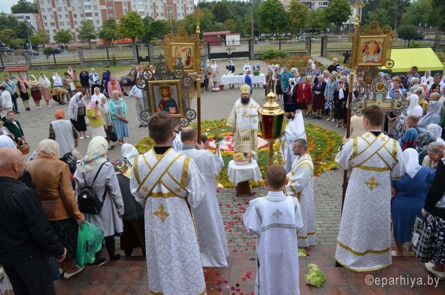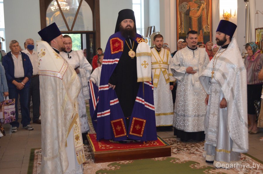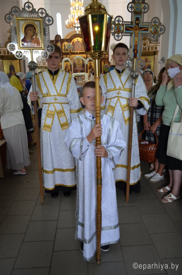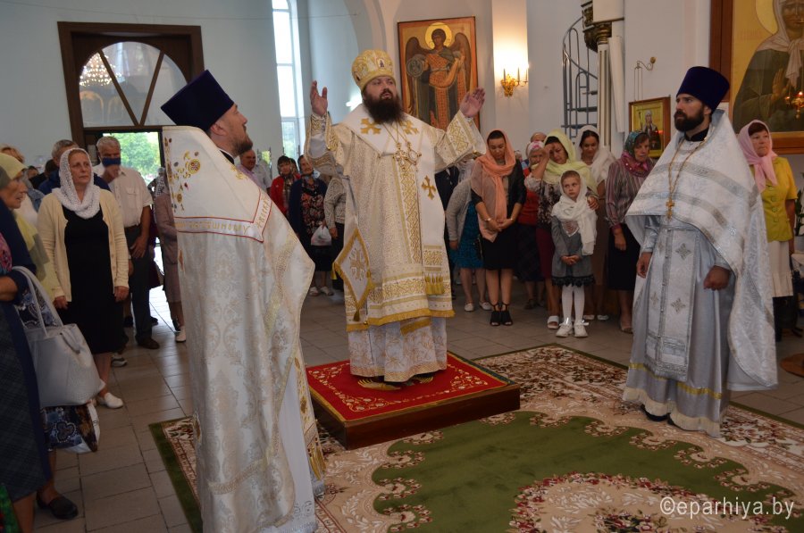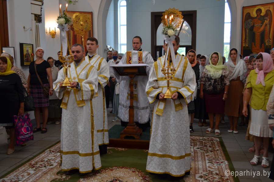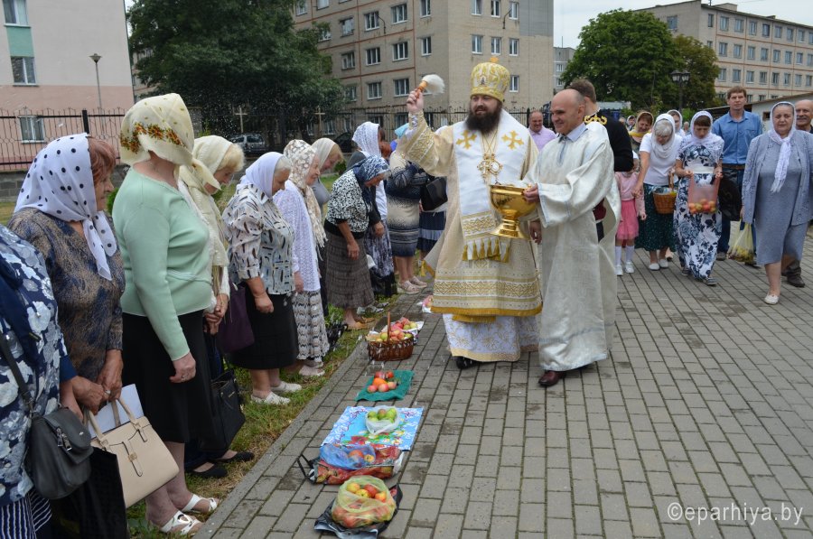 Божественную литургию в праздник Преображения Господня в одноименном храме г. Светлогорска 19 августа 2020 г. возглавил Преосвященнейший Амвросий, епископ Светлогорский, викарий Гомельской епархии. Преосвященнейшему сослужили: благочинный Светлогорского округа протоиерей Александр Кисель и духовенство храма и епархии. За богослужением Владыка вознес сугубую молитву о даровании мира и благополучия белорусскому народу. По окончании Божественной литургии Владыка Амвросий сердечно поздравил молящихся с праздником Преображения Господа Бога и Спаса нашего Иисуса Христа, причастников с принятием Святых Христовых Таин и обратился к молящимся со словами Архипастырского назидания. По завершении богослужения Владыка возглавил крестный ход и освятил плоды нового урожая. |