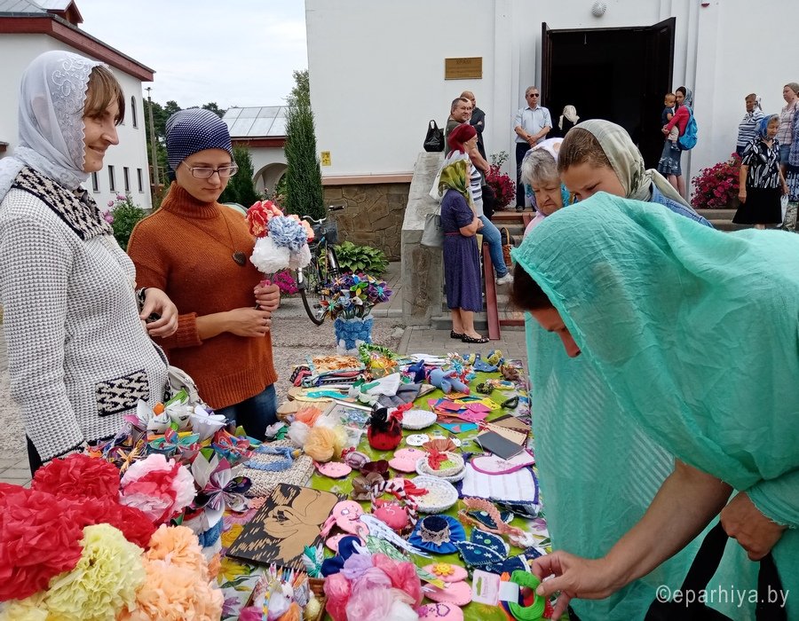 Необыкновенная атмосфера царила на территории прихода храма св. блгв. кн. Александра Невского в г. Гомеле в праздник Преображения Господня! С самого утра прихожане спешили на Божественную литургию, ведь в этот день православные вспоминают евангельское событие - явление Божественного величия перед тремя ближайшими учениками. Целыми семьями верующие шли в храм и несли корзины с яблоками для освящения, недаром, в народе праздник называют «Яблочным Спасом». У входа в храм разместилась, уже ставшая традиционной, благотворительная ярмарка. На выставке были представлены детские поделки, красочные открытки и буклеты, а так же работы, предоставленные учреждением «Центр социального обслуживания населения Новобелицкого района г. Гомеля». В воздухе витало праздничное настроение, удивительный мир добра, благополучия, духовной радости и любви. |