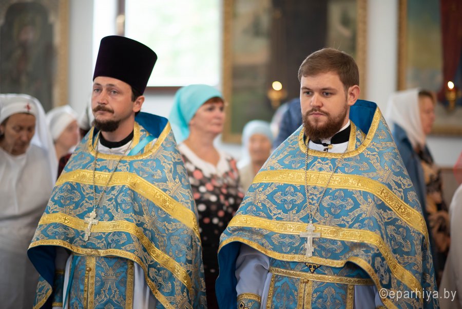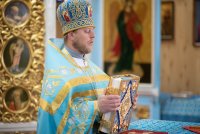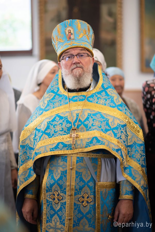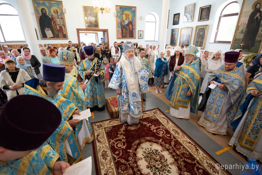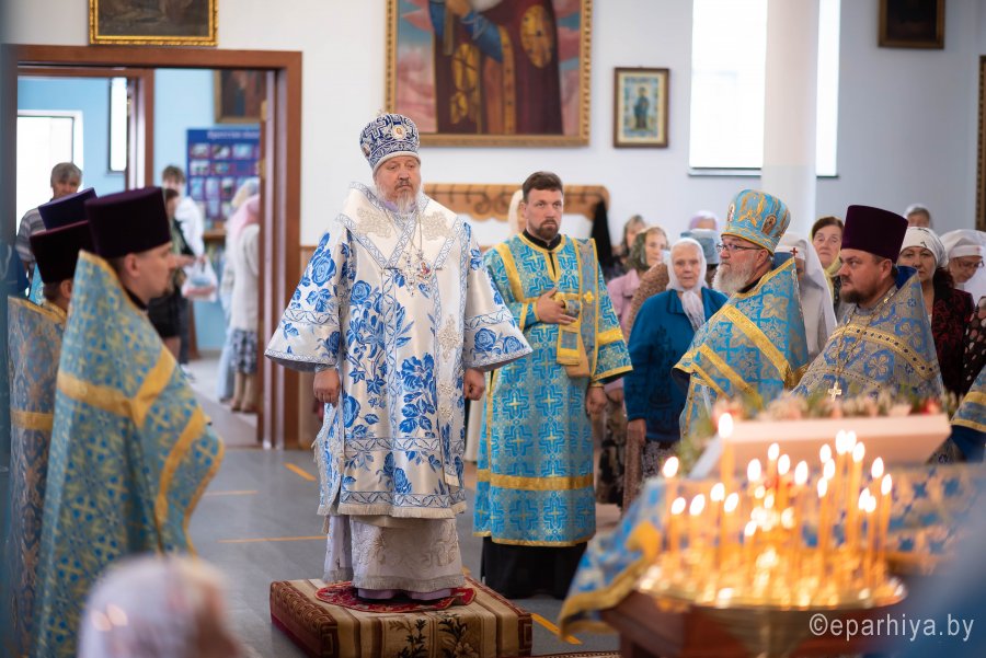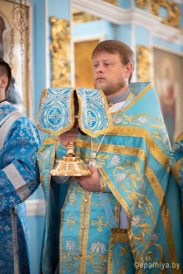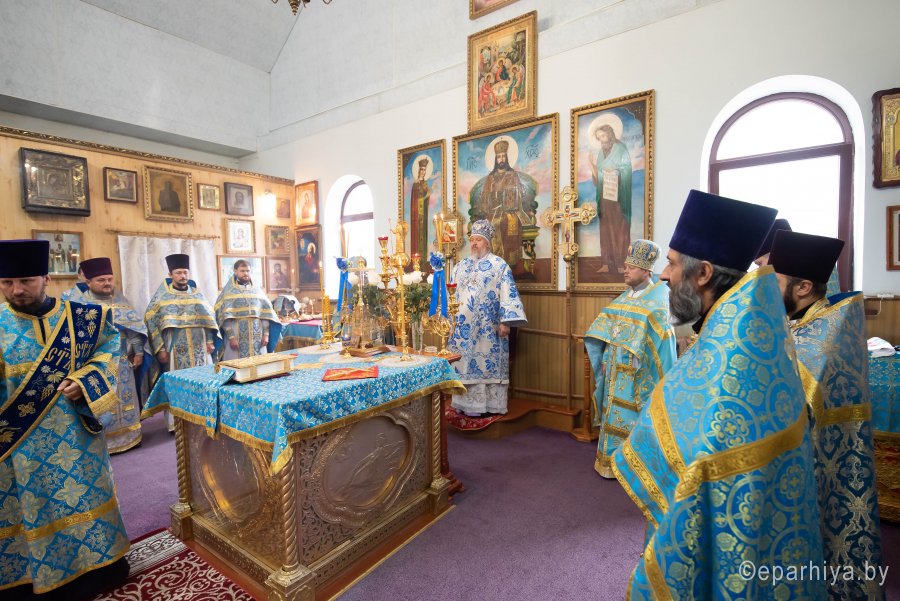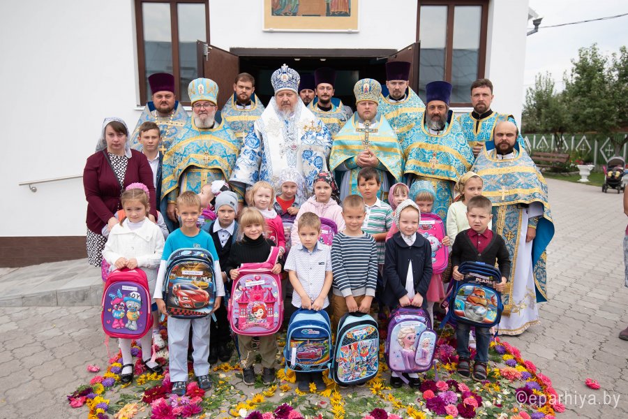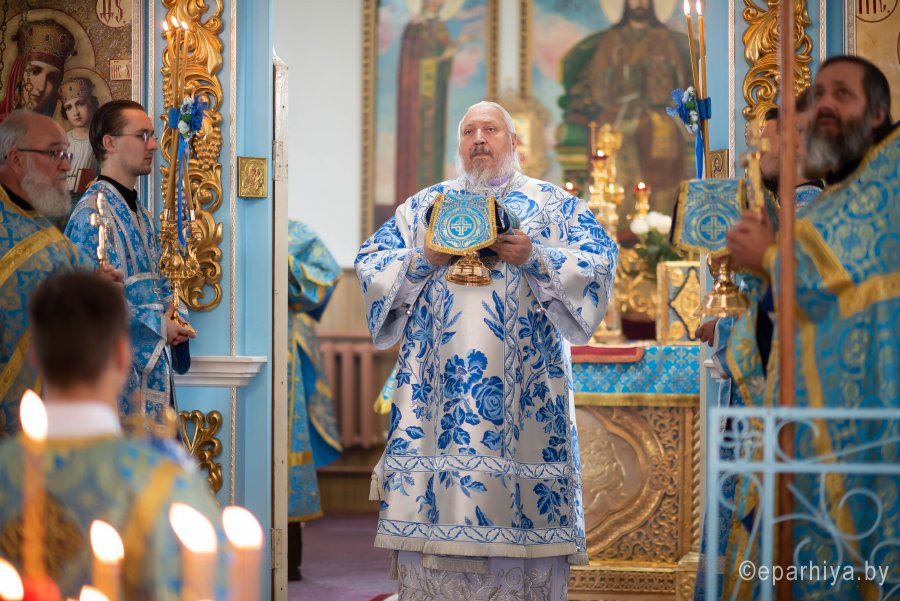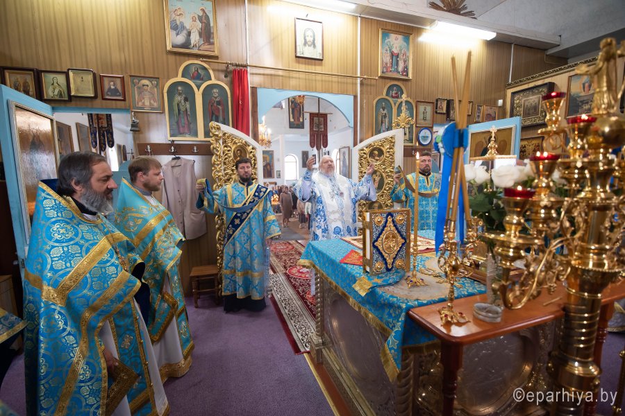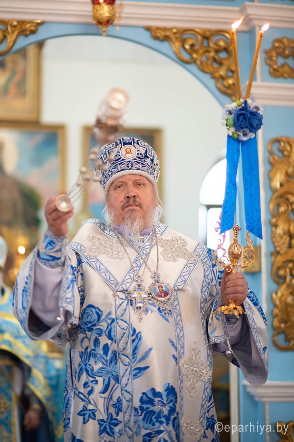 Пресвятая Богородица, как любящая мать, всегда помогает своим чадам. Потому и приходят к ней люди со своими бедами и скорбями, и не счесть сколько чудесных исцелений происходит по горячей молитве у ее святого Образа. Божественную литургию в праздник Толгской иконы Божией Матери в храме Покрова Пресвятой Богородицы в г. Речица 21 августа 2020г. возглавил Высокопреосвященнейший Стефан, архиепископ Гомельский и Жлобинский. Высокопреосвященнейшему сослужили: секретарь Гомельской епархии протоиерей Георгий Алампиев, благочинный Речицкого округа протоиерей Алексий Пешко, настоятель прихода протоиерей Николай Ефименко и духовенство епархии. В преддверии нового учебного года, в рамках ежегодной благотворительной акции «Собери портфель школьнику», проводимой Гомельской епархией, Владыка Стефан вручил маленьким прихожанам рюкзаки со школьными принадлежностями. Высокопреосвященнейший Стефан поздравил причастников с принятием Святых Христовых Таин и обратился к молящимся со словами Архипастырского назидания. Список икона божией Матери Толгская в храм Покрова Пресвятой Богородицы была передана из семьи певчей храма Матрены Подуст в восьмидесятых годах прошлого века. Семейное предание сохранило воспоминание о том, что в дом семьи пришел протоиерей Петр (Латушко) и, увидев икону, сказал, что ей надлежит быть в храме. Вскоре после этого она была передана в храм. История обретения чудотворной иконы уходит своими корнями в 1314 год. Святой образ был дарован небесами самым чудесным образом Ростовскому святителю Прохору (в схиме Трифону). Объезжая епархию, святитель отправился вниз по реке Волге и для ночевки была выбрана местность, где речка Толга впадает в Волгу. Когда стемнело, епископ увидел исходящий с неба столб огня. Он пошел к тому месту и увидел, что яркий свет исходит из образа Богородицы с Богомладенцем на руках. Епископ стал горячо молиться святому Лику и провел остаток ночи в молитвенном бдении. Вернувшись к месту стоянки, Прохор заметил, что его жезл остался на месте ночного молитвенного бдения. Когда слуги вернулись с места поиска, то принесли с собой нерукотворную икону Богородицы: она находилась рядом с жезлом. Святитель сразу же узнал на иконе образ Богоматери, который явился ему в видении. После горячей молитвы перед иконой на том месте была заложена церковь. |