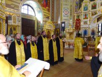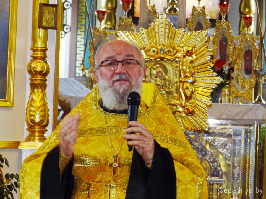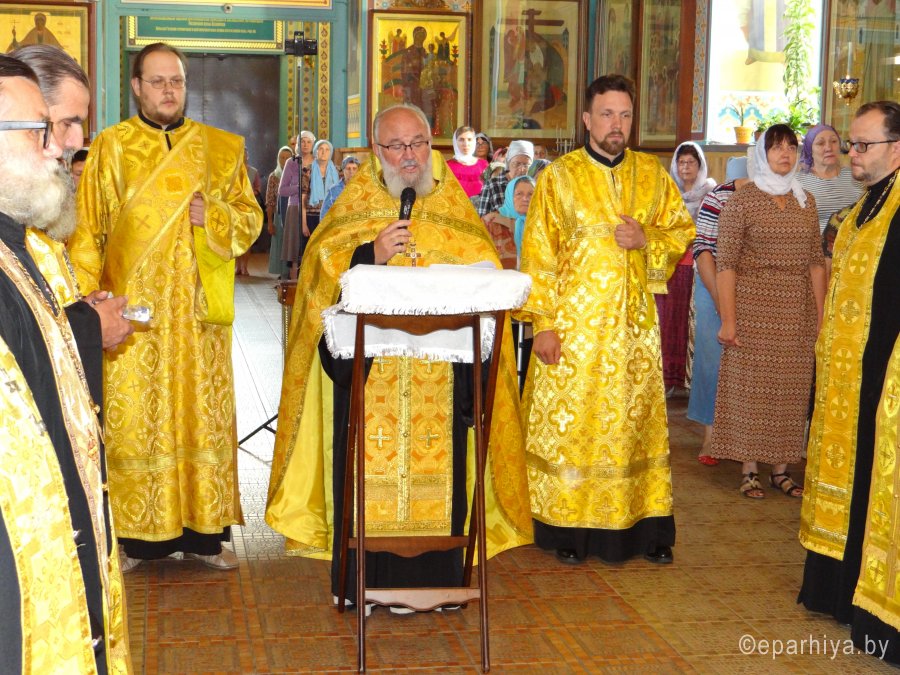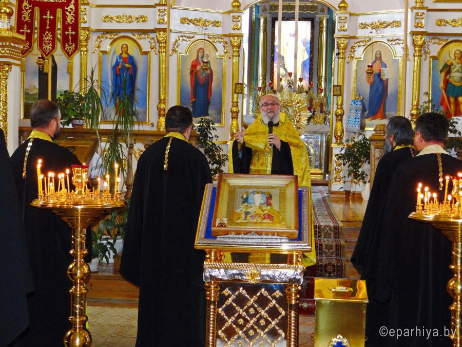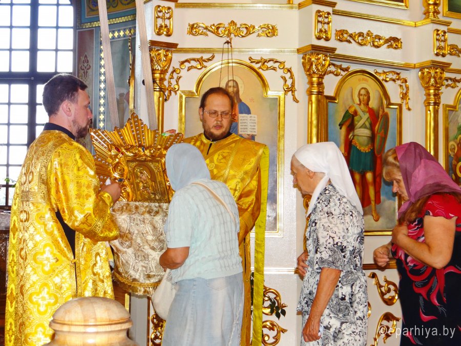 23 августа 2020г., по окончании вечернего богослужения, в Успенском соборе г.Речицы было совершено молебное пение о белорусском народе перед чудотворным образом Божией Матери «Умягчение злых сердец» и с опусканием для поклонения на иконостасе чудотворного образа иконы Божией Матери «Почаевская». Молебное пение возглавил благочинный Речицкого округа протоиерей Алексей Пешко в сослужении духовенства благочиния. После завершения молебна, протоиерей Алексей обратился ко всем присутствующим с назидательной проповедью о благом разрешении гражданского противостояния в белорусском государстве. |