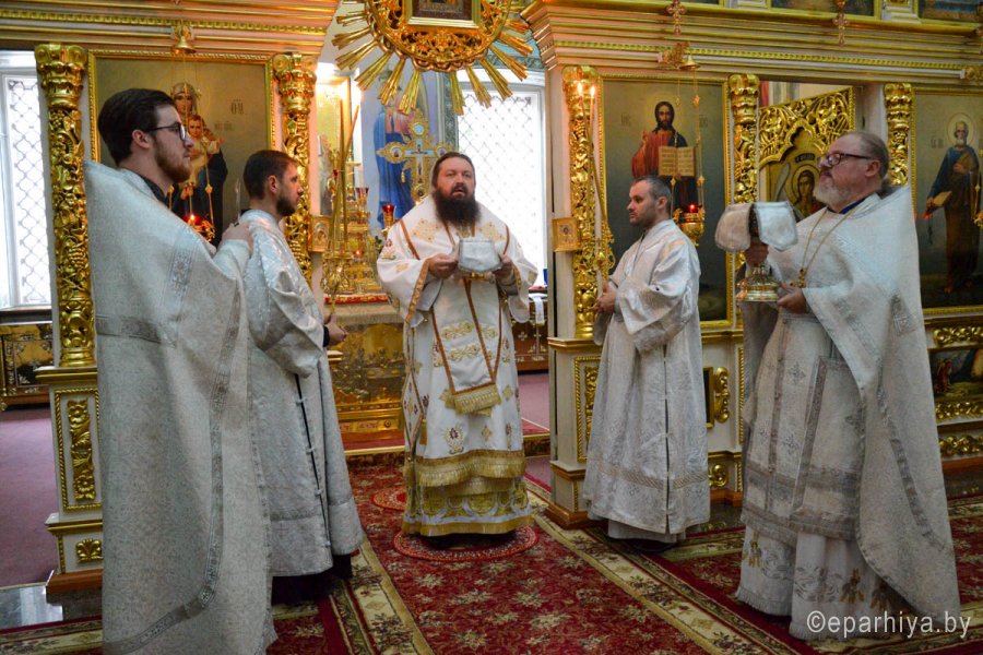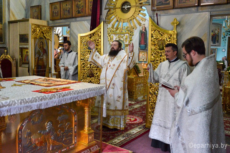 26 августа, в день отдания праздника Преображения Господня и день чествования иконы Божией Матери «Минская» (1500), епископ Светлогорский Амвросий, викарий Гомельской епархии, возглавил Божественную литургию в кафедральном соборе святых апостолов Петра и Павла. Его Преосвященству сослужили духовенство соборного храма. По сугубой ектении владыка Амвросий вознёс ко Господу молитвы о даровании мира и благополучия белорусскому народу, а по окончании богослужения епископ совершил краткий молебен у иконы Божией Матери «Минская». |