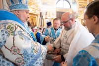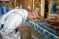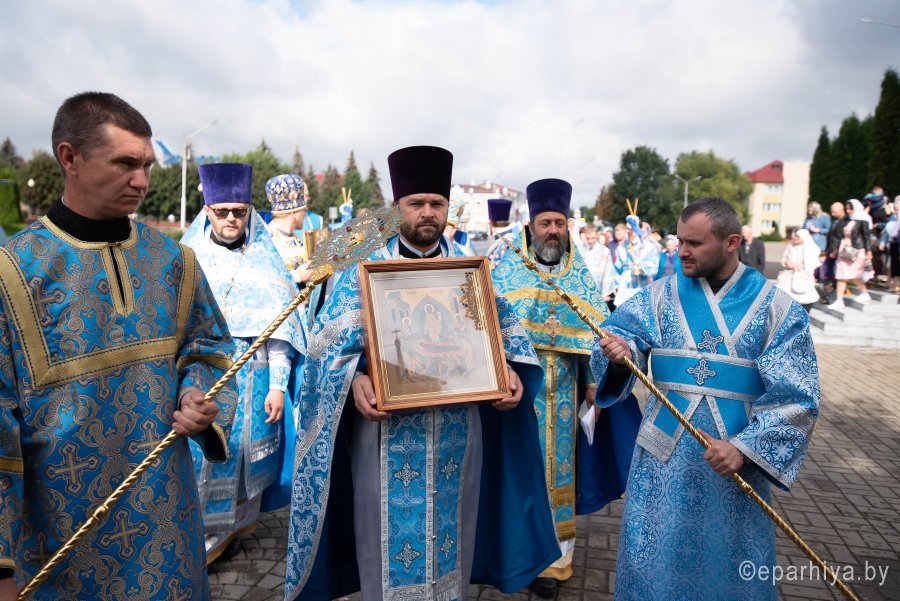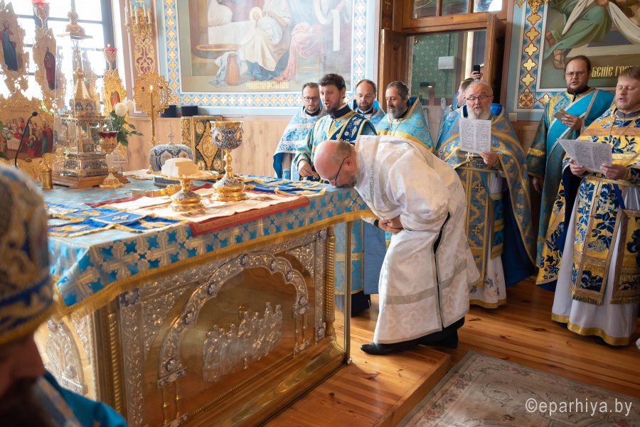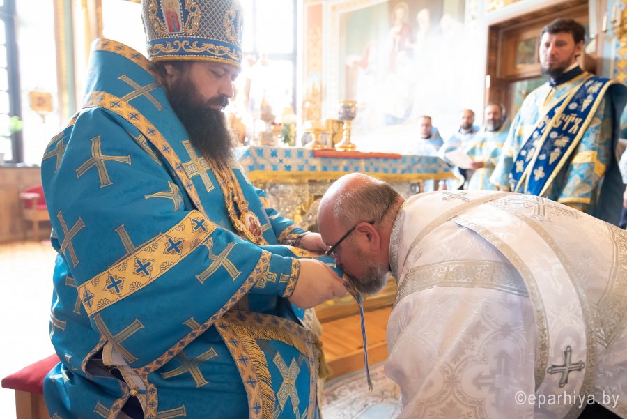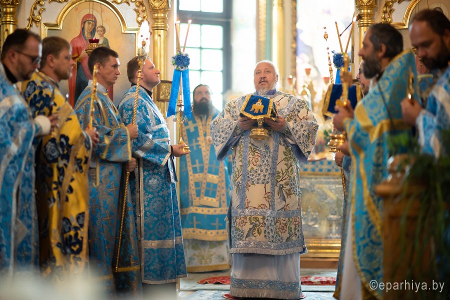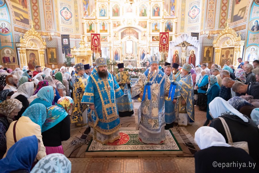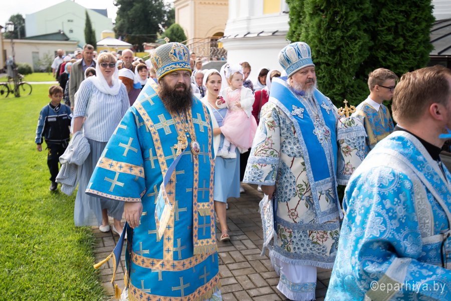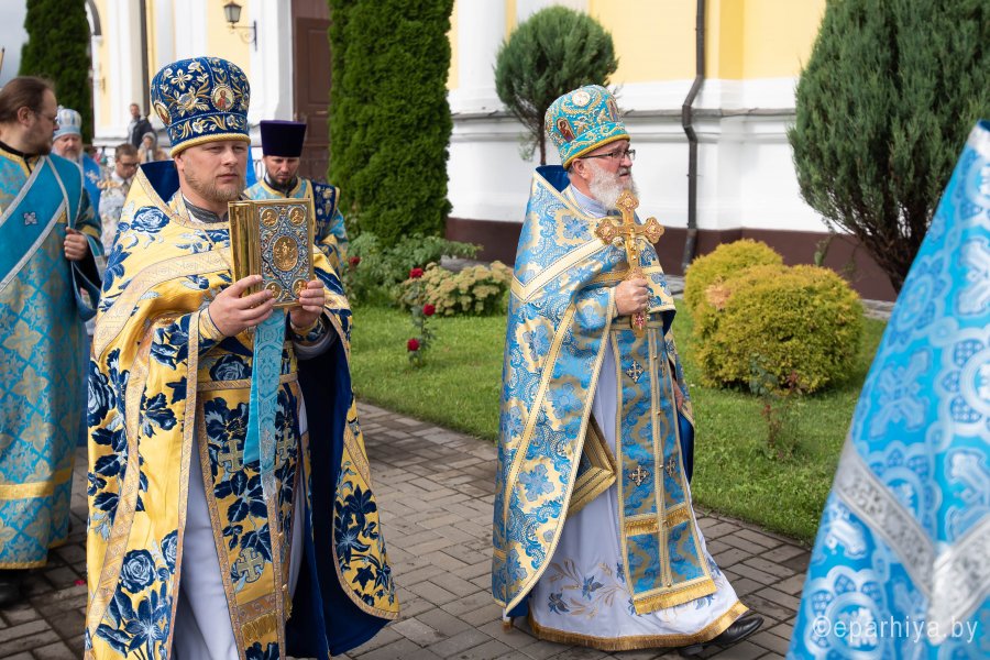 Один из главных православных праздников — Успение Пресвятой Богородицы — отмечают верующие 28 августа. Глядя на Плащаницу, которая полагается сегодня в центре храма, мы говорим, что Божия Матерь почила, уснула в этой временной жизни, чтобы проснуться в жизни вечной. Божественную литургию в Успенском соборе г.Речицы, в праздник Успения Пресвятой Владычицы нашей Богородицы и Приснодевы Марии возглавил высокопреосвященнейший Стефан, архиепископ Гомельский и Жлобинский в сослужении преосвященнейшего Амвросия, епископа Светлогорского, викария Гомельской епархии 28 августа 2020г. Архипастырям сослужили: секретарь Гомельской епархии протоиерей Георгий Алампиев, благочинный церквей Речистого округа протоиерей Алексей Пешко и духовенство епархии. За Божественной литургией по благословению высокопреосвященнейшего Стефана, архиепископа Гомельского и Жлобинского, преосвященный Амвросий совершил диаконскую хиротонию выпускника Витебской Духовной Семинарии Бондарь Эдуарда. По сугубой ектении были вознесены молитвы о даровании мира и благополучия белорусскому народу. По окончании богослужения Владыка поздравил причастников с принятием Святых Христовых Таин и обратился к молящимся со словами Архипастырского назидания. Завершилось Богослужение Крестным ходом и провозглашением Многолетий! |