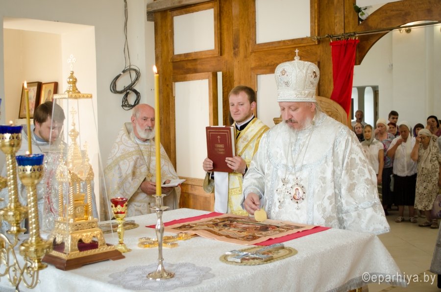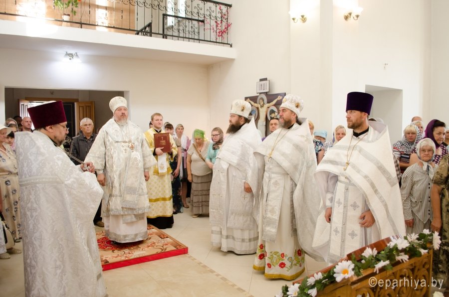 5 июля, в Неделю 5-ю по Пятидесятнице, епископ Гомельский и Жлобинский Стефан совершил чин освящения Престола храма в честь Грузинской иконы Божьей Матери, расположенного в 96-мкрн. г.Гомеля В храме владыка возглавил Божественную литургию. Его Преосвященству сослужили секретарь Гомельской епархии протоиерей Георгий Алампиев, благочинный монастырей Гомельской епархии архимандрит Амвросий (Шевцов), благочинный Гомельского округа протоиерей Стефан Гладыщук,благочинный Гомельского районного округа протоиерей Сергий Леоньков, настоятель храма и духовенство епархии. По окончании богослужения, владыка возглавил Крестный ход и обратился к собравшимся со святительским словом, архипастырь поздравил всех с освящением Престола и рассказал о духовном значении храма. Попечители храма были удостоены церковных наград. Справка: 20 августа 2009 года архиепископом Гомельским и Жлобинским Аристархом утвержден устав Прихода храма Грузинской иконы Божией Матери в г. Гомеле. 21 октября 2009 г. решением Гомельского областного исполнительного комитета зарегистрирована религиозная община. 10 сентября 2010 года архиепископ Аристарх благословил архитектурный проект храма в честь Грузинской иконы Божией Матери. В декабре 2011 г. Преосвященный Леонид, епископ Речицкий, викарий Гомельской епархии совершил чин закладки храма. В апреле 2012 года было начато строительство храма. |