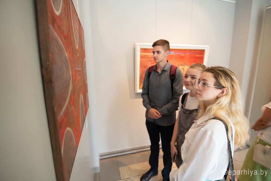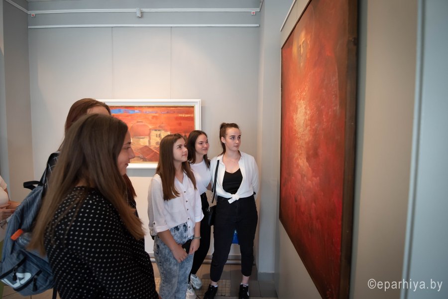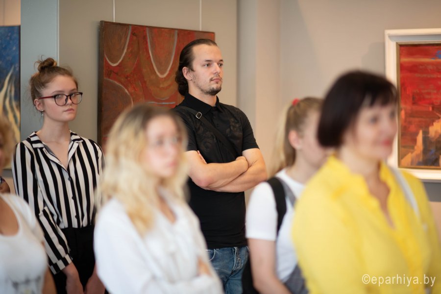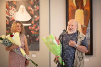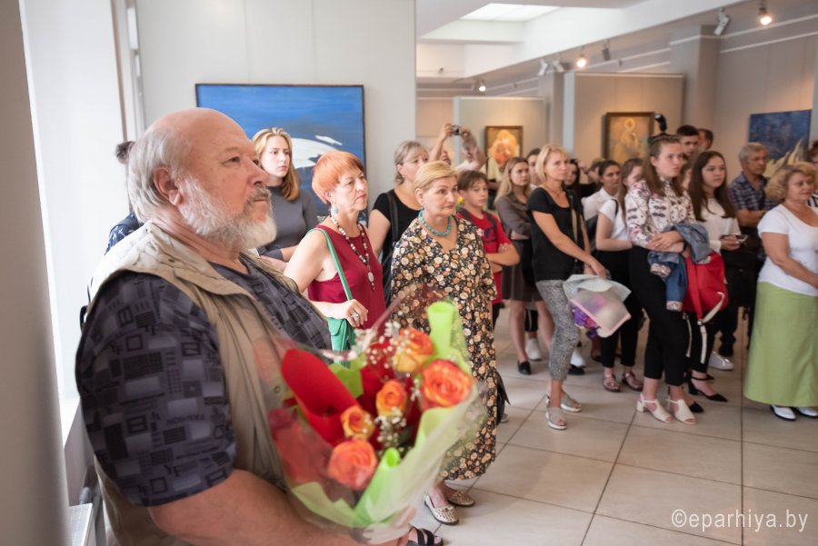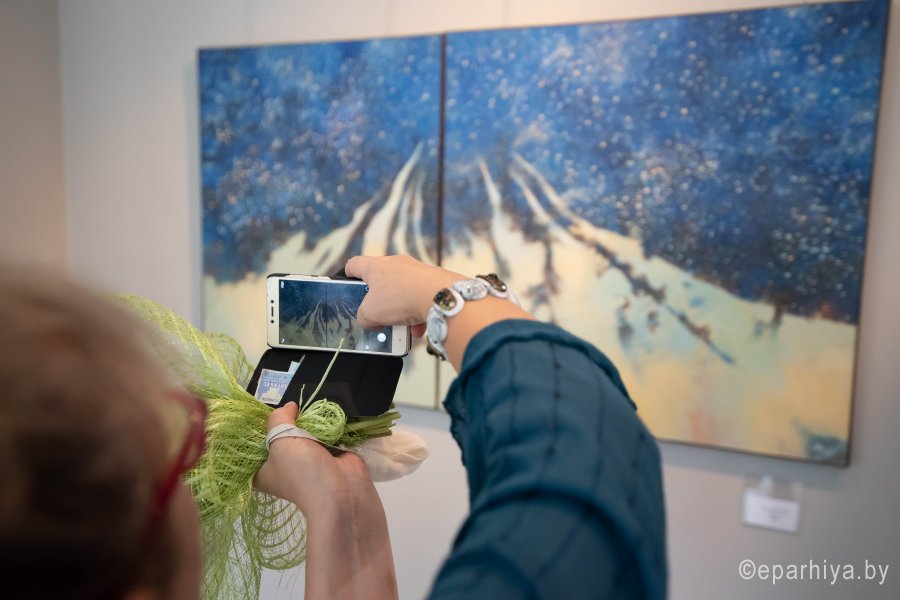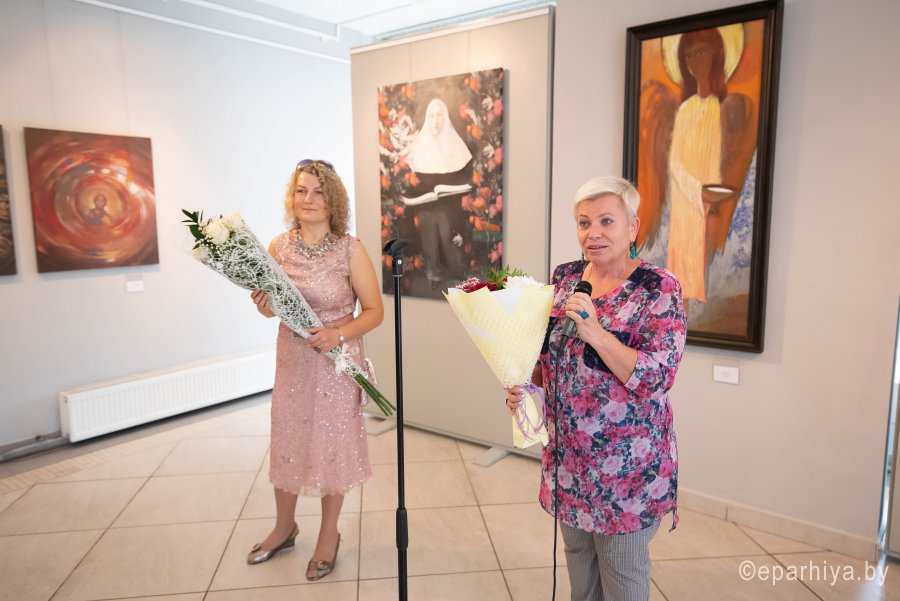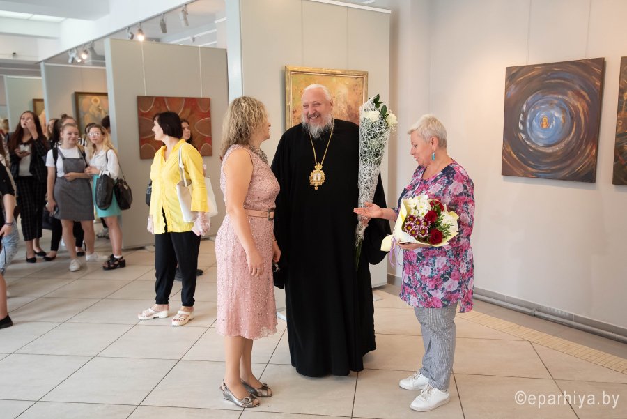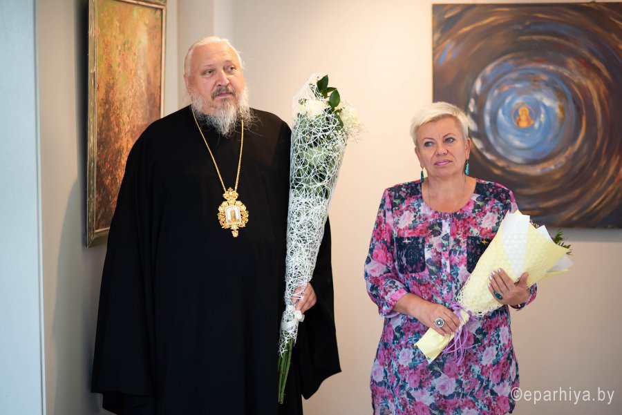 Высокопреосвященнейший Стефан, архиепископ Гомельский и Жлобинский, принял участие в открытии выставки Светланы Ноздрин-Плотницкой «Земля и небо», прошедшей 3 сентября 2020г. в Картинной галерее Г.Х.Ващенко. На выставке был впервые представлен портрет преподобной Манефы Гомельской, написанный по благословению владыки Стефана. Светлана Ноздрин-Плотницкая – член Белорусского Союза художников, член Совета Белорусского Союза дизайнеров. Закончила Минское художественное училище им. А.К. Глебова, украинский полиграфический институт им. Ивана Федорова. Участница республиканских, всесоюзных, зарубежных выставок. Автор ряда персональных выставок живописи. Составитель и дизайнер нескольких музейных экспозиций, а также полиграфических изданий и фотоальбомов о Гомеле. Живописные работы Светланы Ноздрин-Плотницкой находятся в Национальном художественном музее Республики Беларусь, фондах Министерства культуры Республики Беларусь, Гомельском дворцово-парковом ансамбле, в Hong Kong Heritage Museum, частных коллекциях. В юности Светлана зачитывалась произведениями русской классики, в том числе сочинениями великого русского писателя Фёдора Достоевского, творчество которого является глубоко христианским по своей сути. «Если мне докажут, — писал он, — что истина вне Христа, и что это действительно так, я лучше останусь со Христом, нежели с истиной». Воцерковление Светланы совпало с началом занятия живописью. От того, и первые работы художницы, и последние — отражают её авторское христианское мировоззрение. Поиски образного живописного языка привели к созданию картин «Ко Ангелу-хранителю» (1999), «Вербница» (2001), «Лобзание праведных» (2002), «Душа» (2012), «Течение жизни» (2013), «Свет Христов» (2014), «Пасха в Иерусалиме» (2014), «Переход» (2017) и многих других. В 2014 году у художницы родилась идея серии портретов «Будущие святые в земной жизни». Судьба великой княгини Елизаветы Фёдоровны, имя которой носит Свято-Елисаветинский монастырь в Минске – от блестящего брака в венценосном окружении до подвижничества и мученической смерти – обусловили появление двойного портрета-диалога на тёмно-красном бархате. Боль за людей, оказавшихся жертвами гражданской войны на Украине, вылилась в 2015 году в работу над картиной «Ангел воюющей страны». В 2017 году была написана небольшая работа «Епископ и его овечки», которая посвящена святому Спиридону Тримифунтскому. Удивительный местночтимый белорусский святой праведный Иоанн Кормянский написан на домотканом покрывале начала ХХ века, вытканном прабабушкой известного белорусского художника Сергея Тимохова, жившей также на Гомельщине в это же время. |