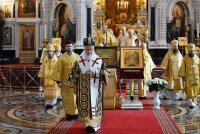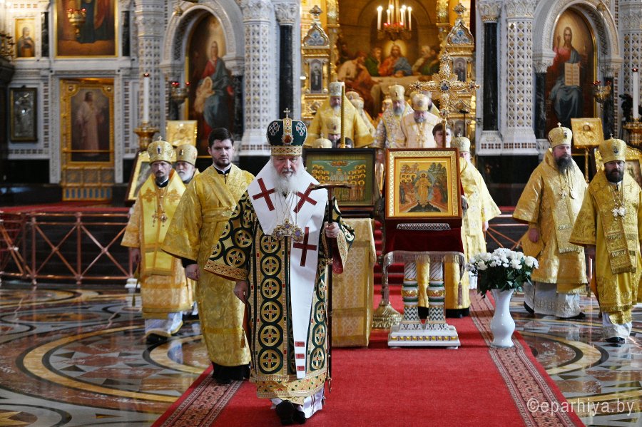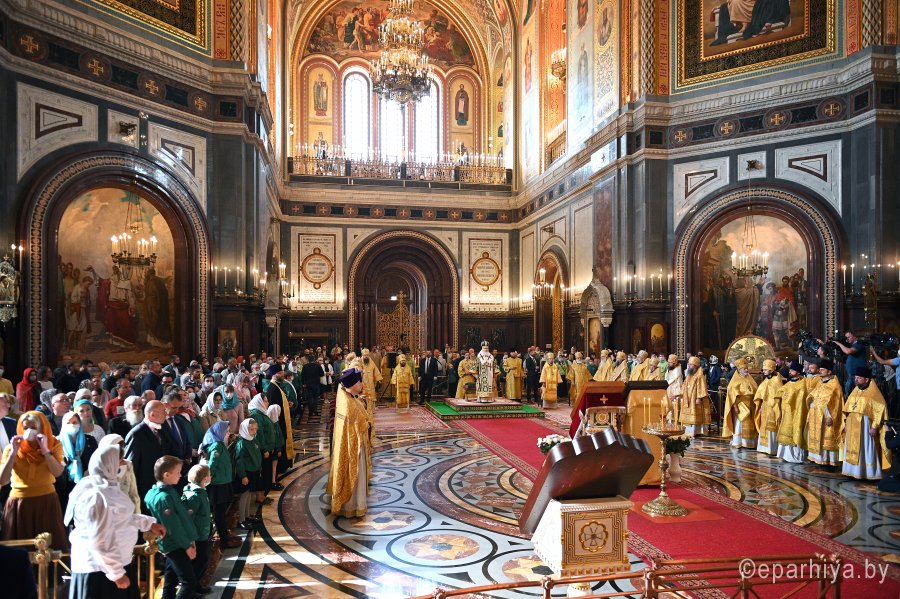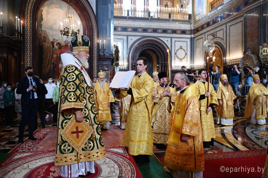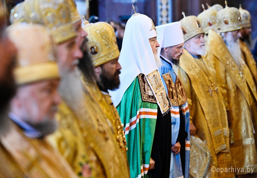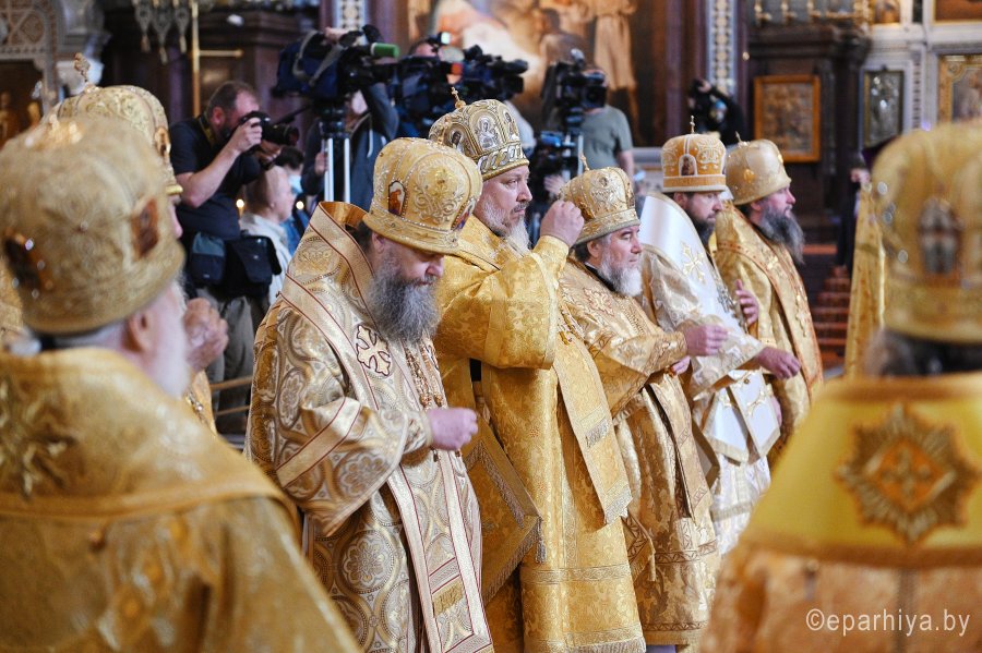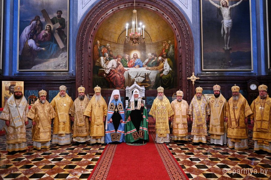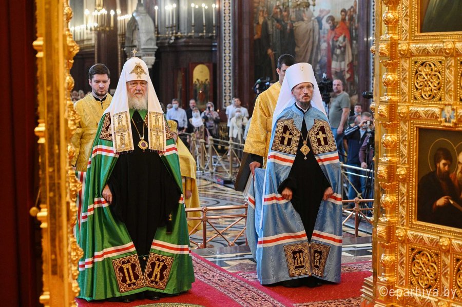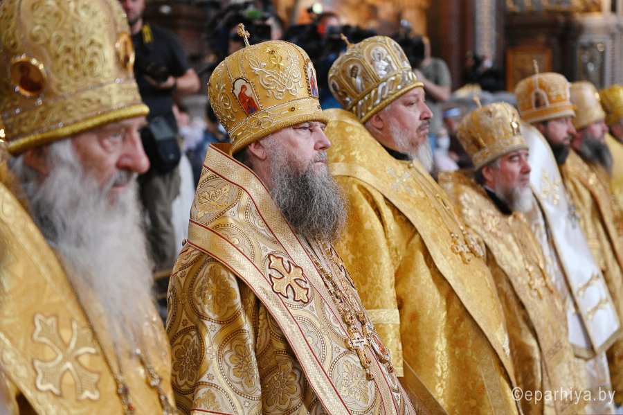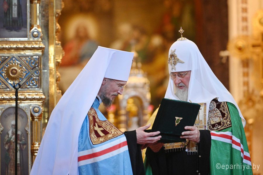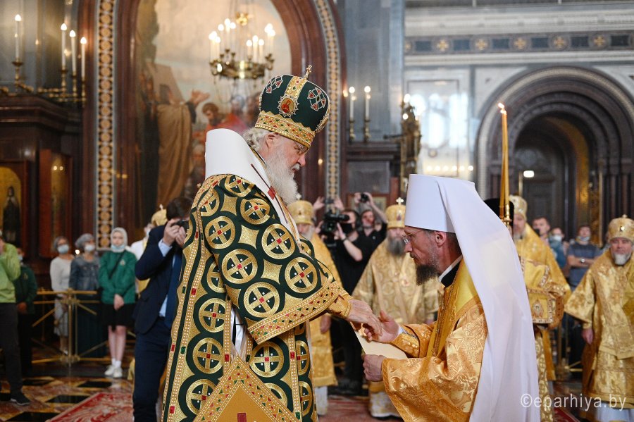 6 сентября 2020 года, в Неделю 13-ю по Пятидесятнице, Святейший Патриарх Московский и всея Руси Кирилл совершил Божественную литургию в кафедральном соборном Храме Христа Спасителя в Москве. Высокопреосвященнейший Стефан, архиепископ Гомельский и Жлобинский, а также все члены Священного Синода Белорусской Православной Церкви, священнослужители, монашествующие и миряне Белорусской Православной Церкви приняли участие в праздничном богослужении. На малом входе во исполнение постановления Священного Синода Русской Православной Церкви от 25 августа с.г. (журнал № 46) Святейший Патриарх Кирилл совершил чин возведения в сан митрополита Преосвященного Вениамина, избранного митрополитом Минским и Заславским, Патриаршим экзархом всея Беларуси. Предстоятель Русской Православной Церкви огласил указ: «Его Преосвященству, Преосвященнейшему Вениамину, епископу Минскому и Заславскому, Патриаршему экзарху всея Беларуси В связи с назначением Вас Патриаршим экзархом всея Беларуси (определение Священного Синода Русской Православной Церкви от 25 августа 2020 года, журнал № 46) Вы возводитесь в сан митрополита и удостаиваетесь права ношения второй панагии в пределах Белорусской Православной Церкви». По окончании Литургии со словом к участникам богослужения обратился митрополит Минский Вениамин, который, в частности, сказал: «Ваше Святейшество, милостивый Отец, дорогие собратья-архиереи, дорогие братья и сестры! В этот волнительный и вместе с тем торжественный момент моей жизни я с благодарностью обращаюсь к Вам, Ваше Святейшество, и Синоду Русской Православной Церкви, который определил мне столь ответственное и сложное служение. Непросто было мне осмыслить в эти дни такой нежданный поворот в моей жизни, и находил я для себя ответы на возникающие вопросы, мысли и чувства в слове Священного Писания, в истории Матери-Церкви. "Кто я малый из малейших из братьев моих" (Пс. 151:1), можно сказать за пророком Давидом, возведенный на высочайшую степень священнического служения? Сознаю, что и высокое это служение, и ответственное, сознаю, что слова, некогда обращенные Господом нашим к апостолу Петру: "Любишь ли Мя" и призыв "паси овца Моя" (Ин. 21:15) относятся и ко мне. Много других мыслей и чувств наполняют мое сердце, и сознаю, что невозможно понести свое служение без поддержки и, прежде всего, молитвенной поддержки Вашего Святейшества, собратий, всех жителей Белоруссии, всех, кто молится в других странах и народах. Переживаю ныне за родную мне Беларусь и ныне, подражая отроку Самуилу, говорю: "Вот я, Господи, говори, ибо слушает раб Твой" (1 Цар. 3:10)». Митрополит Вениамин рассказал о праздновании в этом году 500-летия основания Жировичского монастыря и 550-летия явления Жировичского образа Божией Матери и от всей полноты Белорусской Православной Церкви преподнес Его Святейшеству точный список Жировичской иконы. Святейший Патриарх Кирилл обратился со словом к митрополиту Вениамину. «Радуюсь тому, что жребий избрания на Минскую митрополичью кафедру пришелся на Вас, — сказал, в частности, Святейший Владыка. — И радуюсь, что Вы были избраны на заседании Священного Синода Русской Православной Церкви единогласно, что не было никого, кто бы сказал: "Давайте повременим" или "Давайте подумаем, может, есть кто-то другой, кто справится не хуже"». «Единомыслие Священного С