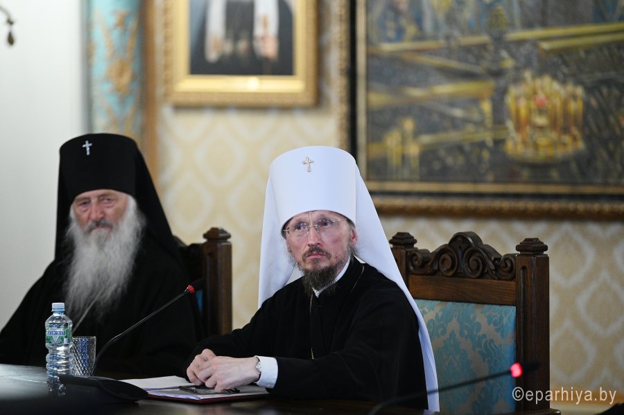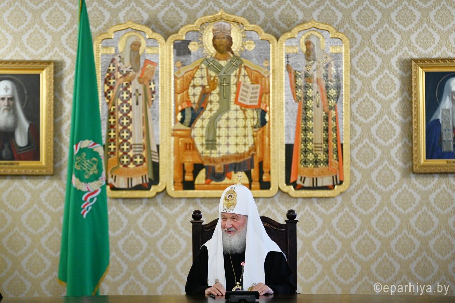 6 сентября 2020 года в зале Высшего Церковного Совета кафедрального соборного Храма Христа Спасителя в Москве состоялась встреча Святейшего Патриарха Московского и всея Руси Кирилла с архиереями Белорусской Православной Церкви, участвовавшими в Патриаршем богослужении, за которым был возведен в сан митрополита Преосвященный Вениамин, избранный митрополитом Минским и Заславским, Патриаршим экзархом всея Беларуси. Во встрече участвовали: Патриарший экзарх всея Беларуси митрополит Минский и Заславский Вениамин; архиепископ Витебский и Оршанский Димитрий; архиепископ Пинский и Лунинецкий Стефан; архиепископ Гродненский и Волковысский Артемий; архиепископ Новогрудский и Слонимский Гурий; архиепископ Брестский и Кобринский Иоанн; архиепископ Гомельский и Жлобинский Стефан; епископ Бобруйский и Быховский Серафим; епископ Туровский и Мозырский Леонид; епископ Молодечненский и Столбцовский Павел; епископ Лидский и Сморгонский Порфирий; епископ Полоцкий и Глубокский Игнатий. Также в беседе участвовал управляющий делами Московской Патриархии, первый викарий Патриарха Московского и всея Руси по г. Москве митрополит Воскресенский Дионисий. Обращаясь к собравшимся, Святейший Патриарх Московский и всея Руси Кирилл сказал: «Дорогие владыки, еще раз сердечно вас приветствую! Мы встречаемся в зале Высшего Церковного Совета, и я очень рад, что сегодня на местах членов Совета — епископат нашей Церкви в Белоруссии. Конечно, и день особый — мы ввели в должность и облачили в митрополичьи ризы владыку Вениамина, который избран Священным Синодом к возглавлению Белорусского экзархата, Белорусской Православной Церкви. Когда тебя ставят во главе паствы, паства становится твоим народом, а ты — отцом, и все национальные разделения уходят. Однако сейчас национальный фактор в Белоруссии обретает все бόльшую роль, и потому мы пришли к выводу, что сегодня во главе Белорусской Церкви должен быть человек, родившийся в Белоруссии, знающий белорусский язык, воспитанный в белорусской среде. Чтобы даже те, кто стремится увидеть в нашей Церкви нечто инородное по отношению к Белоруссии, белорусской культуре, белорусской жизни, видели в Предстоятеле Белорусской Церкви, главе Экзархата плоть от плоти, кость от костей своего народа. Очень надеюсь, владыка, и мы будем молиться, что Вы своим служением еще более сплотите епископат и духовенство. Конечно, в Белоруссии нет тех опасных процессов, которые привели к страшному разделению Украины. Враг рода человеческого посмеялся над благочестием украинского народа, и мы видим, что религия стала фактором не объединения, а разделения людей. Самое тяжелое разделение на теле украинского народа — это разделение церковное, которое порождает все последующие. Конечно, очень важно, чтобы ничего подобного не было в Беларуси, и поэтому я призываю всех вас, дорогие владыки, поддерживать владыку митрополита, быть единомысленными, служить своему народу, обязательно работать с молодежью. Церковь должна быть открытой к людям, в том числе к молодежи. Плохо, когда создается впечатление, что Православная Церковь — это клуб пожилых женщин, которым больше пятидесяти. Некоторые хотят представить нашу Церковь именно такой, но ведь это совсем не так! На самом деле Церковь Православная — это духовная сила нашего народа, и люди э