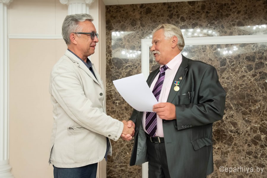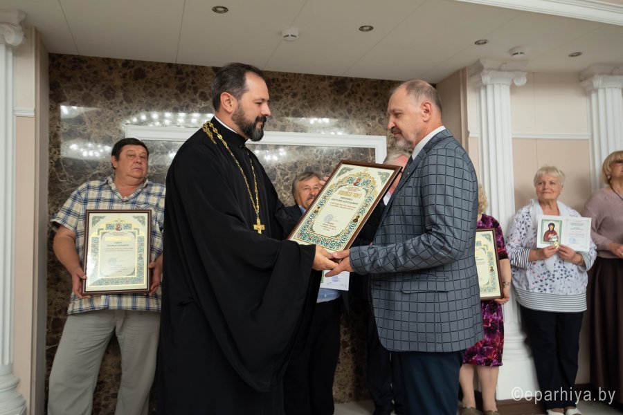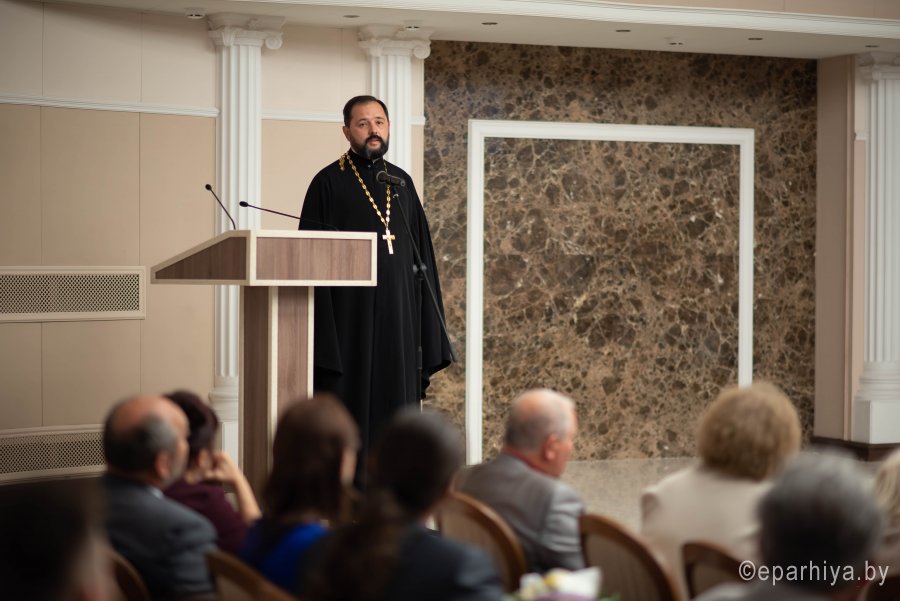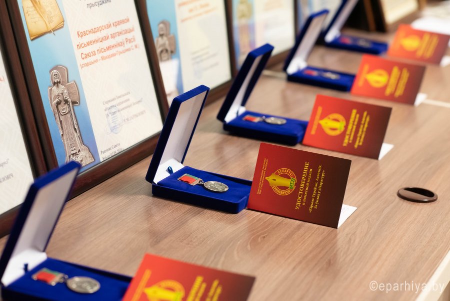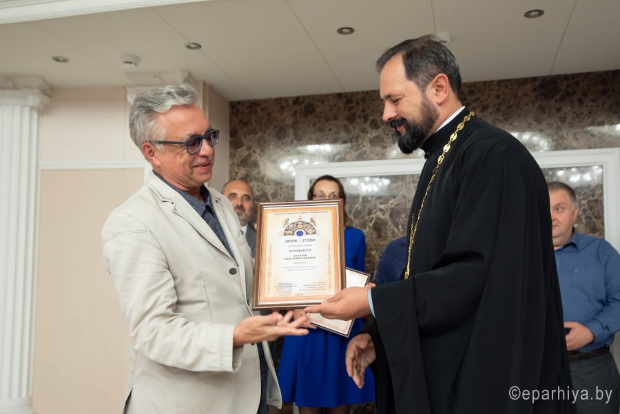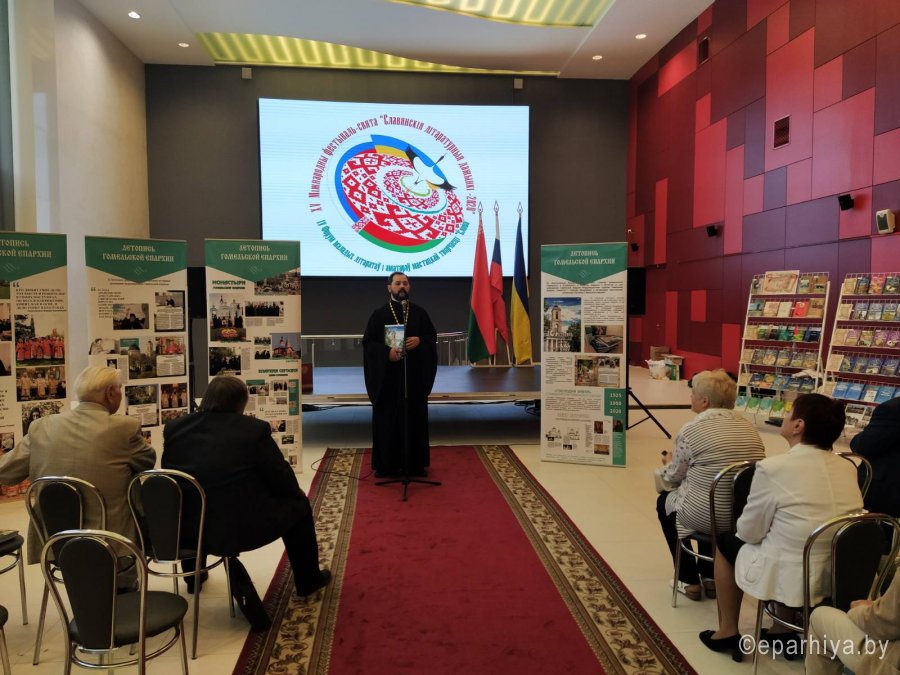 Ежегодно Гомельская область встречает участников фестиваля «Славянские литературные дожинки», которому в 2020 году исполнилось 15 лет. Фестиваль объединяет писателей и мастеров искусств Беларуси, России и Украины с целью популяризации традиций национальной культуры и печатного слова, привлечения внимания к белорусской литературе и обмена опытом с зарубежными коллегами. 10 сентября 2020 года Гомельский областной общественно-культурный центр встретил гостей XV Международного фестиваля-праздника “Славянские литературные дожинки 2020” В рамках фестиваля по благословению Высокопреосвященнейшего Стефана, архиепископа Гомельского и Жлобинского прошла презентация «Летописи Гомельской епархии», посвященной 95-летию создания и 30-летию со дня возрождения Гомельской епархии. Председатель отдела религиозного образования и катехизации протоиерей Артемий Кривицкий ознакомил всех присутствующих с уникальным изданием, предоставив возможность поближе познакомиться как с прошлым, так и с настоящим, узнать историю епархии от ее создания и до наших дней. У участников презентации была возможность одними из первых приобрести уникальное издание. На торжественном собрании, посвященном 15-летию Гомельского областного отделения ОО «Союз писателей Беларуси», 15-летию фестивального литературного движения на Гомельщине присутствовали руководители области и города Гомеля, представители Гомельской епархии, делегации Союза писателей Беларуси, России, Украины, а также гости фестиваля. Словами приветствия открыл фестиваль заместитель председателя областного исполнительного комитета Привалов В.А. Владимир Александрович вручил дипломы победителей Литературной премии Кирилла Туровского 2020. С приветственным словом к собравшимся обратился Владимир Николаевич Гаврилович - председатель Гомельского областного отделения ОО «Союз писателей Беларуси». Председатель отдела религиозного образования и катехизации Гомельской епархии протоиерей Артемий Кривицкий от имени Высокопреосвященнейшего Стефана, архиепископа Гомельского и Жлобинского, вручил медали святого праведного Иоанна Кормянского и преподобной Манефы Гомельской, а также архиерейские грамоты за значительный личный вклад в популяризацию художественной и православной книги и воспитание подрастающего поколения всем особо потрудившимся. В ходе мероприятия протоиерей Артемий Кривицкий вручил дипломы и памятные подарки победителям конкурса «Православие — моя надежда!», организованного Гомельской епархией совместно с Гомельским областным отделением ОО «Союз писателей Беларуси». В номинации «Поэзия» диплом первой степени получила Долбикова Лидия Дмитриевна, второй степени – Фисюк Зинаида Михайловна, третьей степени – Никитина Нина Никифоровна. В номинации «Проза» первого места был удостоен Ананьев Олег Валентинович, второе место досталось Бахонко Александру Алексеевичу, диплом третьей степени – Никитиной Наталье Васильевне. В номинации «Публицистика» первое место присуждено Шуканову Николаю Васильевичу, второе – Галицкой Майе Александровне, третье место – Белоножно Евгении Юрьевне. В номинации «Детская литература» диплом второй степени был вручен Тарасевич Светлане Анатольевне, диплом третьей степени – Белику Александру Николаевичу. Для участников мероприятия