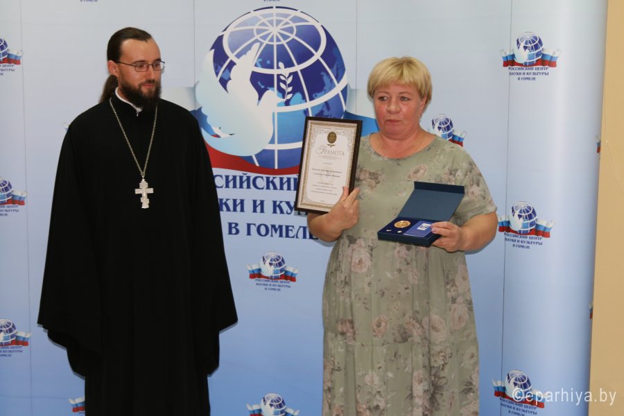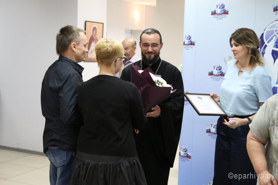 11 сентября в Российском центре науки и культуры г.Гомеля прошло праздничное мероприятие, посвященное памяти преподобных святых супругов Петра и Февронии Муромских. По благословению архиепископа Гомельского и Жлобинского Стефана праздник посетил клирик храма святого Архангела Михаила в г.Гомеле иерей Станислав Смоляк. На мероприятии состоялось открытие выставки репродукций «Житие святых супругов Петра и Февронии Муромских», а также концерт в исполнении фольклорного коллектива «Славянская песня». Однако основным моментом мероприятия было чествование семейных пар, проживших более 25 лет вместе и достойно воспитавших детей и внуков. По словам организаторов в Гомеле семьи награждают уже четыре года. За это время медали вручили 29 семейным парам. |