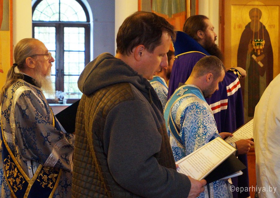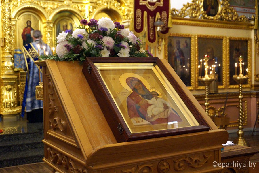 В среду вечером 23 сентября епископ Светлогорский Амвросий, викарий Гомельской епархии, совершил вечернее богослужение с чтением акафиста Пресвятой Богородице перед Ее иконой «Козельщанская» в Никольском мужском монастыре города Гомеля. Его Преосвященству сослужила братия Никольской обители в священном сане. Традиция акафистного пения в среду перед святым образом Божией Матери утвердилась в обители много лет назад и прерывается исключительно для служения праздников церковного календаря. Пресс-служба Никольского монастыря |