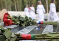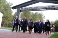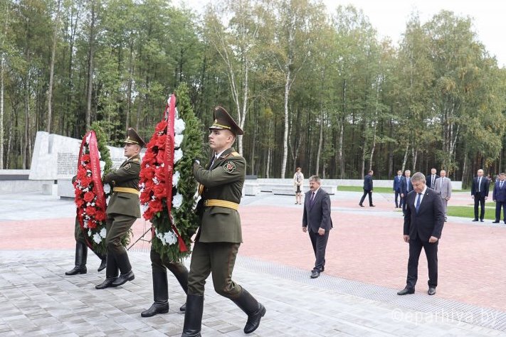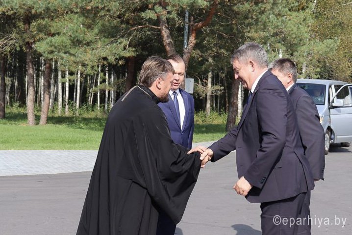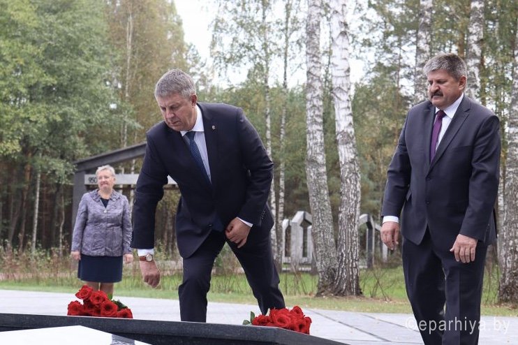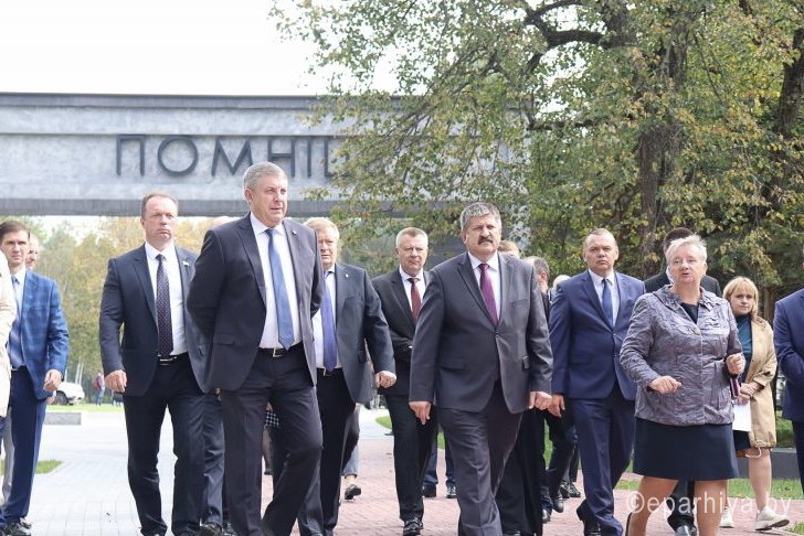 В рамках VII Форума регионов Беларуси и России 29 сентября 2020г. благочинный Светлогорского округа протоиерей Александр Кисель в составе официальной делегации принял участие в посещении мемориального комплекса «Ола». Священнослужитель во главе с губернатором Брянской области России Александром Богомазом, председателем Гомельского облисполкома Геннадием Соловьем и председателем Светлогорского райисполкома Дмитрием Алейниковым возложили венки и цветы к центральному монументу комплекса и на могиле погибших воинов-освободителей, почтили память жертв войны минутой молчания и зажгли свечи в часовне. В свою очередь губернатор Брянской области отметил, что между двумя граничащими регионами существует давняя дружба, их связывают общая история, общее наследие: «Самое важное — это не забывать наши общие корни, историю, общие ратные подвиги наших предков и воспитывать на них молодежь». |