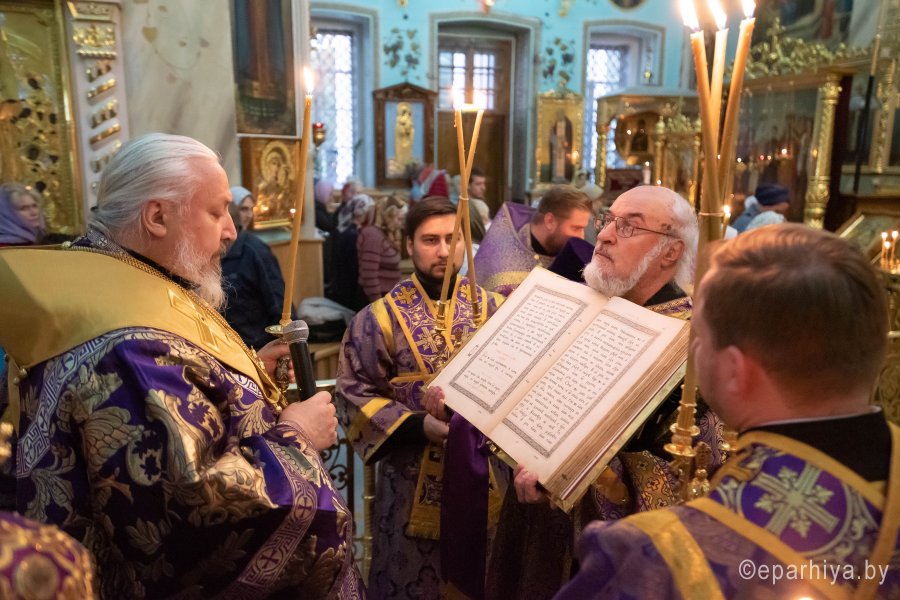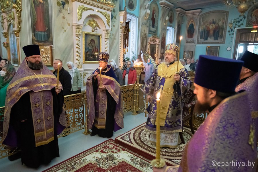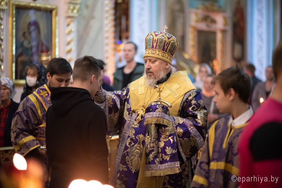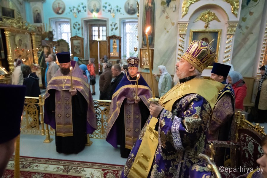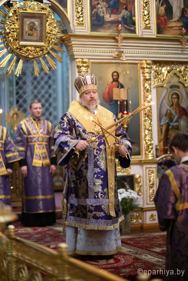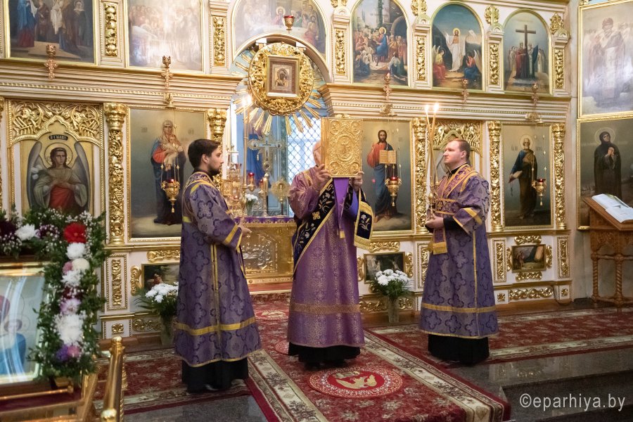 Всенощное бдение в Петро-Павловском кафедральном соборе г.Гомеля 3 октября 2020г. в канун отдания праздника Воздвижения Животворящего Креста Господня совершил Высокопреосвященнейший Стефан, архиепископ Гомельский и Жлобинский. Высокопреосвященнейшему сослужили: секретарь Гомельской епархии протоиерей Георгий Алампиев и духовенство собора. По окончании богослужения владыка Стефан обратился к молящимся со словами архипастырского назидания. |