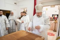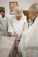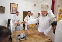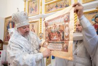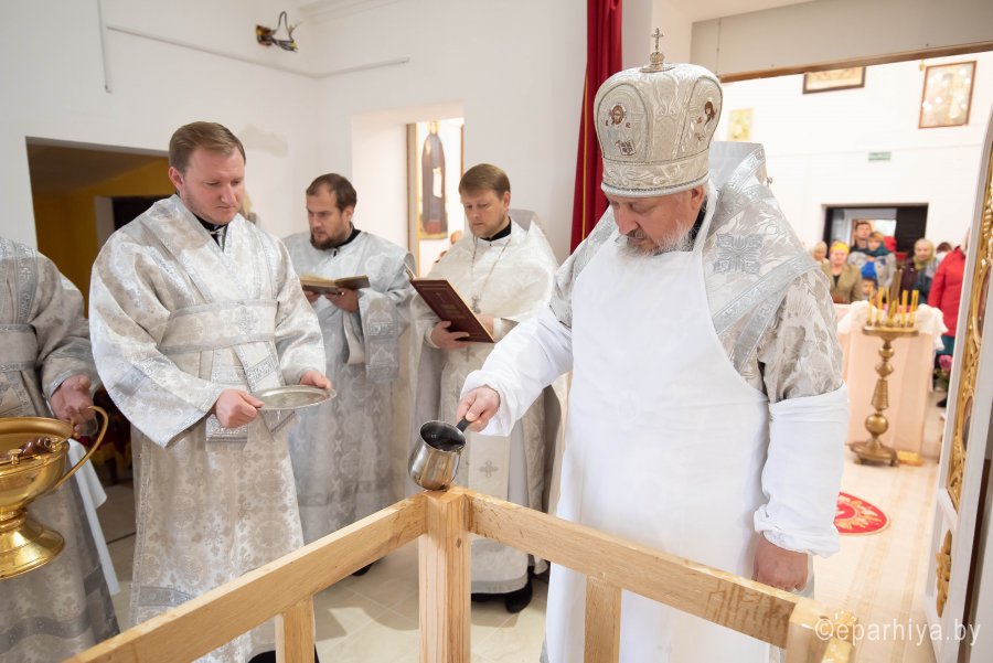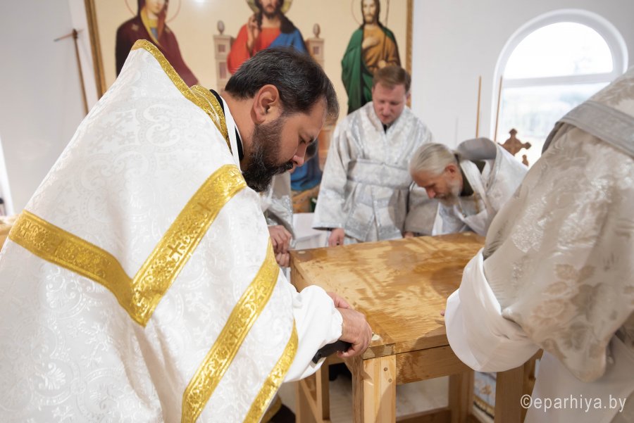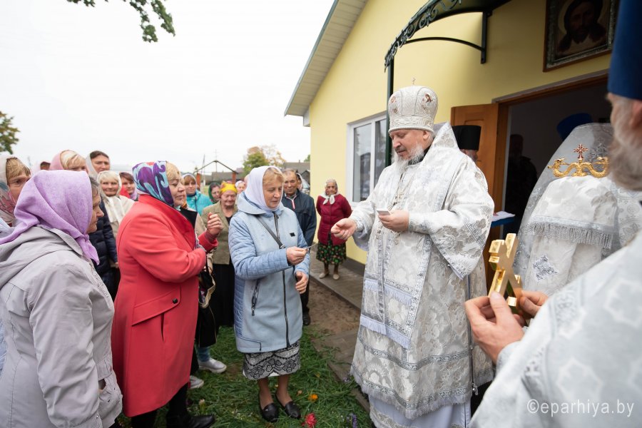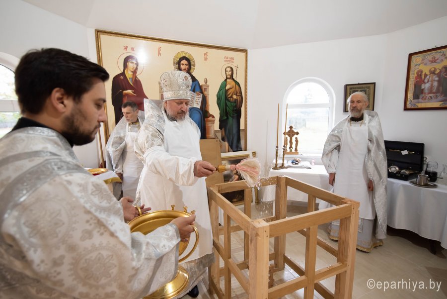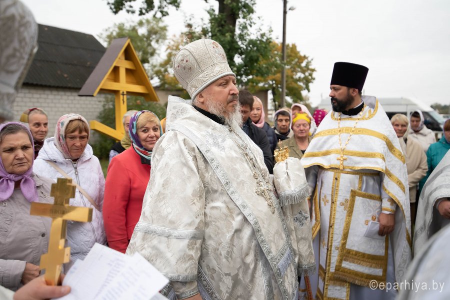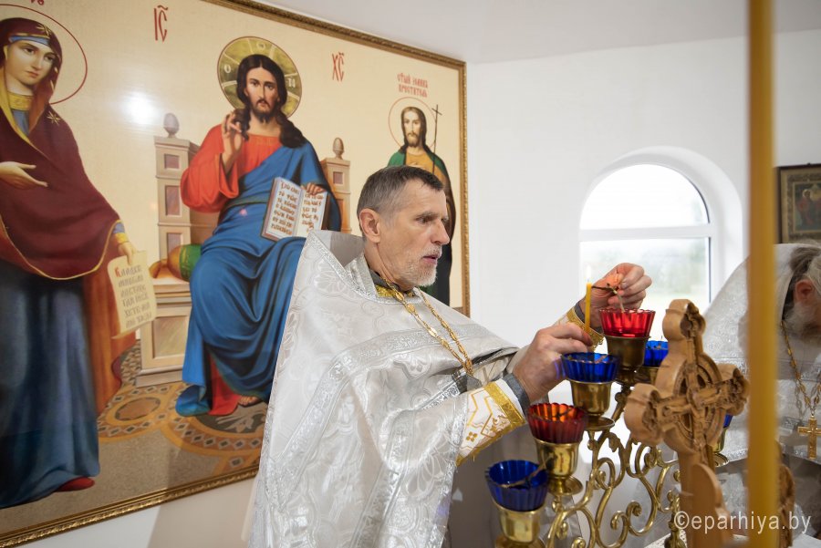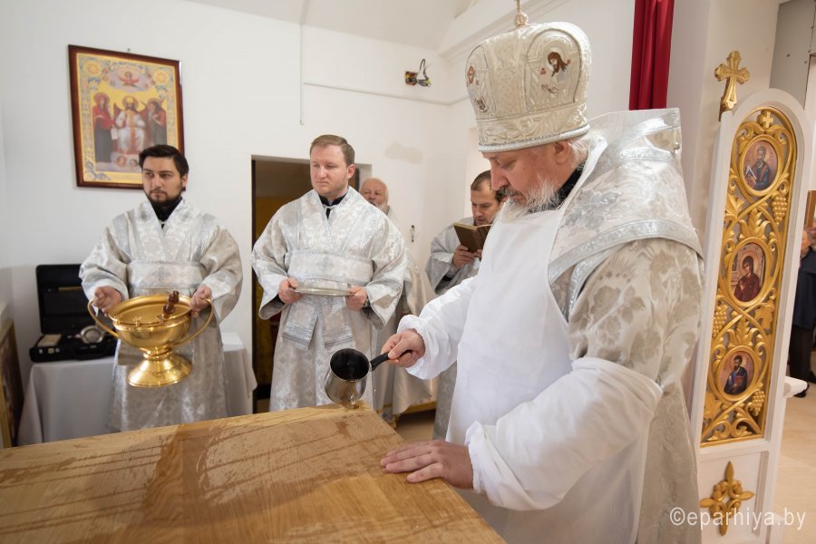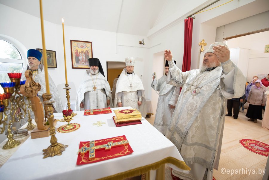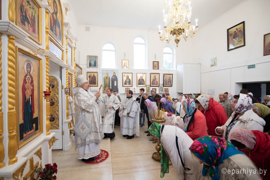 Чин освящения храма Вознесения Господня д.Рудня Маримонова и Божественную литургию в день памяти преставление апостола и евангелиста Иоанна Богослова 9 октября 2020г. совершил Высокопреосвященнейший Стефан, архиепископ Гомельский и Жлобинский. Высокопреосвященнейшему сослужили: секретарь Гомельской епархии протоиерей Георгий Алампиев, благочинный Гомельского районного округа протоиерей Артемий Кривицкий, настоятель прихода протоиерей Петр Слепенок и духовенство епархии. Во время Литургии были вознесены сугубые молитвенные прошения о даровании мира белорусскому народу и прекращении распространения вредоносного поветрия. По завершении богослужения Высокопреосвященнейший Стефан обратился к прихожанам со словами архипастырского назидания и рассказал об антиминсе – неотъемлемой части церковных служб, без которого не совершается ни одна Литургия. Антиминс – это прямоугольный матерчатый плат из шелка или льна (гладкой ткани, на которой легко подбирать частички Тела Христового или проскомидийных частичек). Сам антиминс представляет собой вышитую икону положения Спасителя во гроб, т. е. образ Тела и Крови Христовых, а на верхней стороне вшиты частицы святых мощей. Во время служения Литургии верных и основной ее части – Евхаристическом каноне, на котором происходит пресуществление Святых Даров, антиминс открыт. Фактически на нем и происходит великое Таинство Евхаристии. Он закрывается перед окончанием Божественной литургии, когда священник от лица всех верующих благодарит Господа за то, что Всевышний сподобил людей причастия святых Христовых Таин. По окончании богослужения владыка Стефан возглавил Крестный ход, поздравил причастников с принятием Святых Христовых Таин, преподал всем архипастырское благословение и в память об общей молитве раздал всем присутствующим иконки.