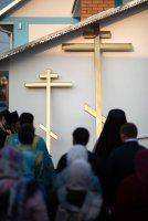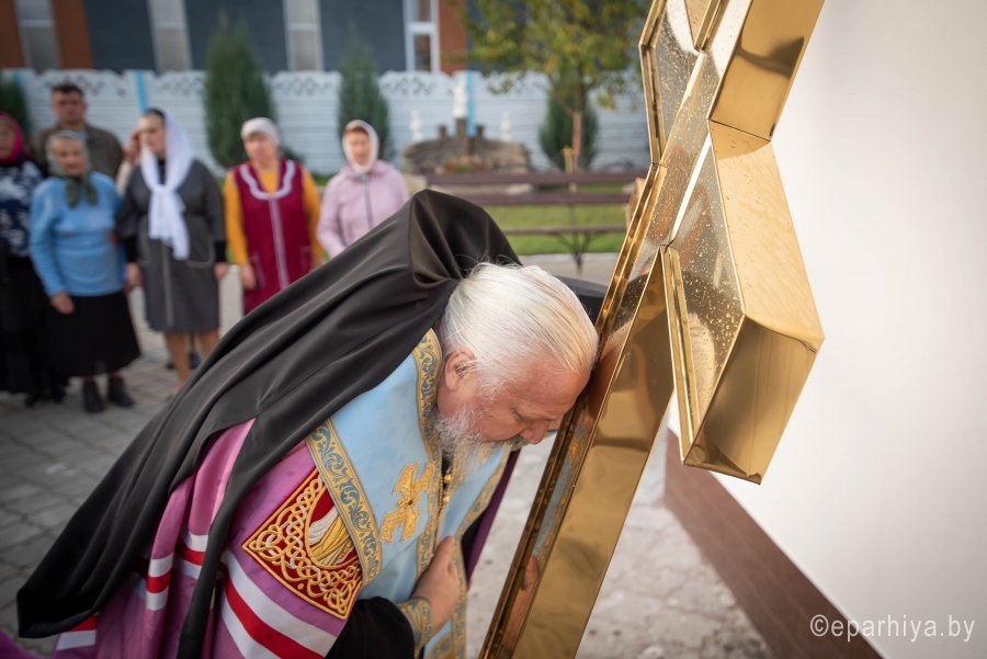 Святой Ефрем в Слове 103 говорит: «Знамение Животворящего Креста полагайте на дверях, на челе, на груди, и на устах, и по всему нашему телу, им знаменуйтесь и им вооружайтесь. Ибо это оружие христиан и победа смерти, упование верных, свет в конце, открыватель рая, истребление еретичества, великое утверждение в вере, защита и похвала христианам. Его христиане непрестанно носят на всяком месте во всякий день и всякую ночь, и во все времена. Без него ничего не начинай и не заканчивай, но и во сне и в бодрствовании, и в делах, и в путешествии, и плывя по морю, и переплывая реку, все члены своего тела укрепи Животворящим Крестом, и не приступит к тебе зло. Видя это, вражья сила, затаившись, отступит». В ходе своего визита в г. Речица 13 октября 2020г. Высокопреосвященнейший Стефан, архиепископ Гомельский и Жлобинский в сослужении секретаря Гомельской епархии протоиерея Георгия Алампиева и духовенства епархии совершил чин освящения накупольных Крестов для строящегося храма свт. Луки Крымского г. Речица. Стать свидетелями этого знаменательного события, открывающего новую страницу в истории города и разделить молитвенную радость собралось множество людей. Созидание храма, милостью Божией пришедшее ныне к освящению накупольного креста, взяли на себя прихожане Покровского храма г. Речицы и неравнодушные к благому делу жители. Так же владыка посетил строительную площадку и познакомился с ходом строительных работ. |