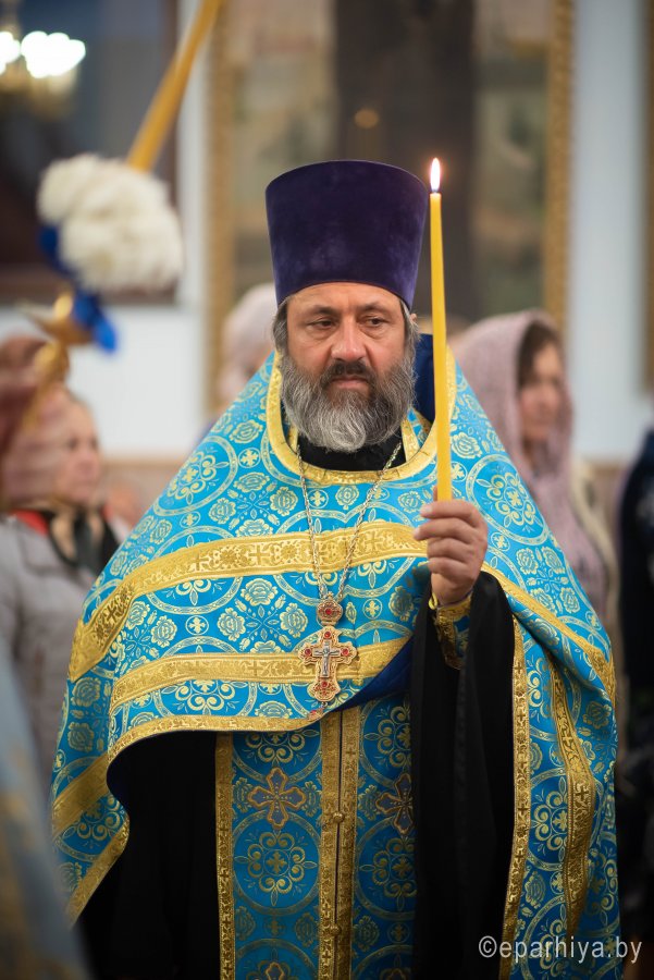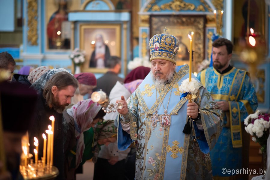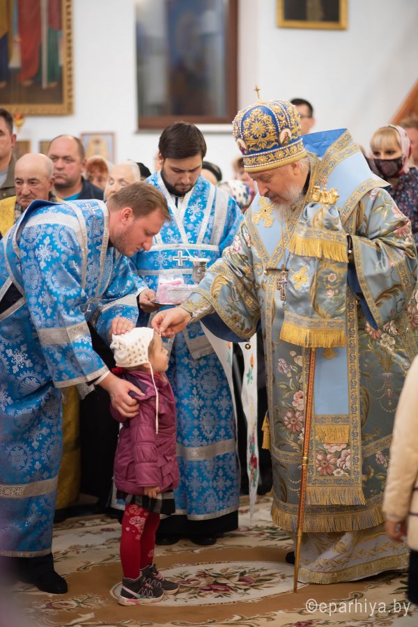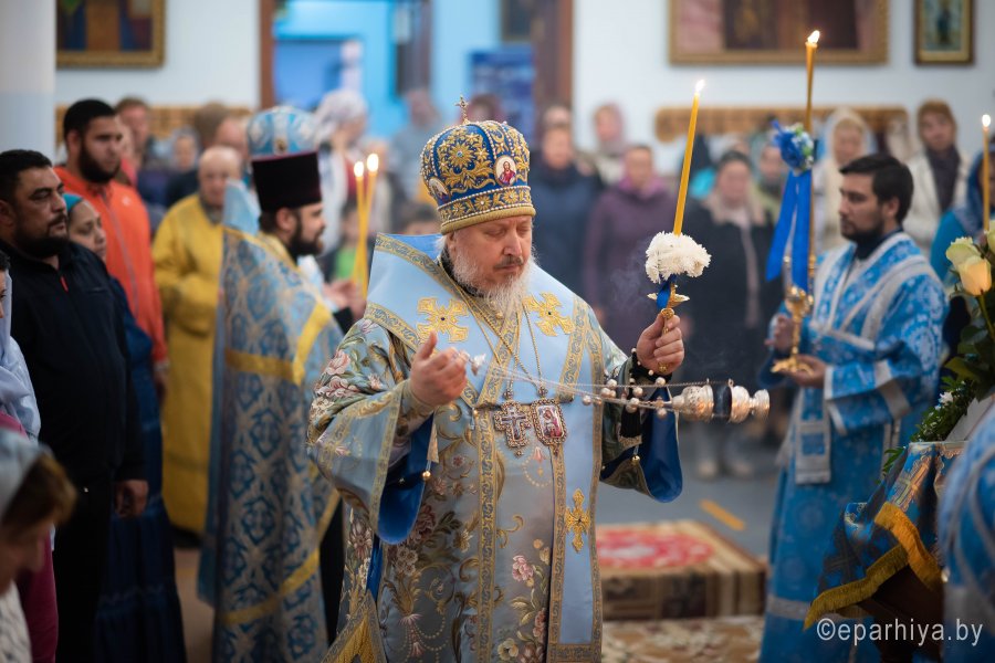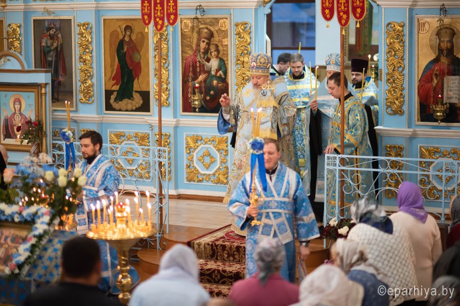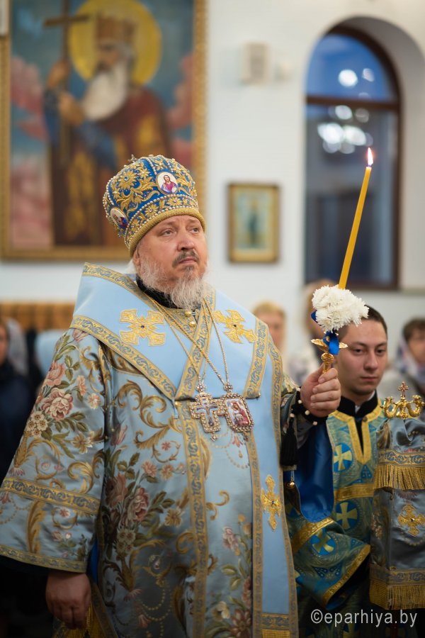Покров Пресвятой Богородицы — великий христианский праздник чудного явления Покрова Пресвятой Богородицы. Это главный осенний праздник, история которого восходит к 910 году, когда в одном из храмов Константинополя во время богослужения юродивый Андрей и его ученик Епифаний увидели парящую в воздухе Богородицу, которая распростерла над молящимися свое широкое белое покрывало — покров. Всенощное бдение в канун праздника Покрова Пресвятой Богородицы 13 октября 2020г. в одноименном храме г.Речица совершил Высокопреосвященнейший Стефан, архиепископ Гомельский и Жлобинский. Высокопреосвященному сослужили: секретарь Гомельской епархии протоиерей Георгий Алампиев, настоятель прихода протоиерей Николай Ефименко и духовенство округа. |