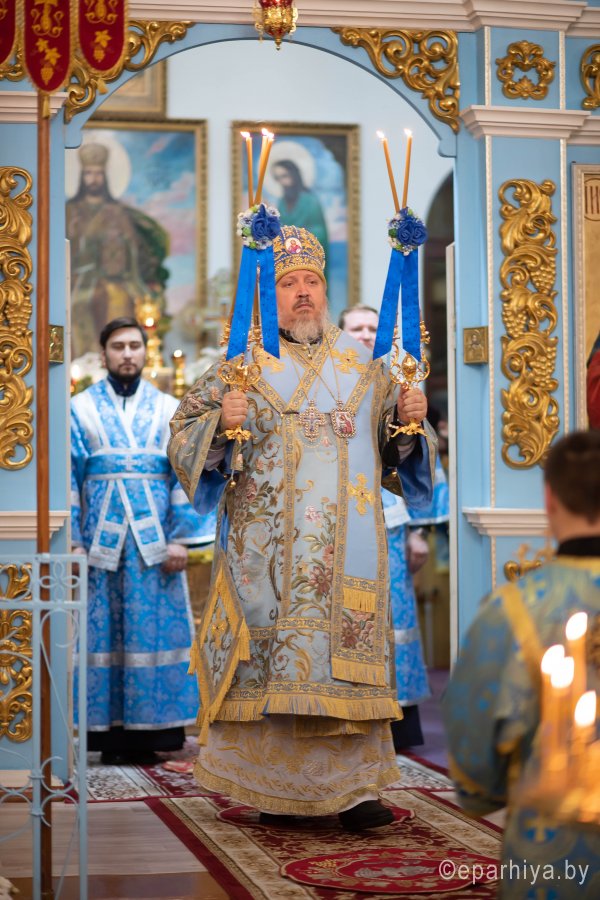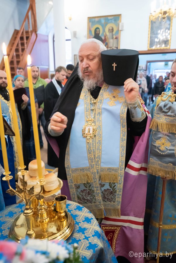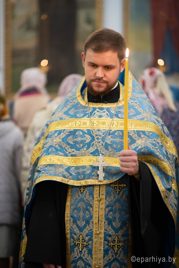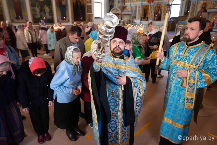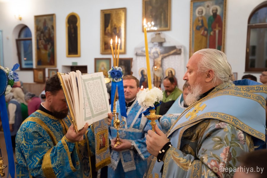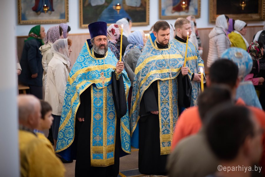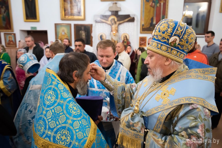 Покров Пресвятой Богородицы — великий христианский праздник чудного явления Покрова Пресвятой Богородицы. Это главный осенний праздник, история которого восходит к 910 году, когда в одном из храмов Константинополя во время богослужения юродивый Андрей и его ученик Епифаний увидели парящую в воздухе Богородицу, которая распростерла над молящимися свое широкое белое покрывало — покров. Всенощное бдение в канун праздника Покрова Пресвятой Богородицы 13 октября 2020г. в одноименном храме г.Речица совершил Высокопреосвященнейший Стефан, архиепископ Гомельский и Жлобинский. Высокопреосвященному сослужили: секретарь Гомельской епархии протоиерей Георгий Алампиев, настоятель прихода протоиерей Николай Ефименко и духовенство округа. |