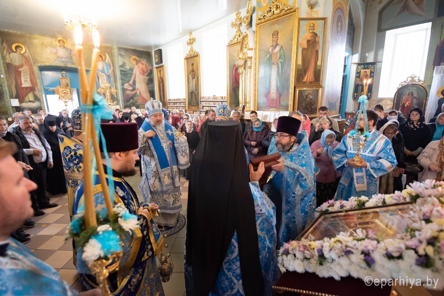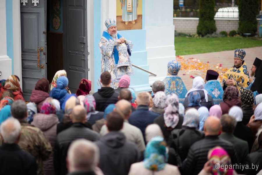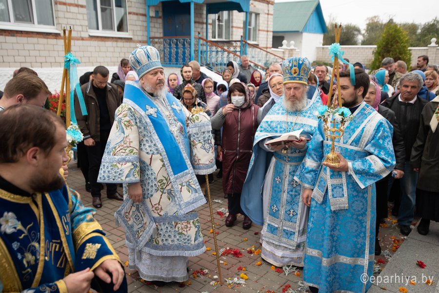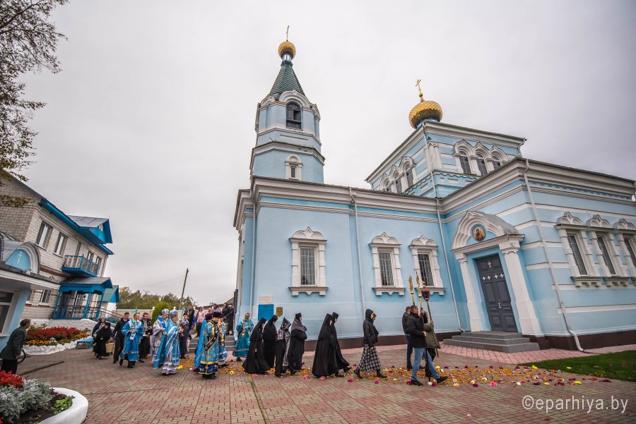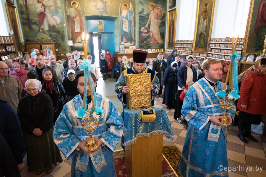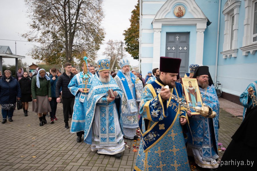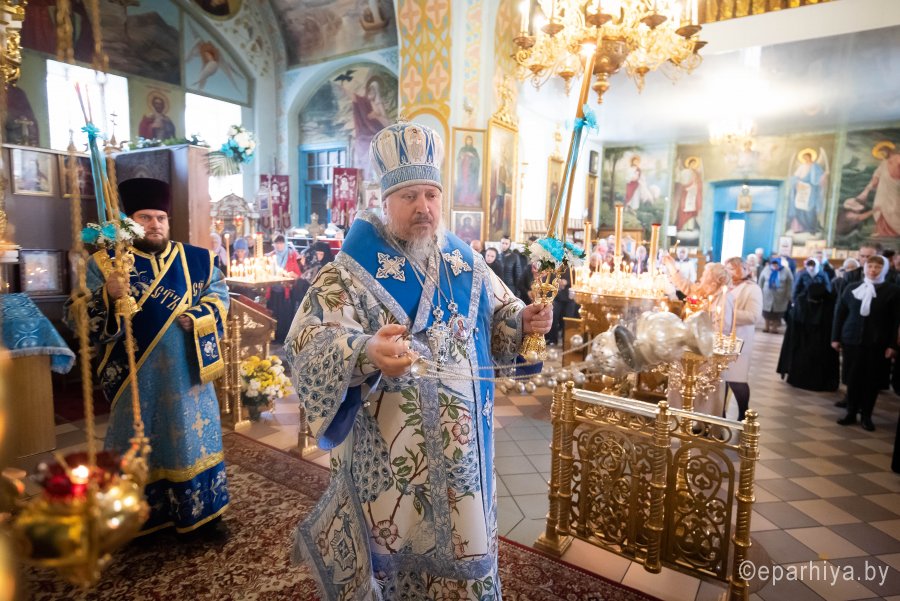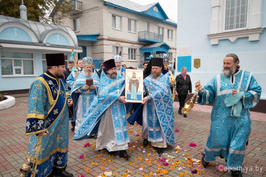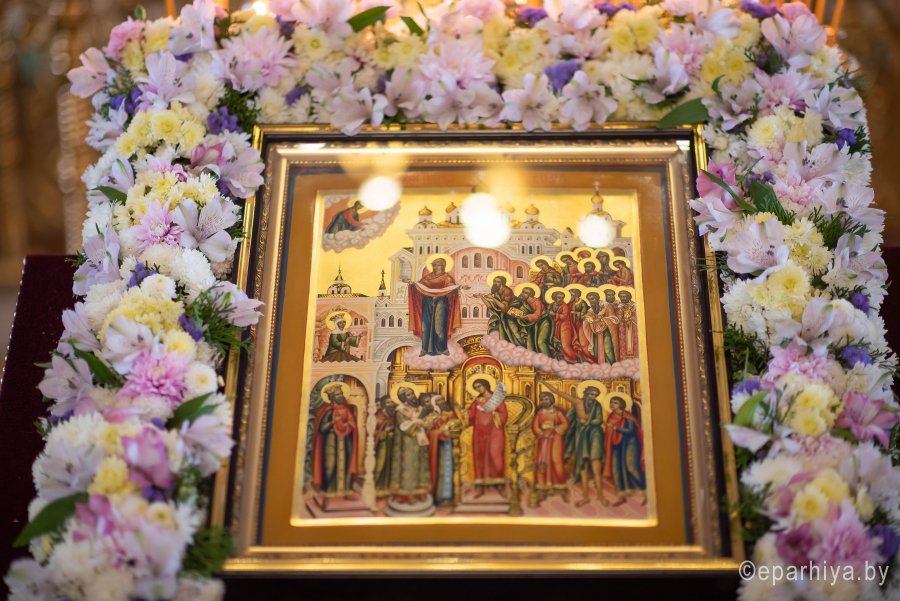 «Дева днесь предстоит в церкви, и с лики святых невидимо за ны молится Богу», звучат сегодня слова кондака. Покрывает Богородица Своим покровом каждого призывающего имя Её, и молит Сына Своего за весь род человеческий. Божественную литургия в праздник Покрова Пресвятой Богородицы в одноименном храме Иоанна-Кормянского женского монастыря 14 октября 2020г. совершил Высокопреосвященнейший Стефан, архиепископ Гомельский и Жлобинский. Высокопреосвященнейшему сослужили: секретарь Гомельской епархии протоиерей Георгий Алампиев, старший священник монастыря архимандрит Варсонофий (Степанцов) и духовенство епархии. По окончании богослужения Владыка Стефан возглавил Крестный ход, поздравил причастников с принятием Святых Христовых Таин и обратился к молящимся со словами Архипастырского назидания. Также в честь праздника архипастырь передал жителям деревни продуктовые наборы. Событие, празднуемое сегодня произошло в середине X в., когда св. Андрею Юродивому и его ученику Епифанию во время всенощного бдение было видение Пресвятой Богородицы. Это случилось в Константинополе во Влахернской церкви, когда во время молитвы они увидели идущую по воздуху Пресвятую Владычицу нашу Богородицу, озаренную небесным светом и окруженную Ангелами и сонмом святых. Святой Креститель Господень Иоанн и святой апостол Иоанн Богослов сопровождали Царицу Небесную. И вот видят они, преклонила Пречистая колена и приступила к молитве. Долгий час молилась Она, обливая слезами Свое Боговидное лицо. Окончив молитву здесь, Она подошла к престолу и стала молить за предстоящий в храме народ, а после Она сняла со Своей головы покрывало и распростерла его над молящимися в храме людьми, защищая их от врагов видимых и невидимых |