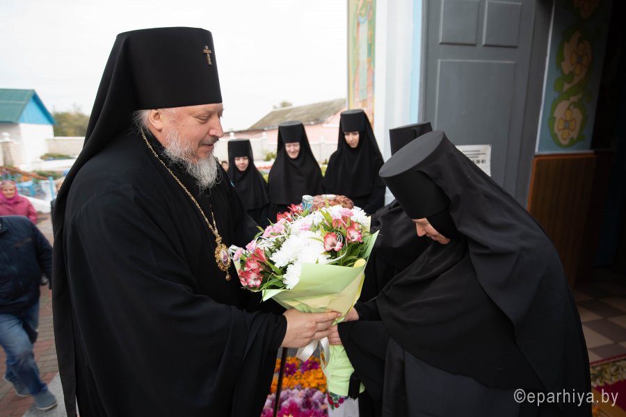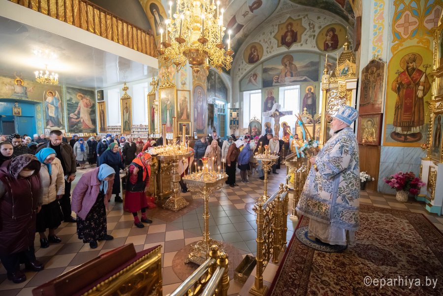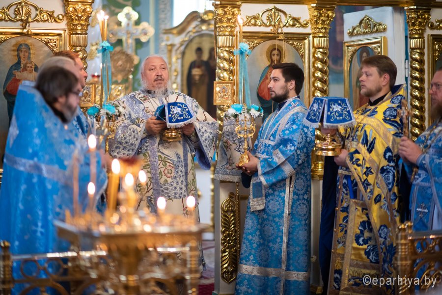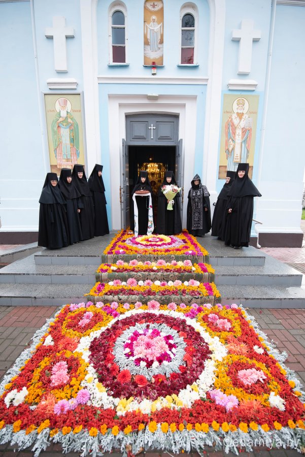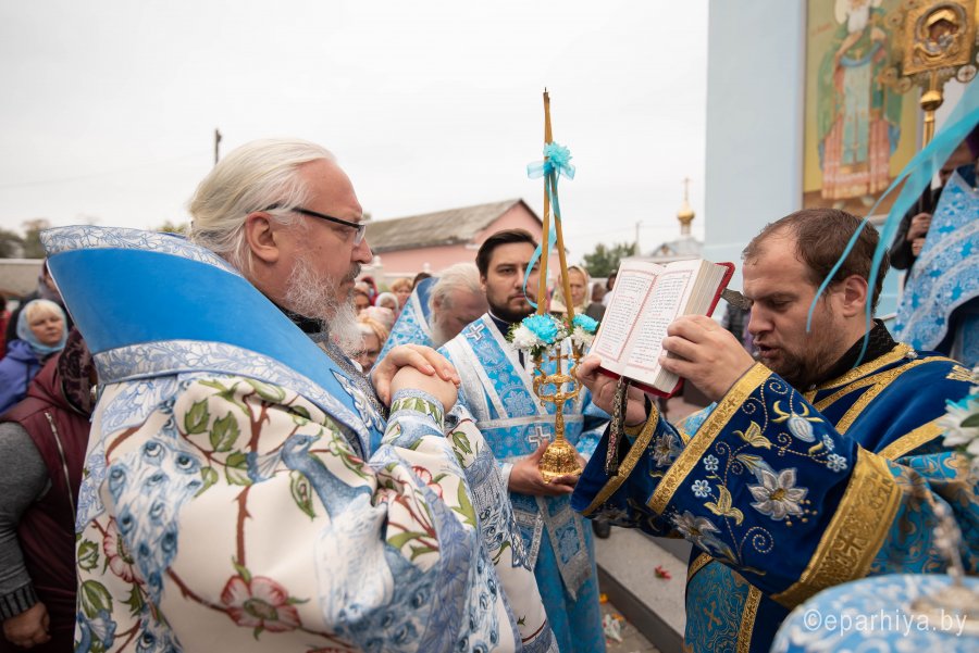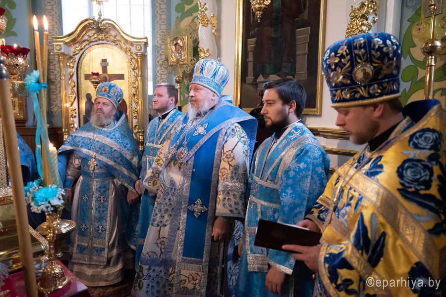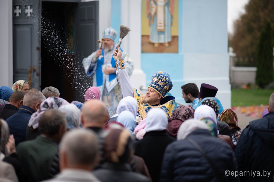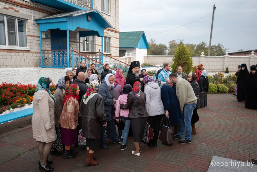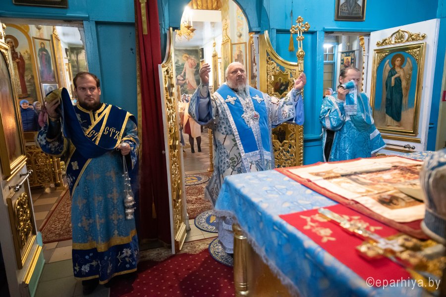 «Дева днесь предстоит в церкви, и с лики святых невидимо за ны молится Богу», звучат сегодня слова кондака. Покрывает Богородица Своим покровом каждого призывающего имя Её, и молит Сына Своего за весь род человеческий. Божественную литургия в праздник Покрова Пресвятой Богородицы в одноименном храме Иоанна-Кормянского женского монастыря 14 октября 2020г. совершил Высокопреосвященнейший Стефан, архиепископ Гомельский и Жлобинский. Высокопреосвященнейшему сослужили: секретарь Гомельской епархии протоиерей Георгий Алампиев, старший священник монастыря архимандрит Варсонофий (Степанцов) и духовенство епархии. По окончании богослужения Владыка Стефан возглавил Крестный ход, поздравил причастников с принятием Святых Христовых Таин и обратился к молящимся со словами Архипастырского назидания. Также в честь праздника архипастырь передал жителям деревни продуктовые наборы. Событие, празднуемое сегодня произошло в середине X в., когда св. Андрею Юродивому и его ученику Епифанию во время всенощного бдение было видение Пресвятой Богородицы. Это случилось в Константинополе во Влахернской церкви, когда во время молитвы они увидели идущую по воздуху Пресвятую Владычицу нашу Богородицу, озаренную небесным светом и окруженную Ангелами и сонмом святых. Святой Креститель Господень Иоанн и святой апостол Иоанн Богослов сопровождали Царицу Небесную. И вот видят они, преклонила Пречистая колена и приступила к молитве. Долгий час молилась Она, обливая слезами Свое Боговидное лицо. Окончив молитву здесь, Она подошла к престолу и стала молить за предстоящий в храме народ, а после Она сняла со Своей головы покрывало и распростерла его над молящимися в храме людьми, защищая их от врагов видимых и невидимых |