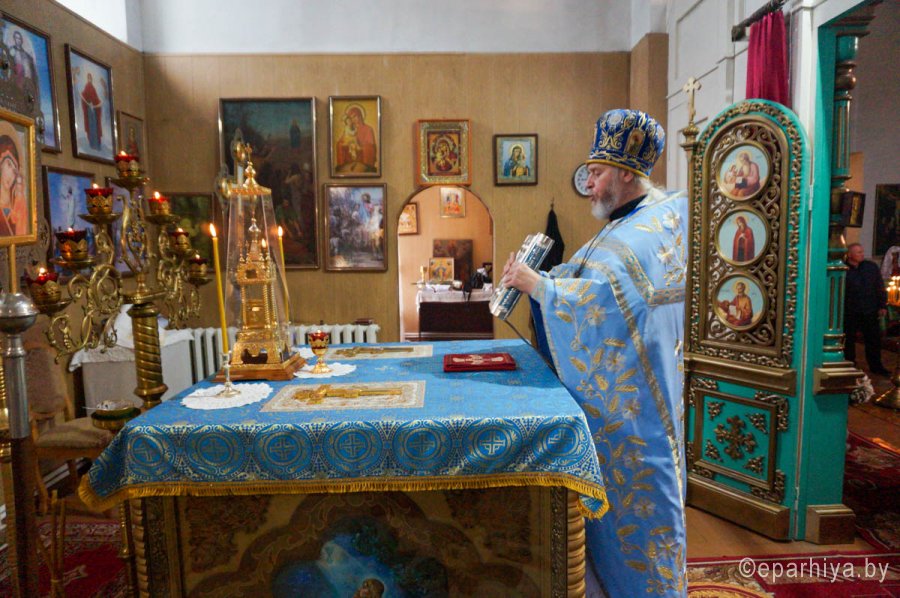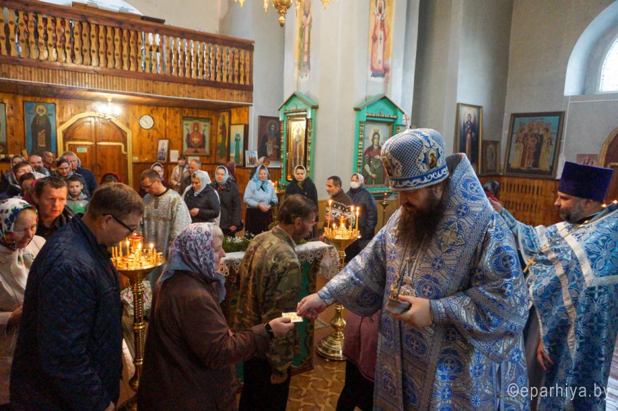 14 октября, в день праздника Покрова Пресвятой Богородицы, епископ Светлогорский Амвросий, викарий Гомельской епархии, совершил Божественную литургию в Довском Покровском Божией Матери храме Рогачевского района. Его Преосвященству сослужили благочинный Рогачевского церковного округа протоиерей Алексий Смотрицкий, настоятель храма протоиерей Виталий Левчук, духовенство благочиния и епархии. За богослужением владыка вознес молитвы о мире в Беларуси и от избавления от вредоносного поветрия. В завершении Литургии епископ сказал свое архипастырское слово, поздравил всех с престольным праздником и на память о совместной молитве раздал прихожанам и паломникам иконки. Пресс-служба Никольского монастыря |